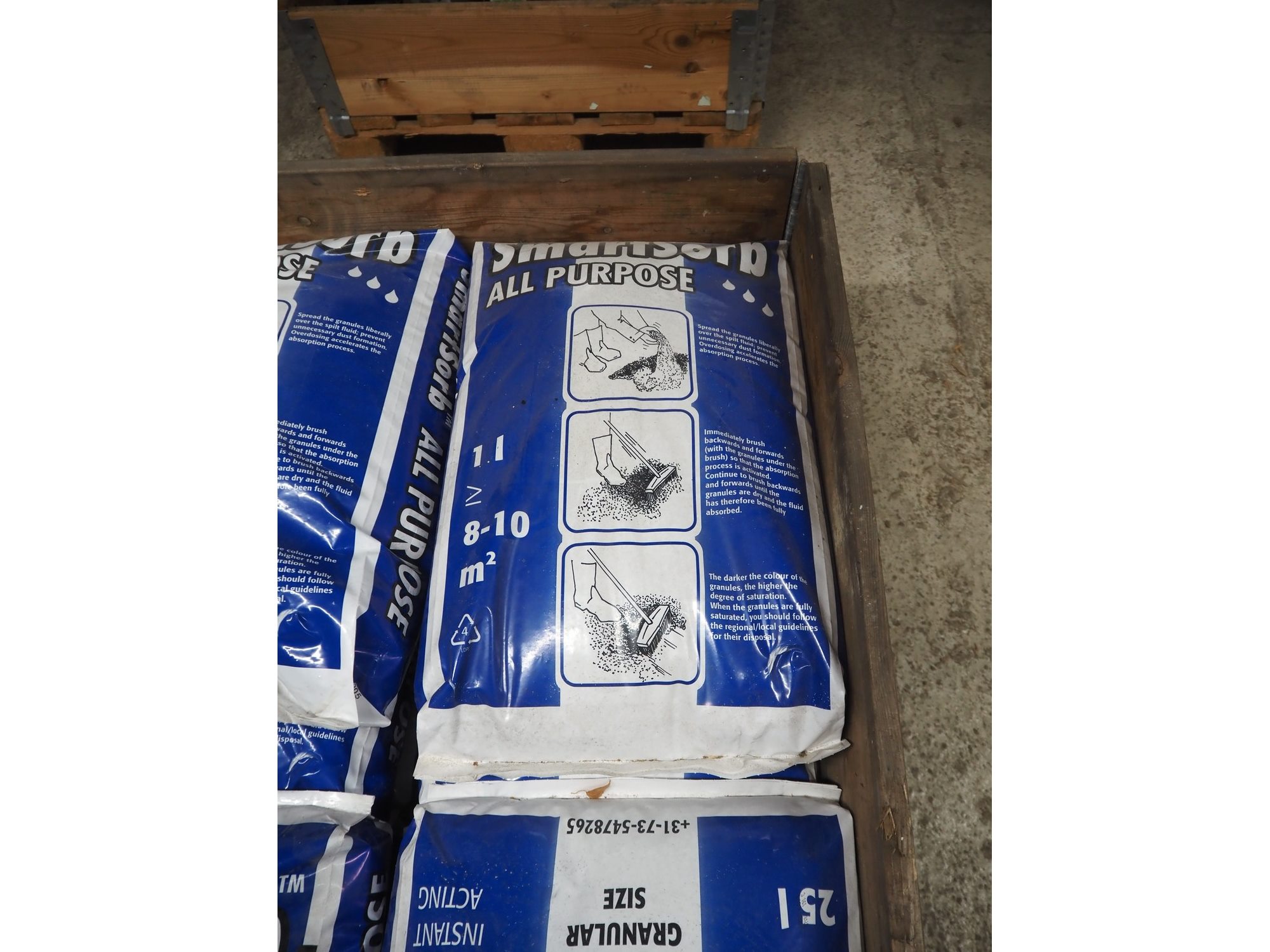 Crate with 12 Smartsorb absorption granules, (12x) 25 liter, dimensions: 1200 mm x 800 mm x 530 mm.