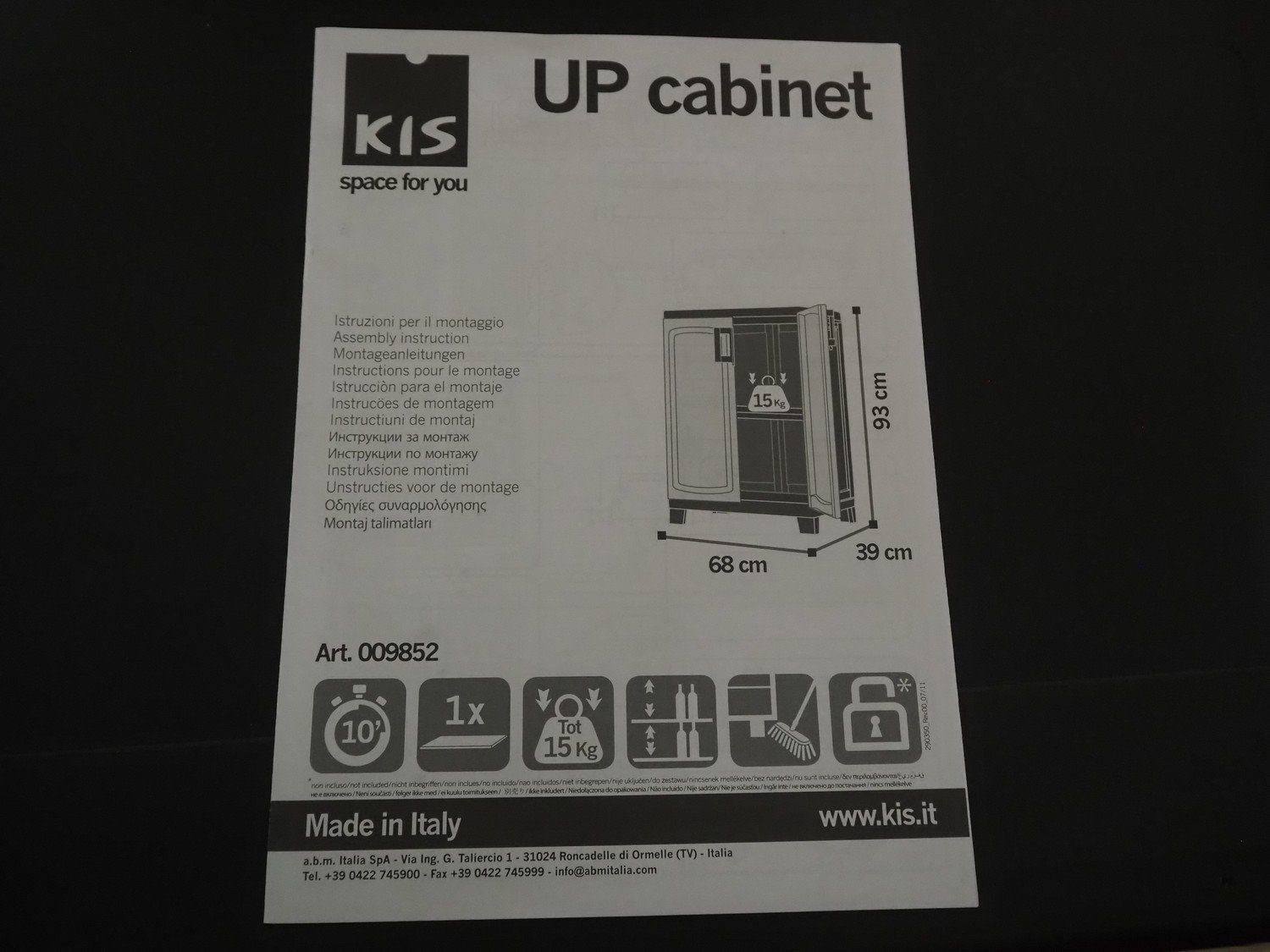 Kis cabinet, model: Up, dimensions: 680 mm x 390 mm x 930 mm, dimensions box: 800 mm x 400 mm x 300 mm.