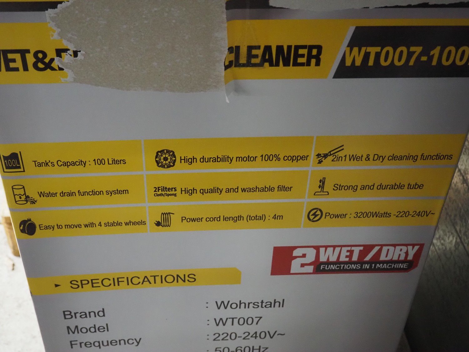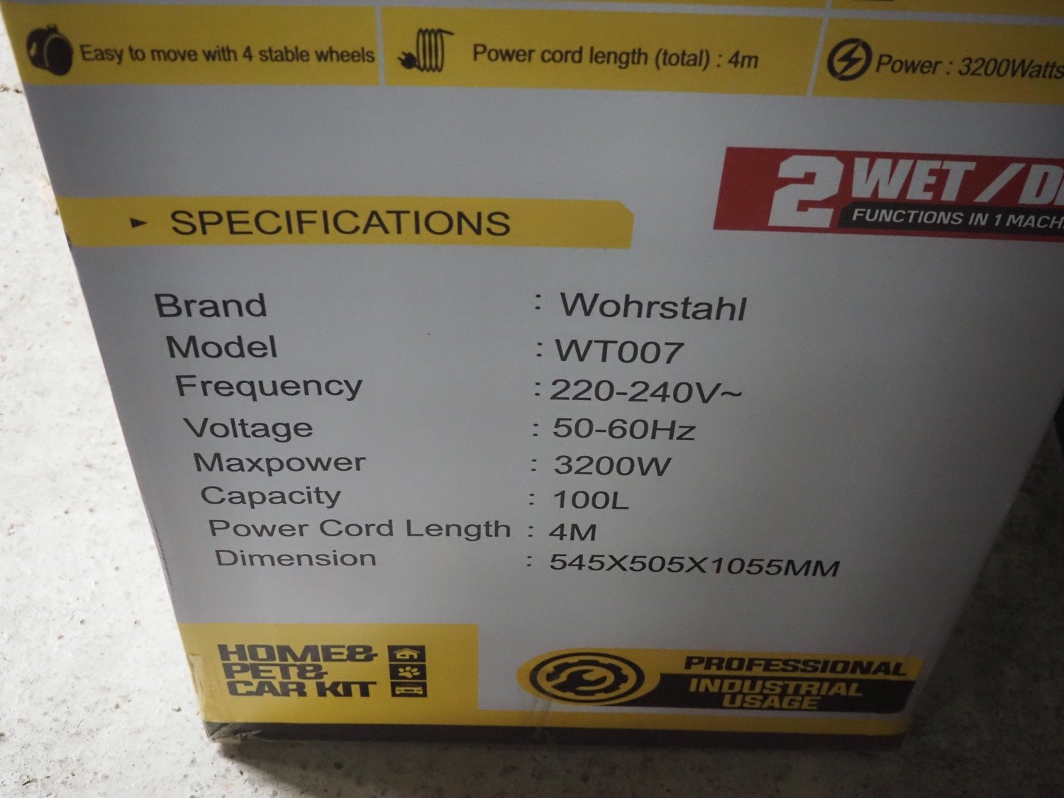 Wörstahl wet-dry vacuum cleaner, model: WT007, dimensions: 545 mm x 505 mm x 1055 mm.