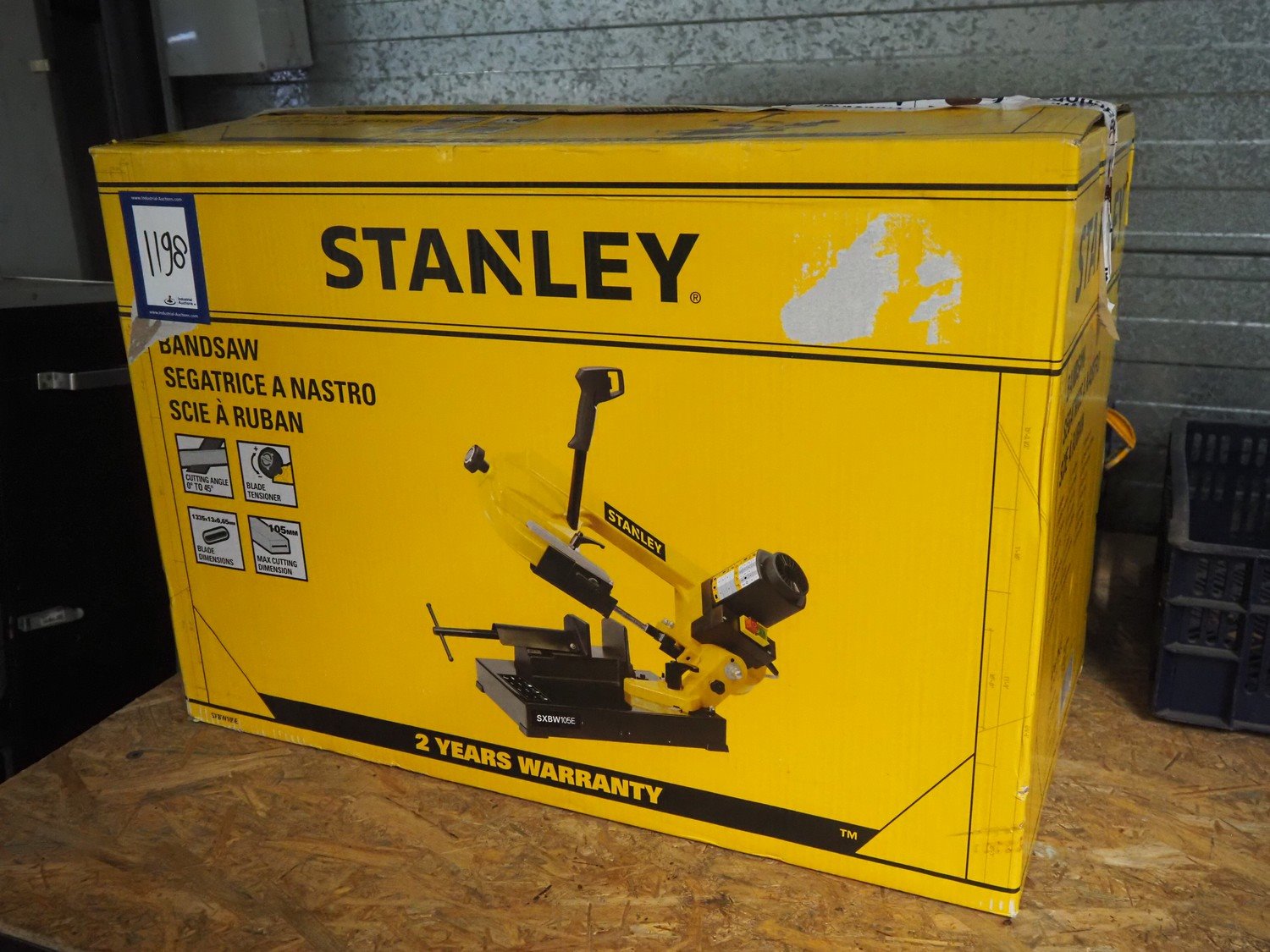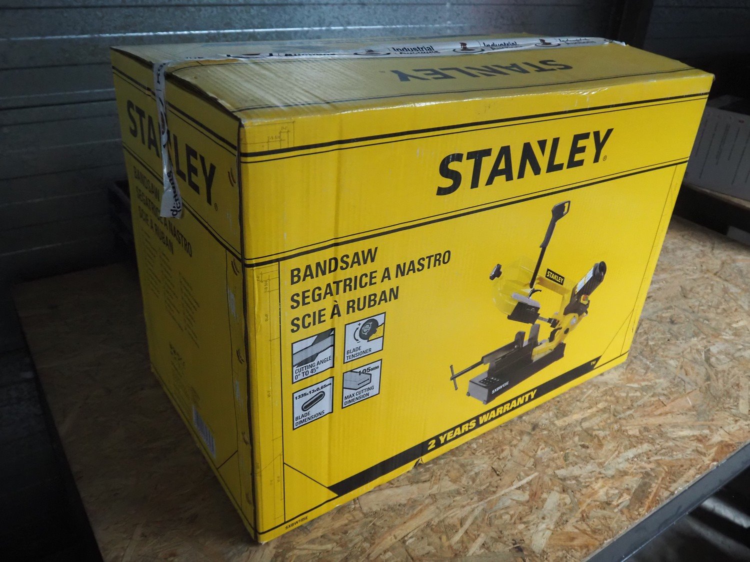 Stanley bandsaw, serial number: 1A202200320166, 230 V, 50/60 Hz, 3.6 A, 750 W, dimensions: 740 mm x 400 mm x 500 mm.