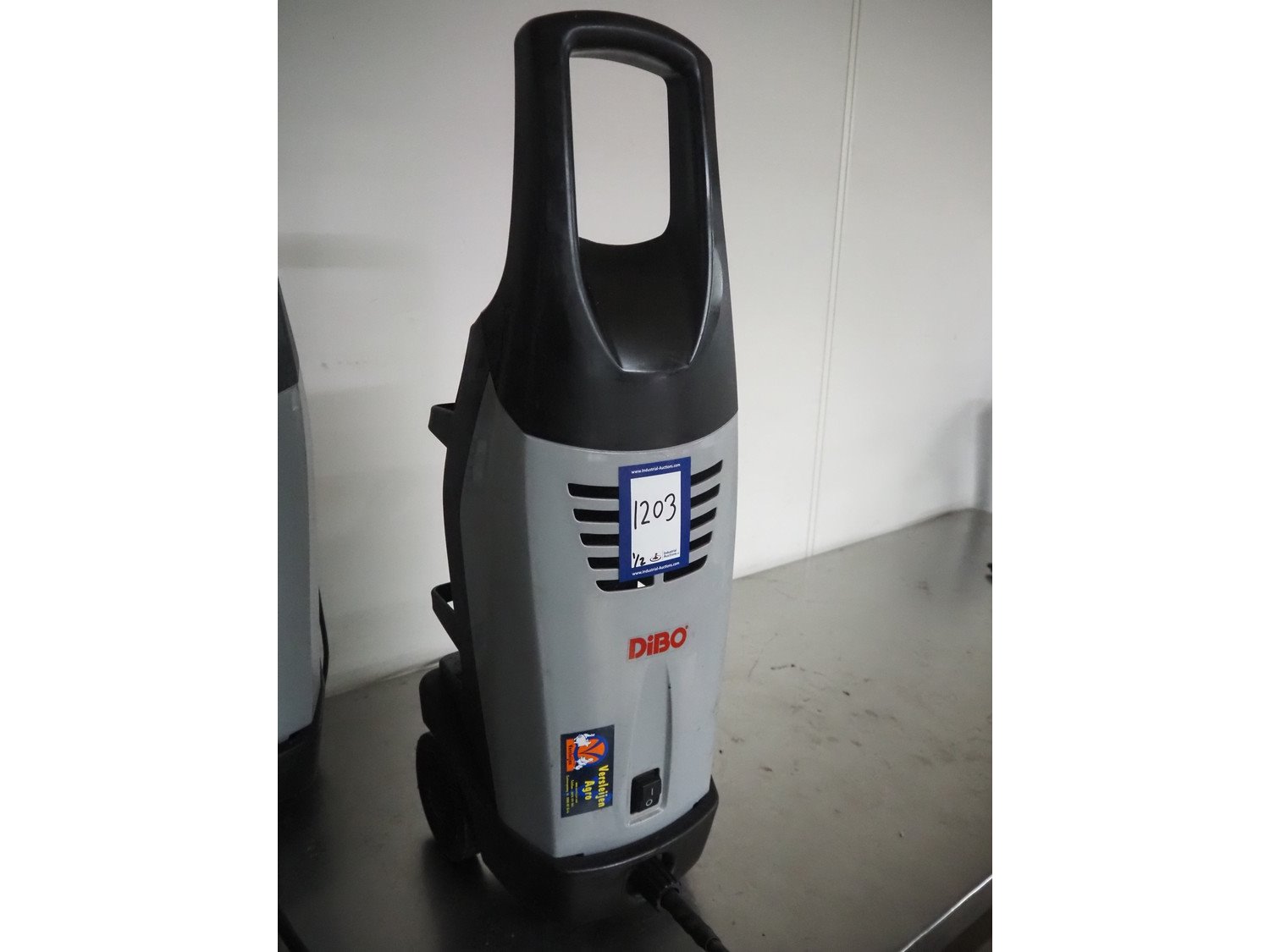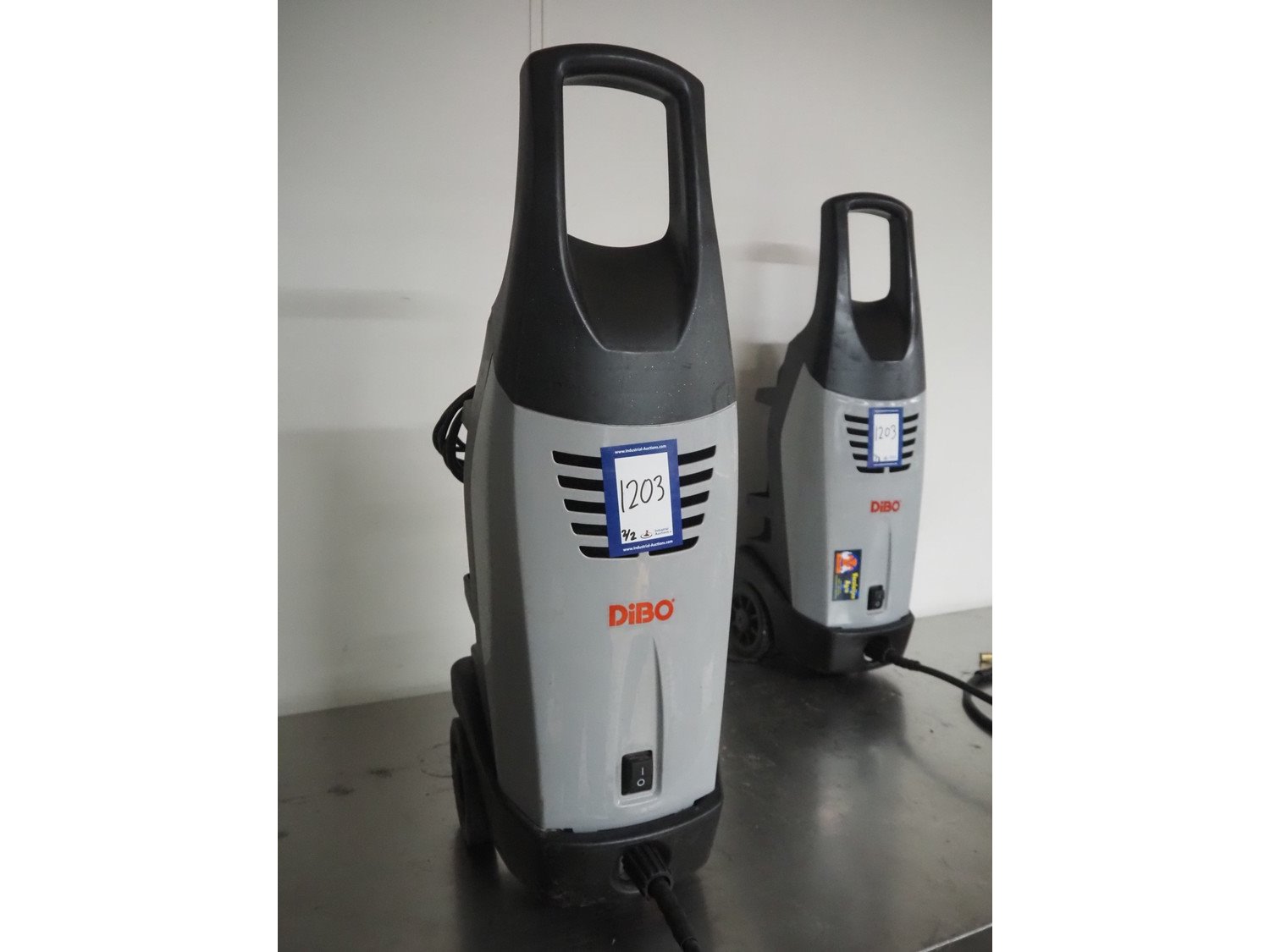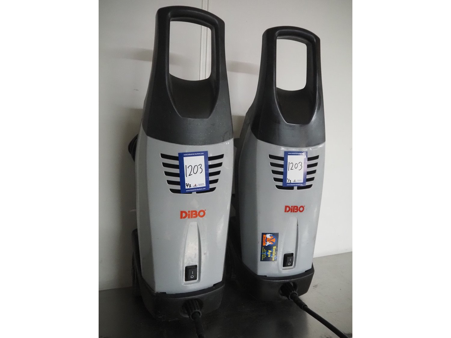 2 Dibo high pressure cleaners, type: H 1900, serial number: 090600092, year of construction: 2009, 230V, 50 Hz, 2.1 kW, 130 bar, 6.8 l/min, dimensions: (2x) 420 mm x 310 mm x 850 mm. Including 1 high pressure lance and 4 spare lance attachments, 1 wheel is broken.