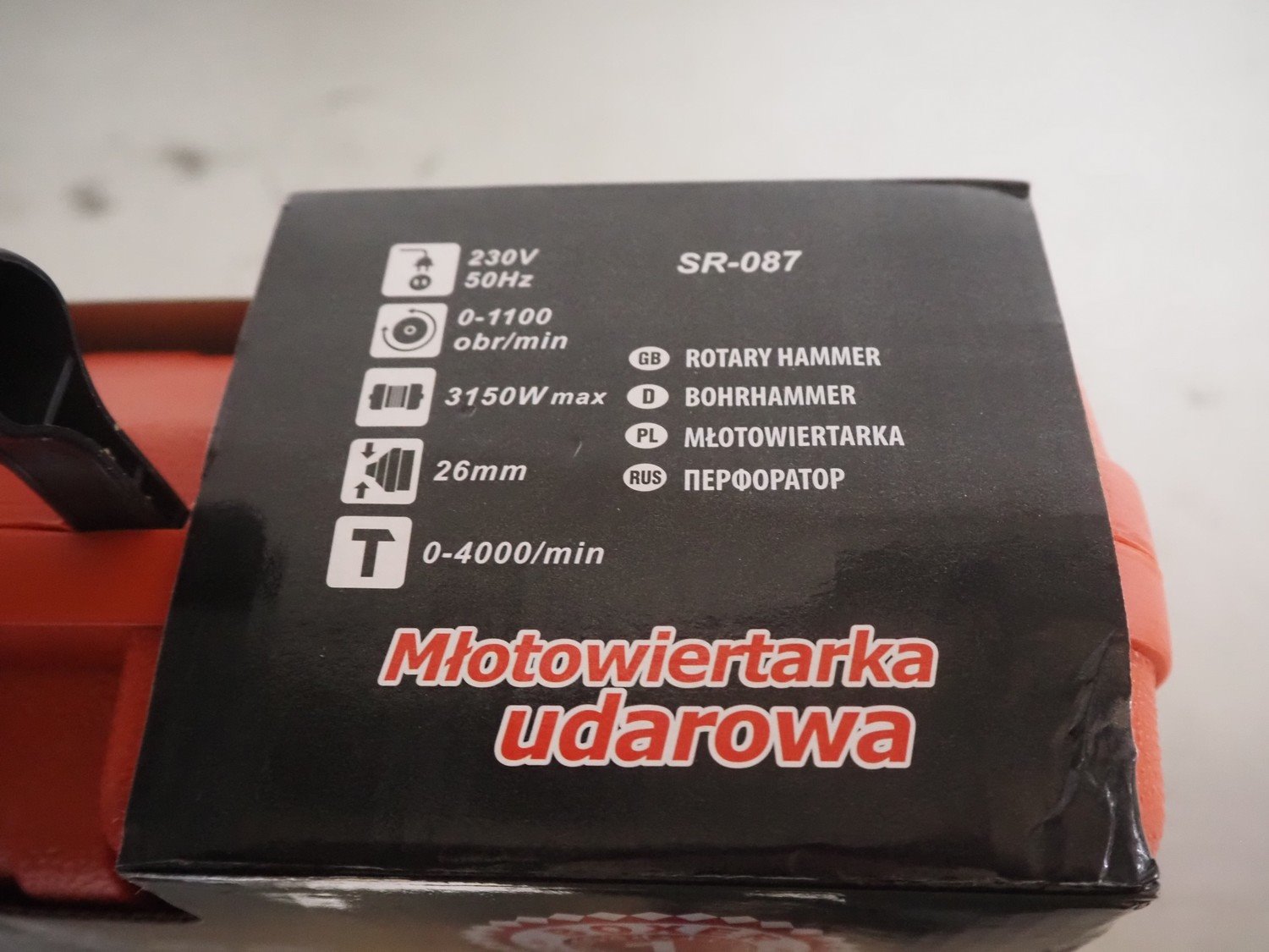 Boxer Tools rotary hammer, 230 V, 50 Hz, 3150 W, 0-1100 r/min, dimensions: 420 mm x 310 mm x 120 mm.