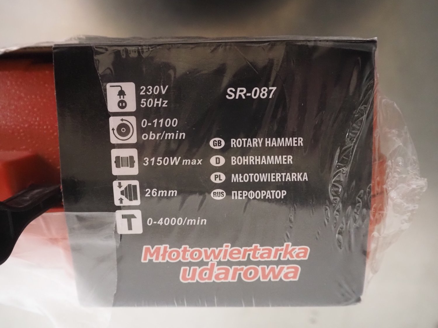 Boxer rotary hammer, model: SR-087, 230 V, 50 Hz, 3150 W, dimensions: 430 mm x 120 mm x 320 mm.
