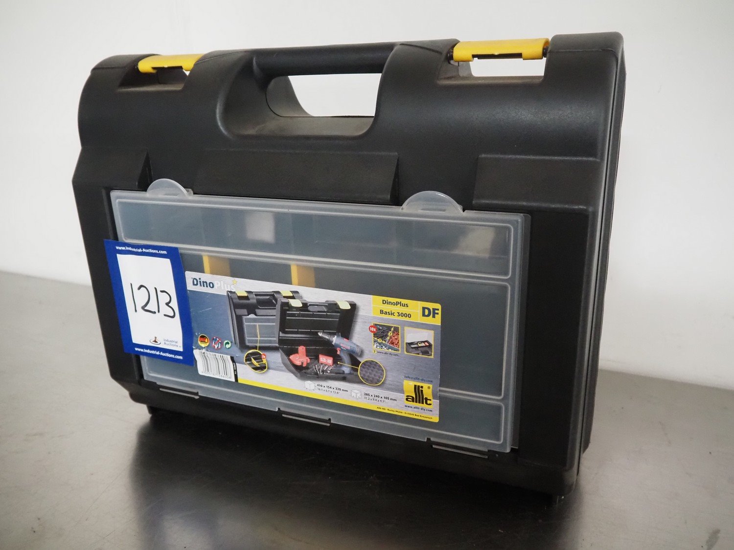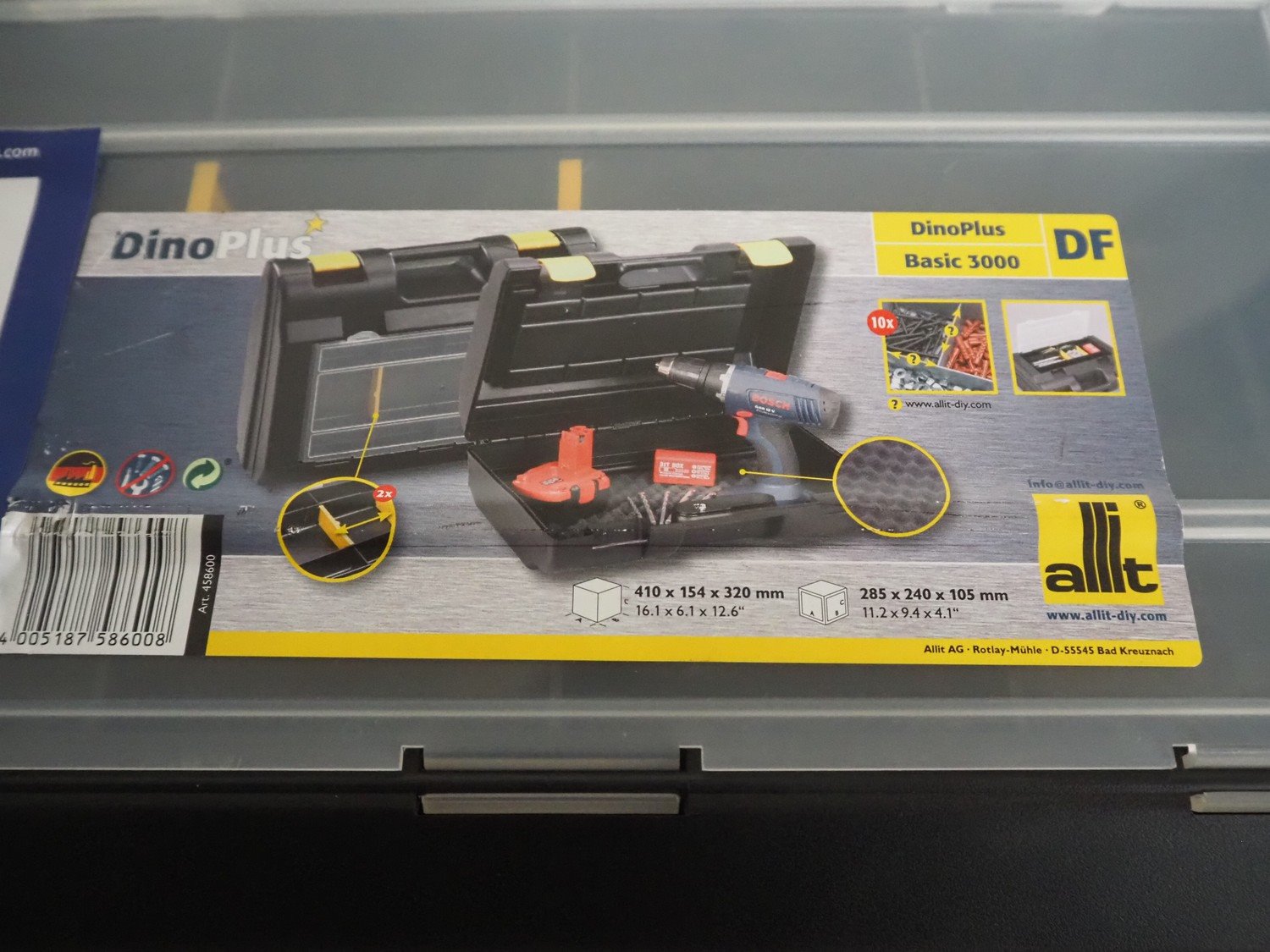 Allit empty plastic tool case, dimensions: 400 mm x 300 mm x 150 mm.