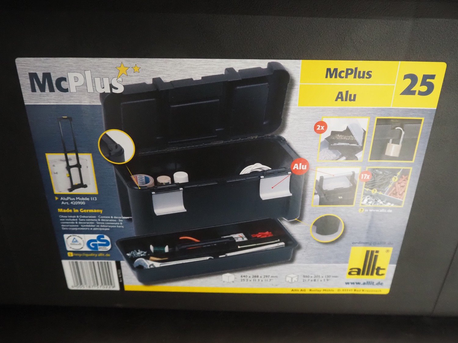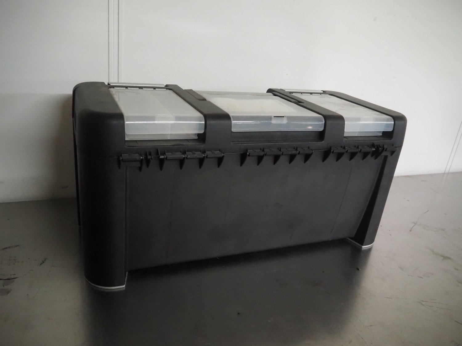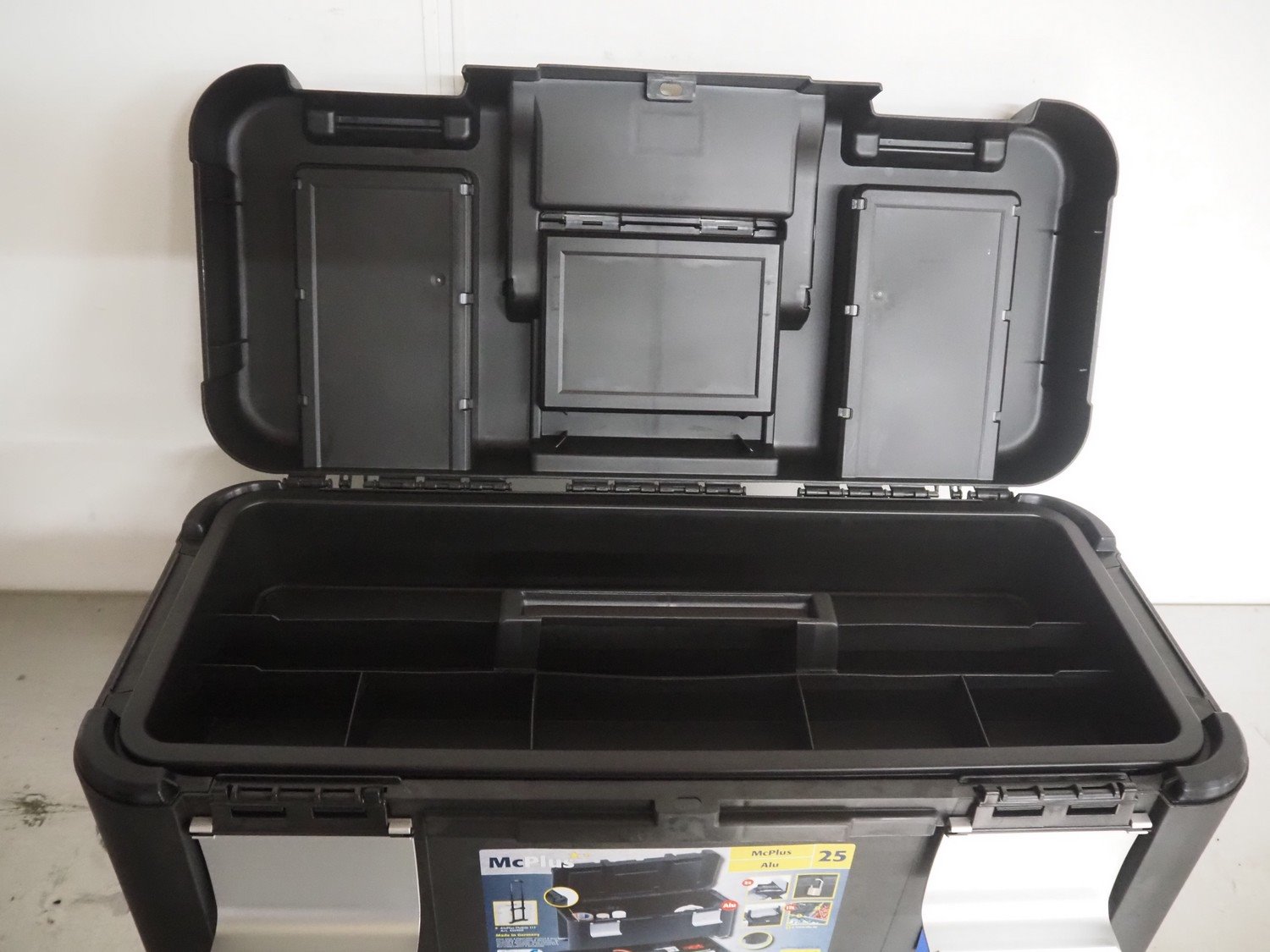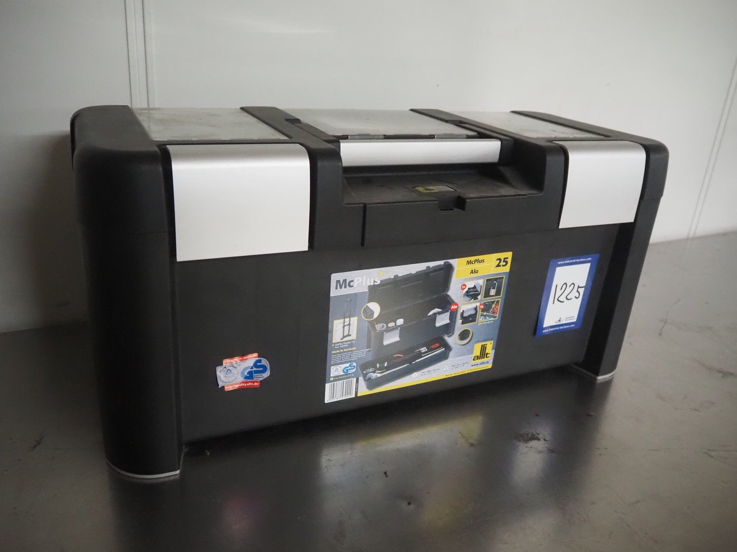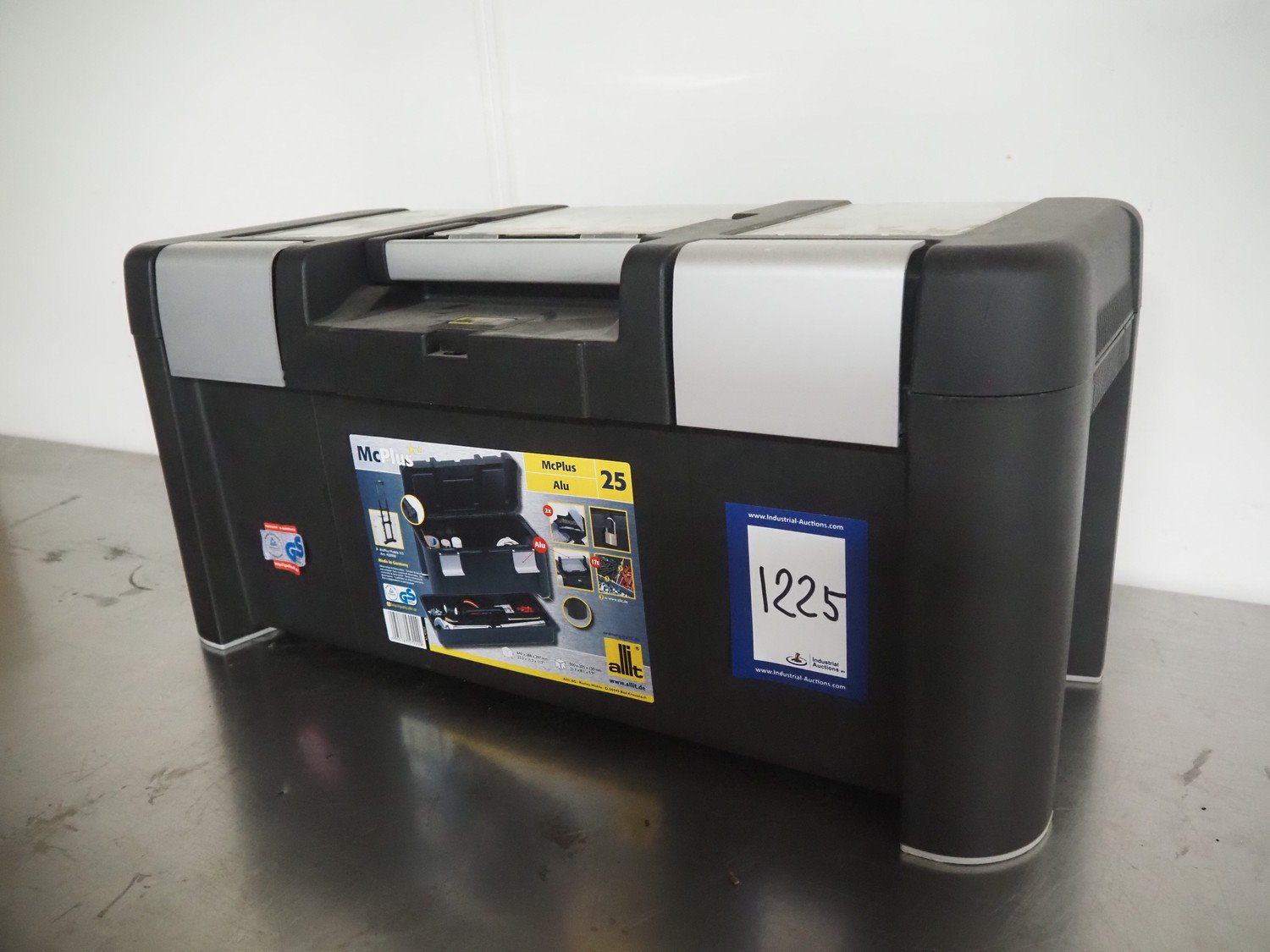 Allit empty plastic tool case, dimensions: 630 mm x 260 mm x 300 mm.