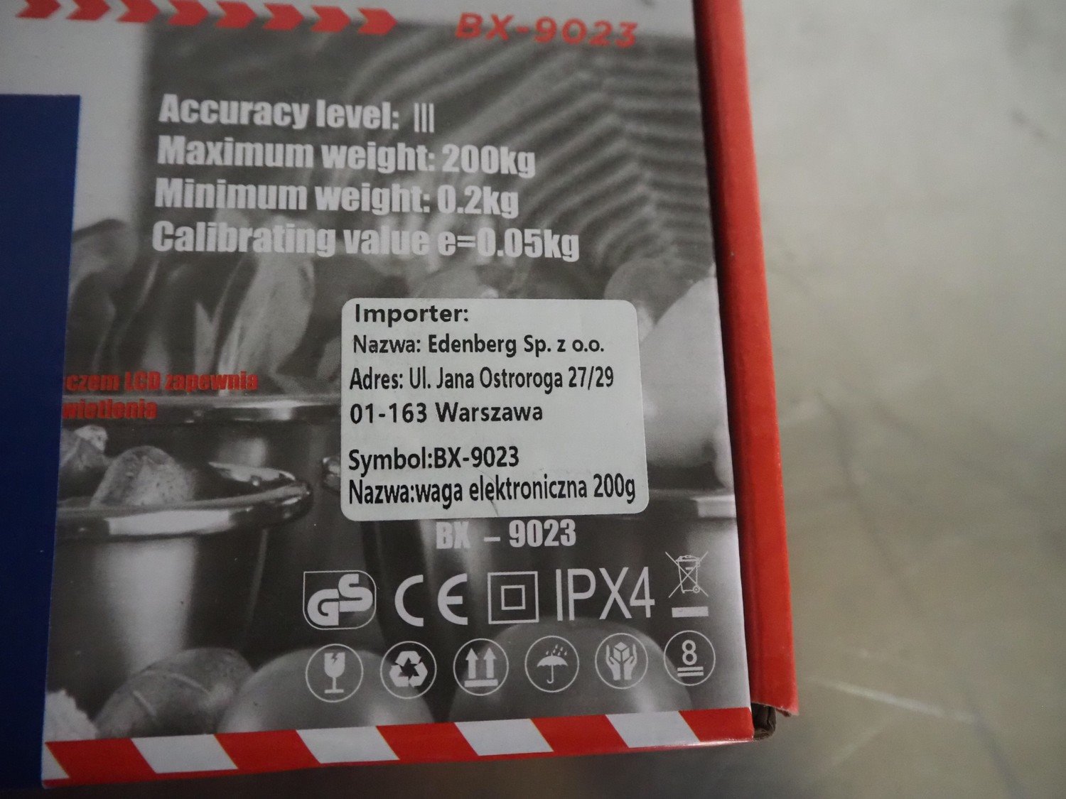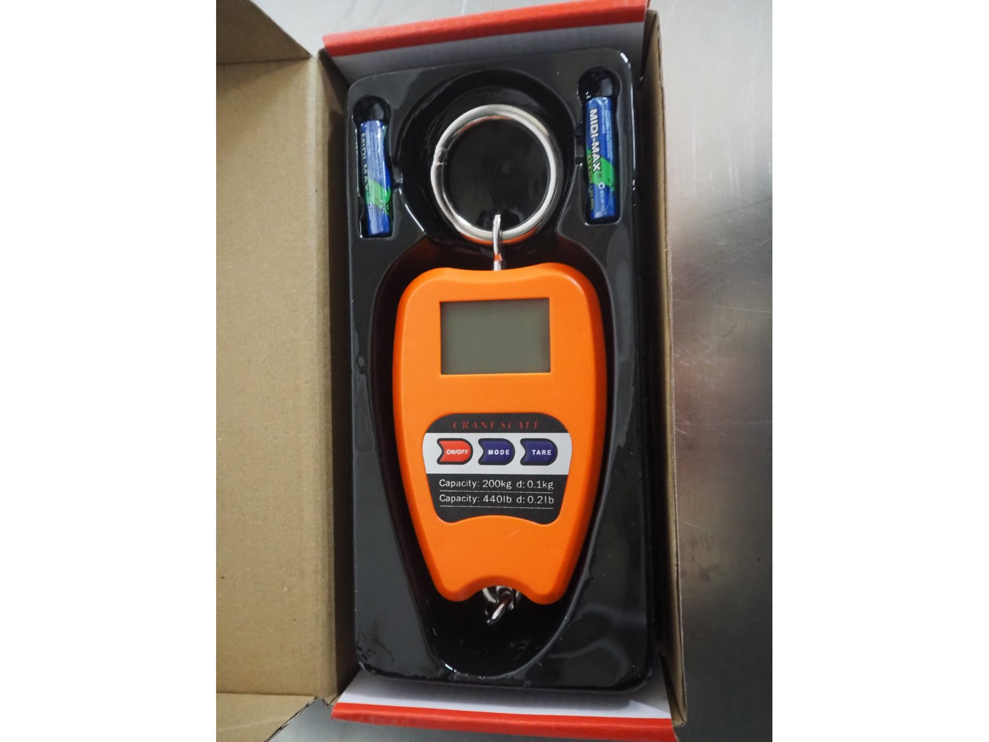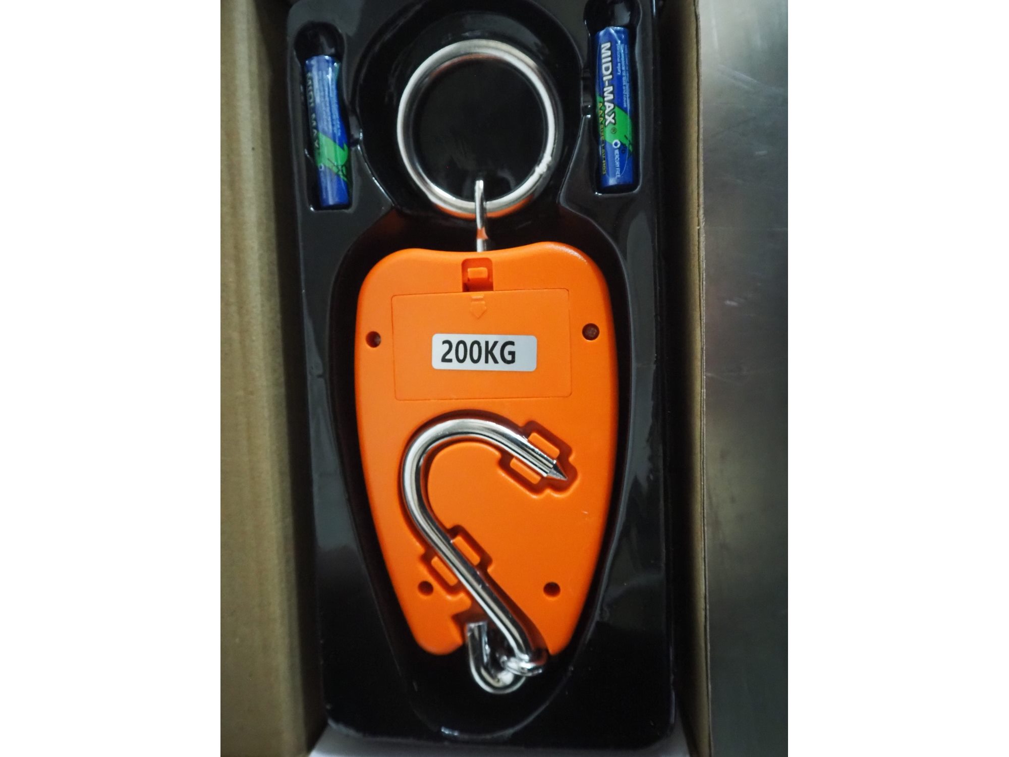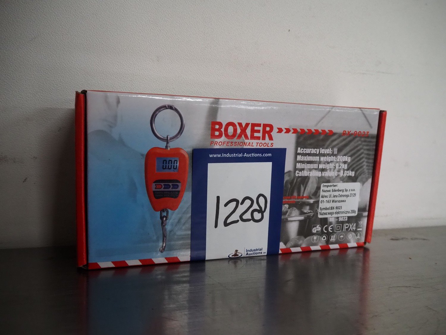 Boxer digital hanging scale, model: BX-9023, dimensions: 250 mm x 120 mm x 50 mm.