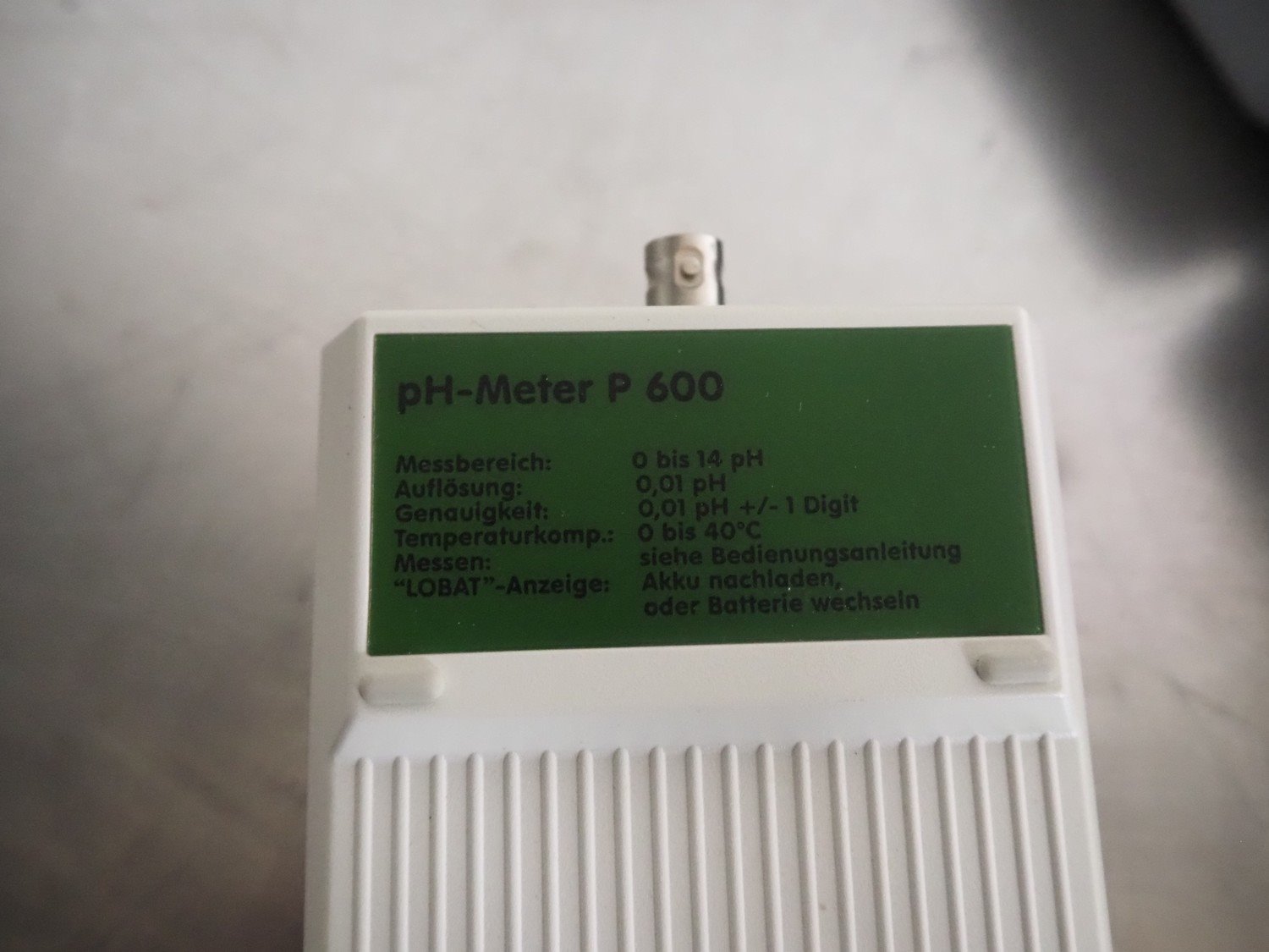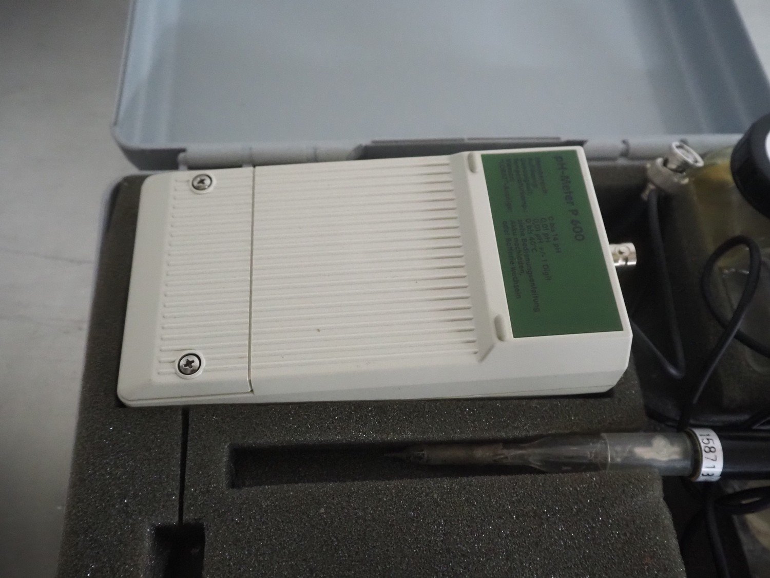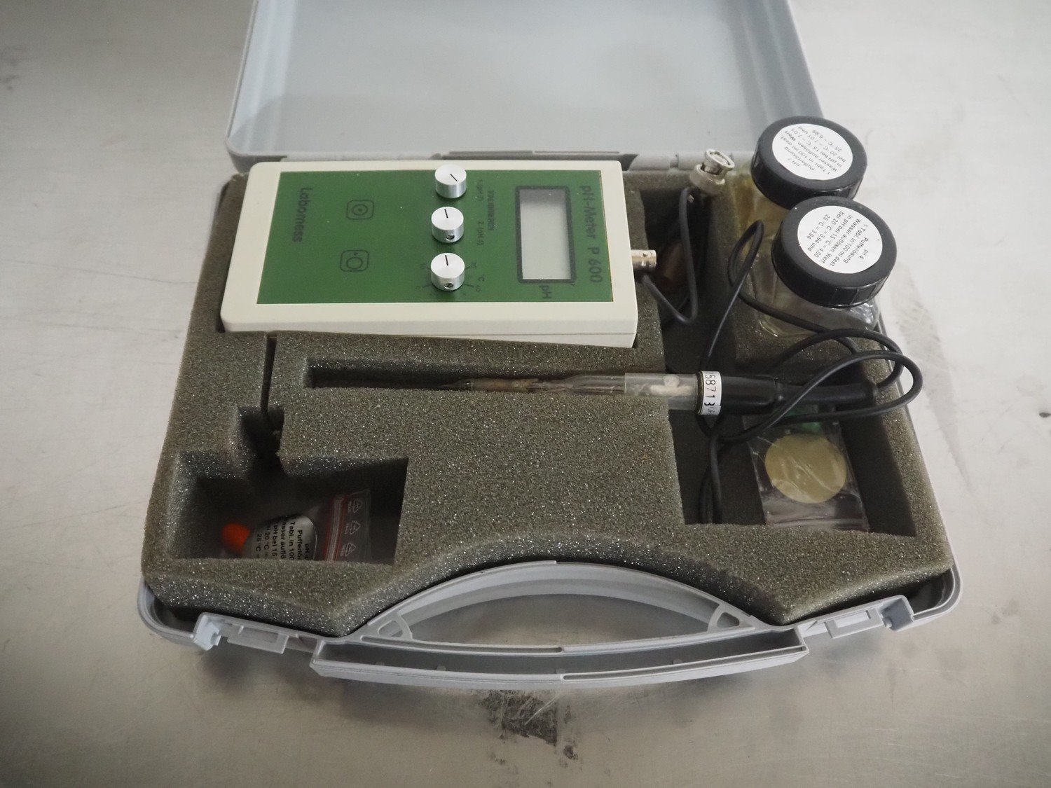 Case with Labomess PH-Meter, model: P 600, range: 0 - 14 pH, range: 0.01 pH, dimensions: 270 mm x 230 mm x 90 mm.
