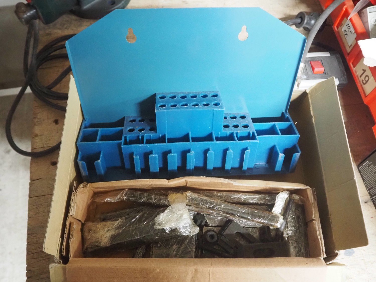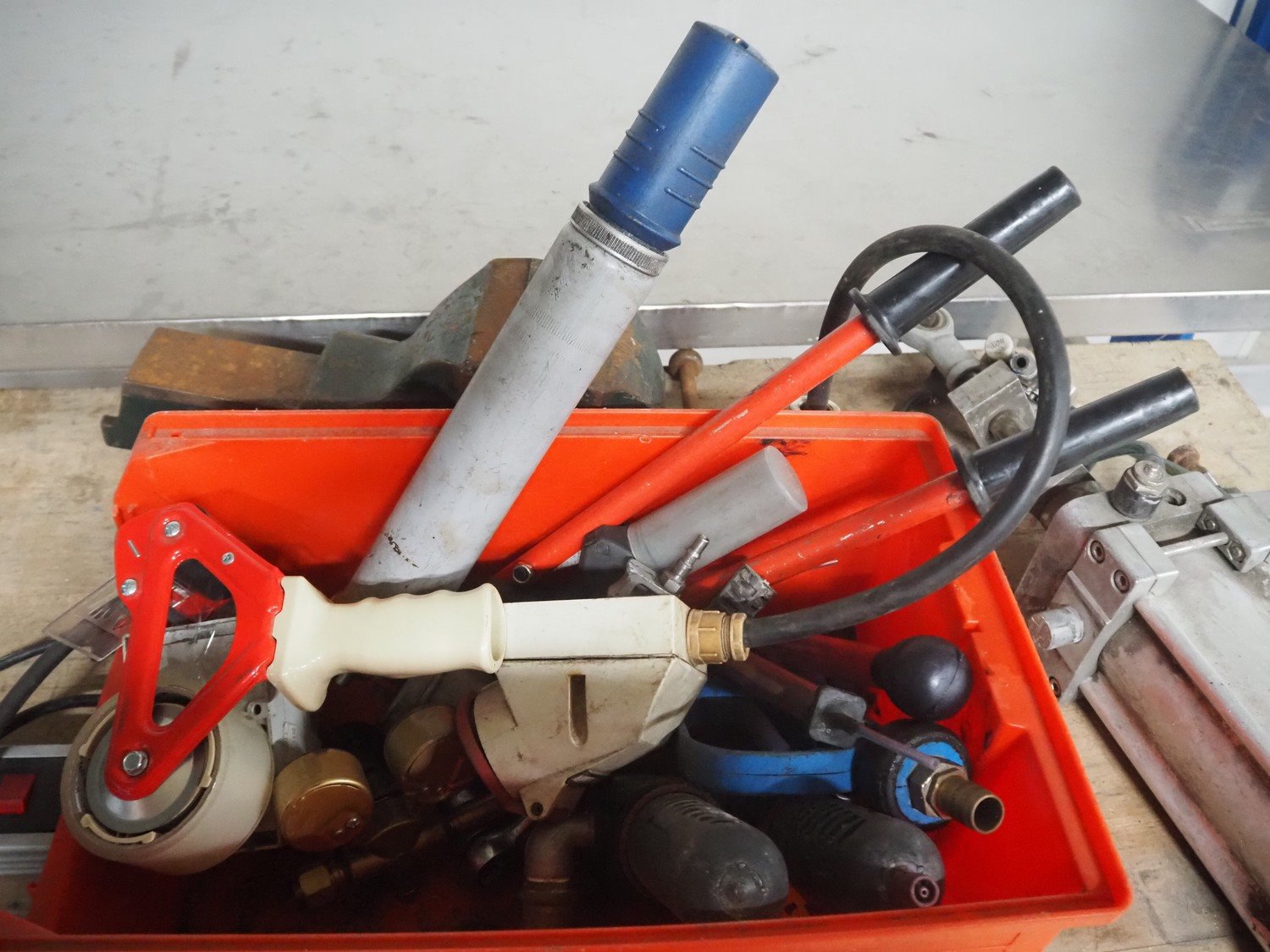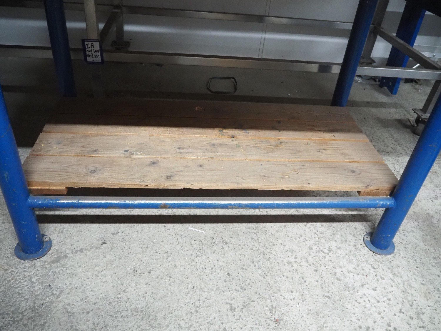 Wooden workbench, steel frame, 2 steel vises, dimensions: 1500 mm x 800 mm x 800 mm.