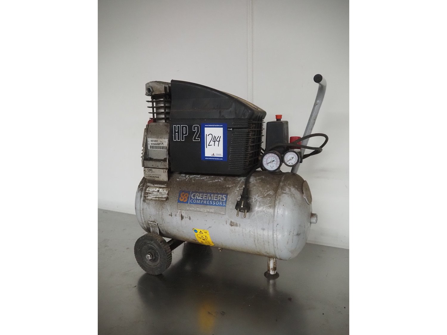 Creemers Compressors compressor, type: MOBIEL 240/25, serial number: ITR0362948, year of construction: 2010, 230 V, 8 bar, volume: 24 liter, dimensions: 600 mm x 300 mm x 580 mm.