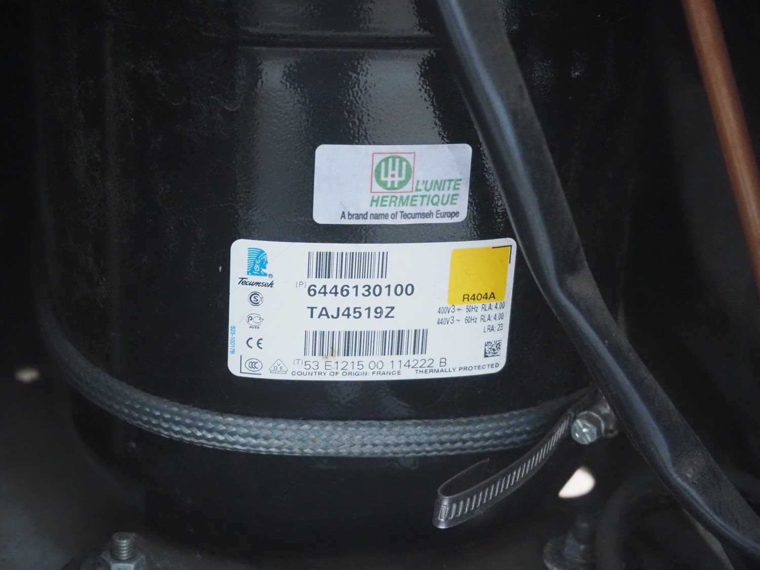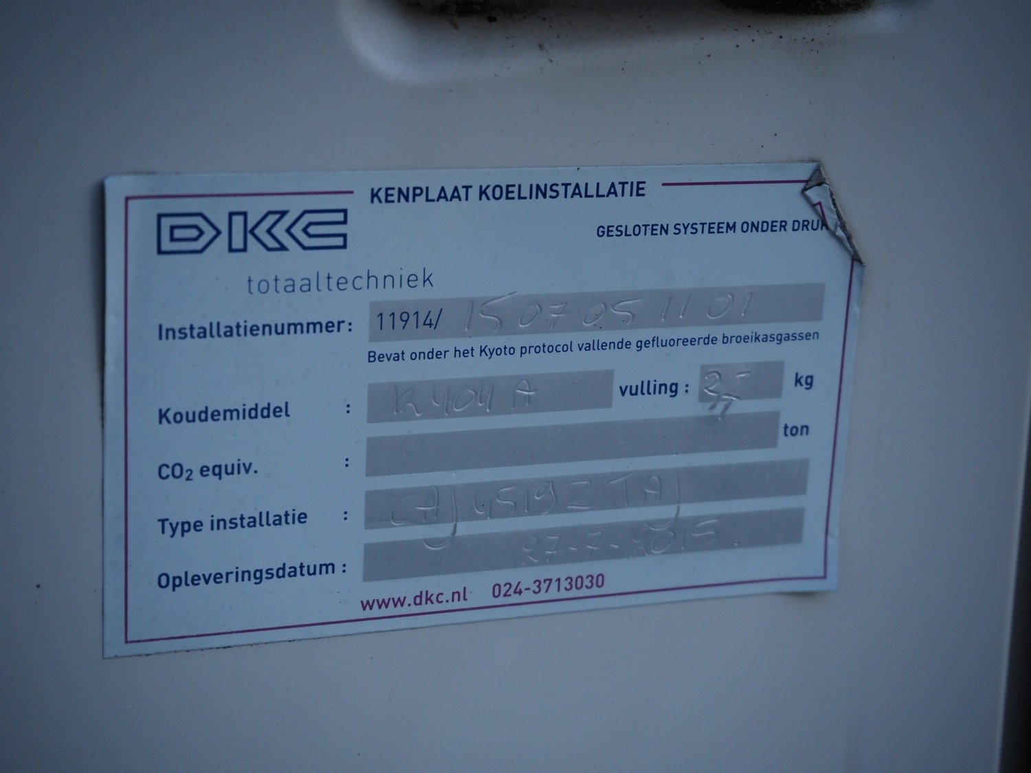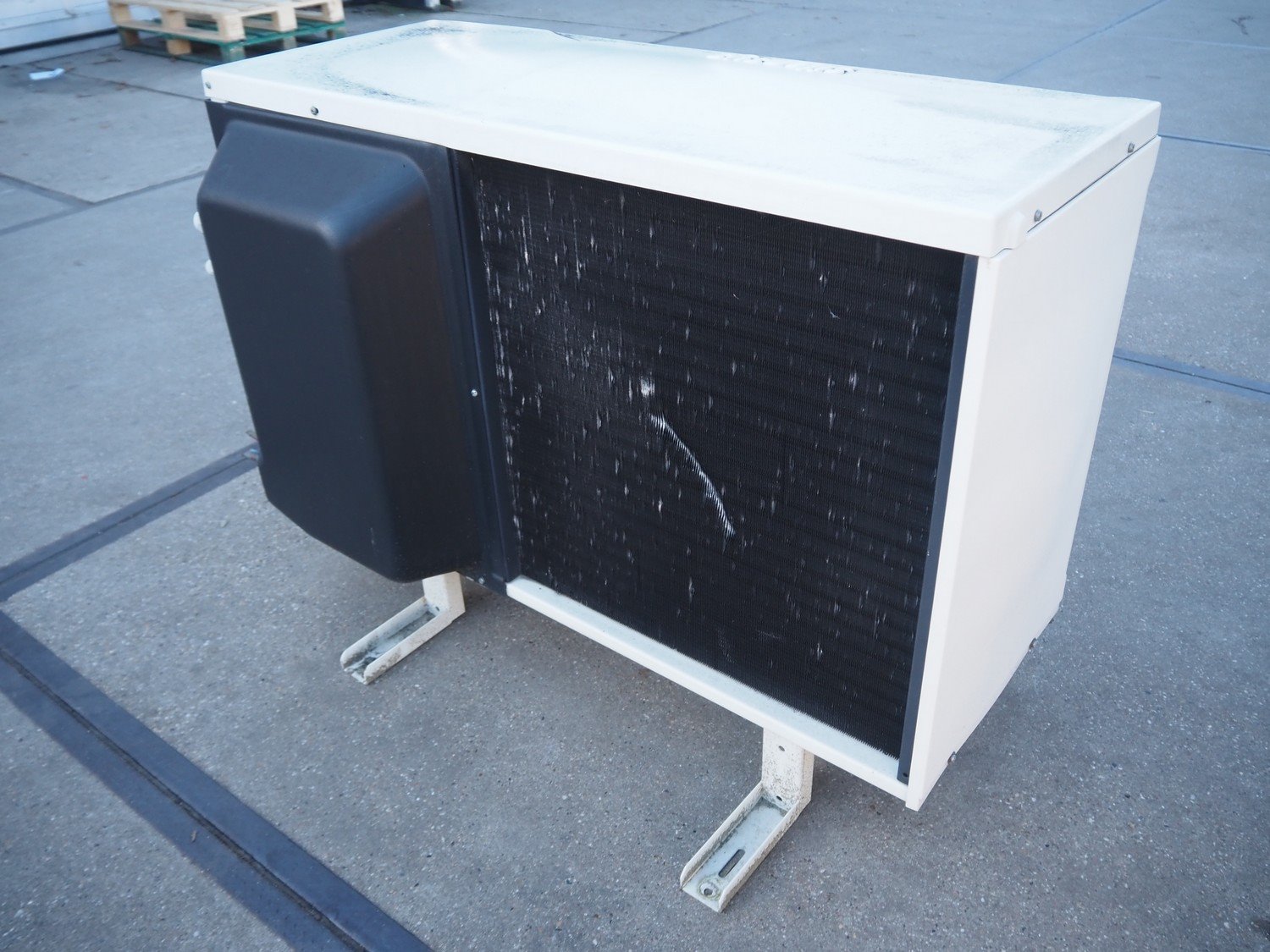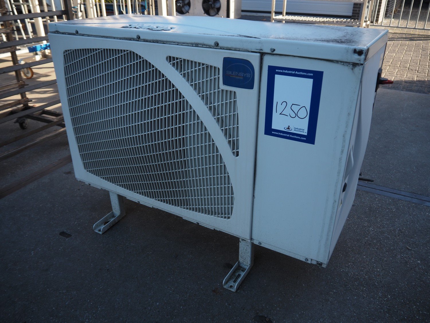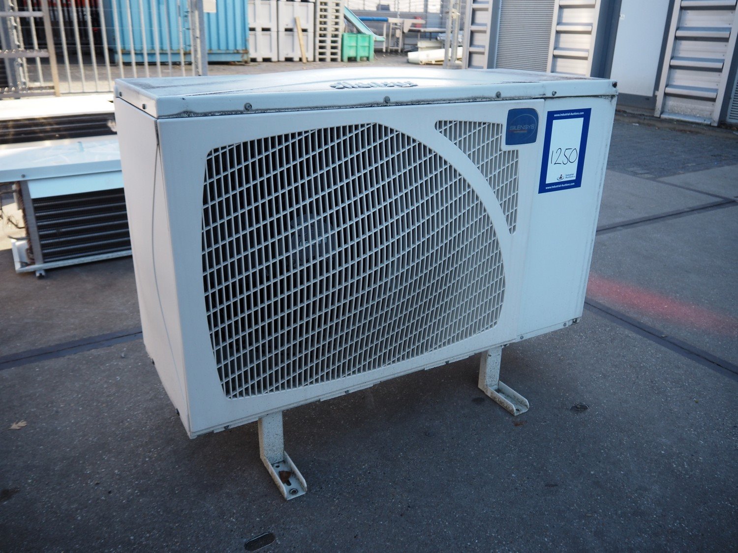 Silensys outside unit for airconditioning, serial number: 15E21 113803 S993130202, refrigerant: R404a, dimensions: 1000 mm x 400 mm x 800 mm.