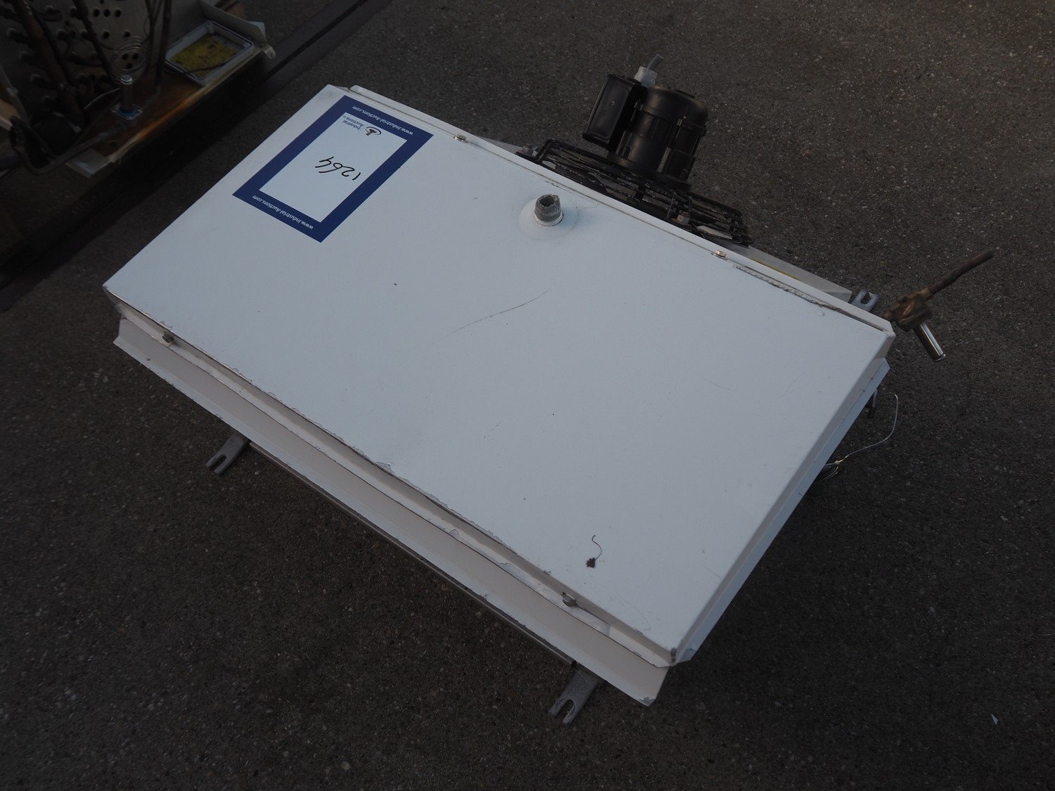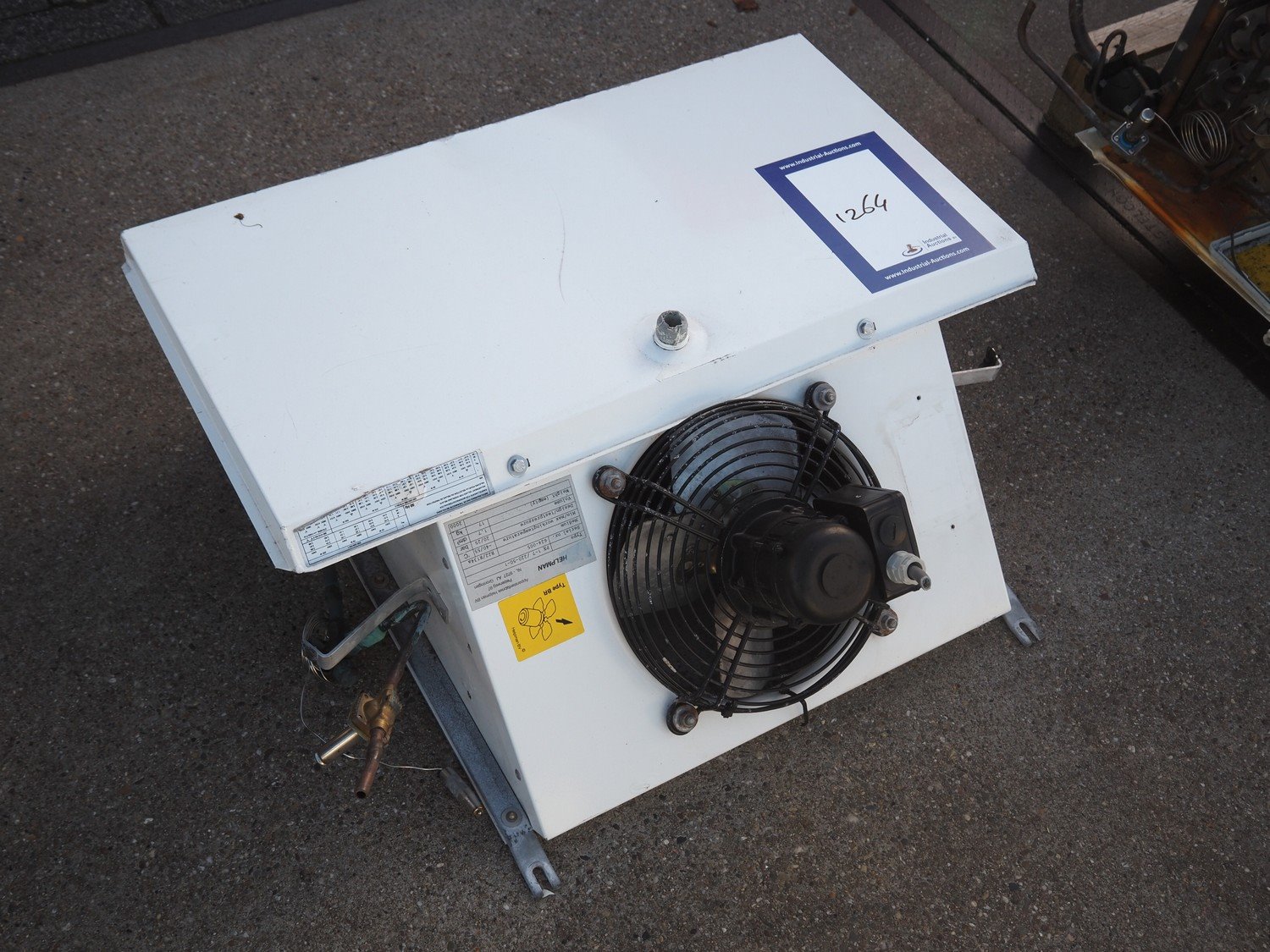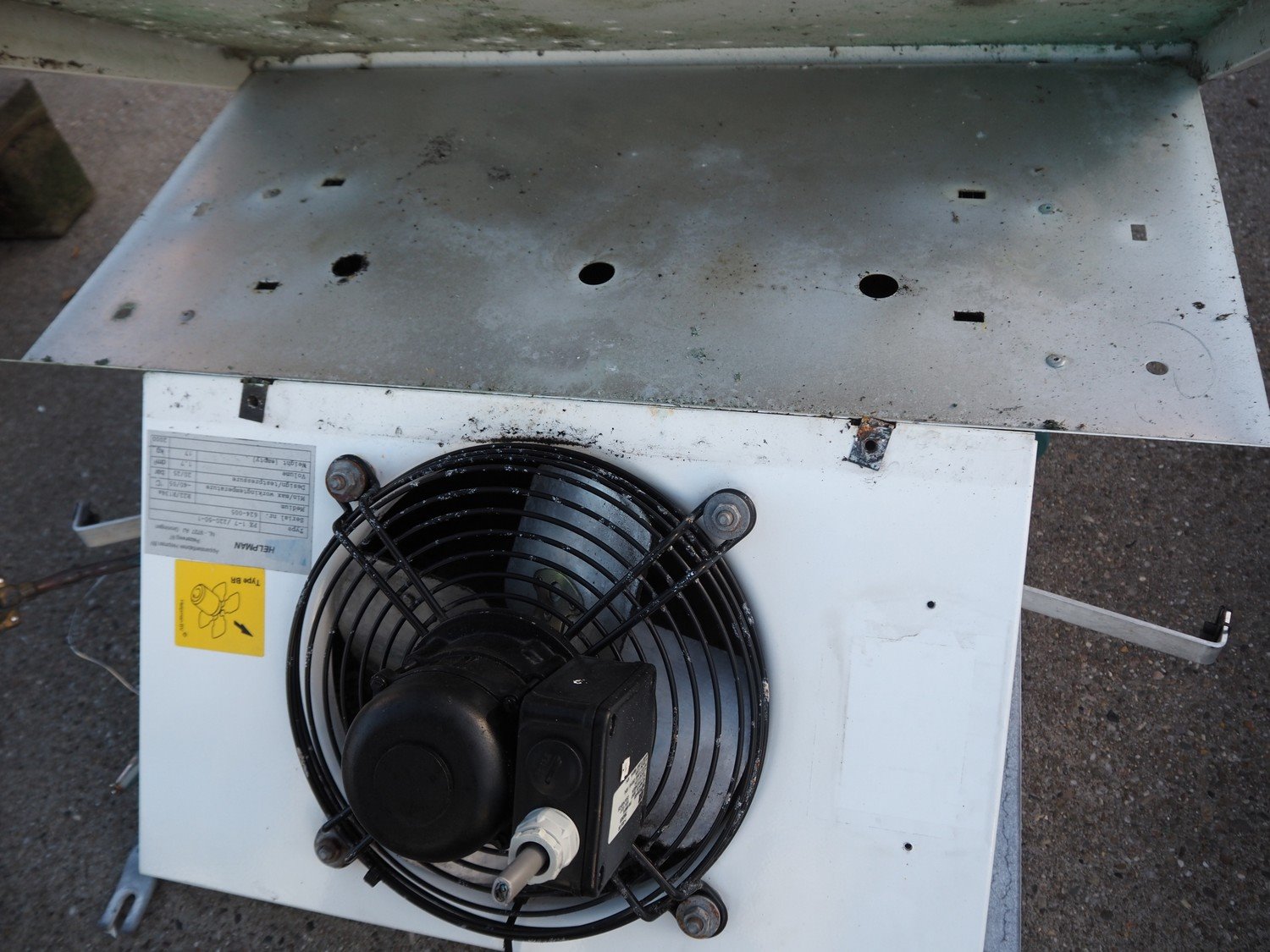 Helpman evaporator, type: PX 1-7, serial number: 624-005, year of construction: 2000, 220 V, 1 Ph, 50 Hz, refrigerant: R22 / R134a, dimensions: 750 mm x 670 mm x 270 mm.