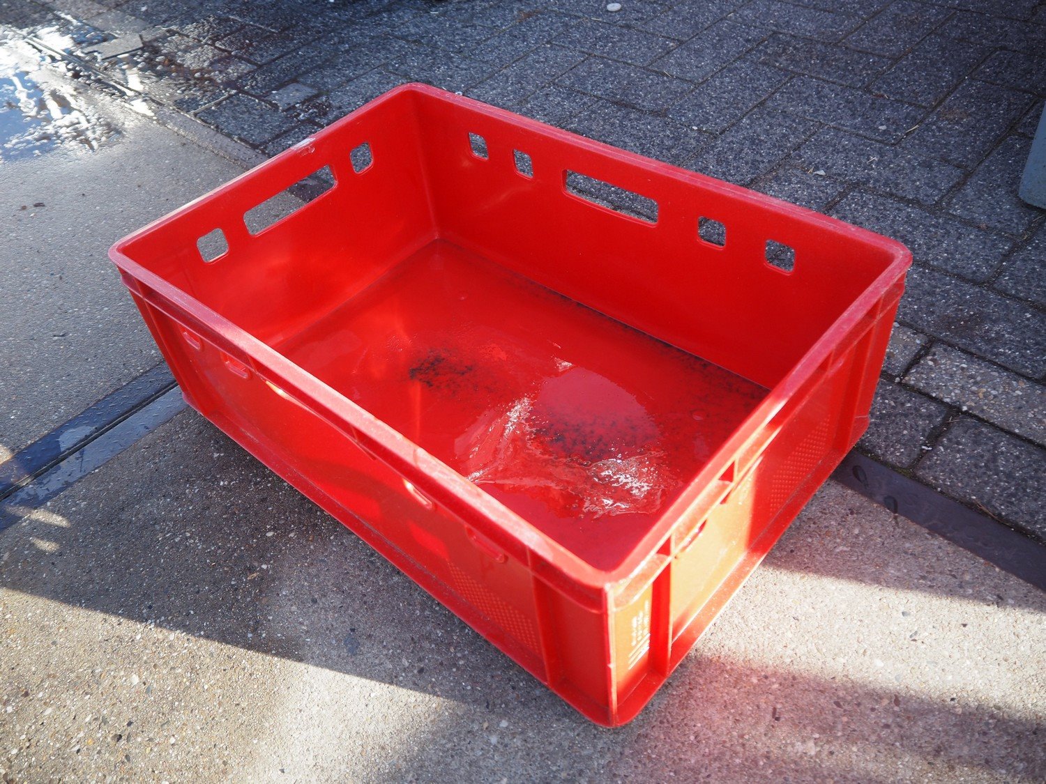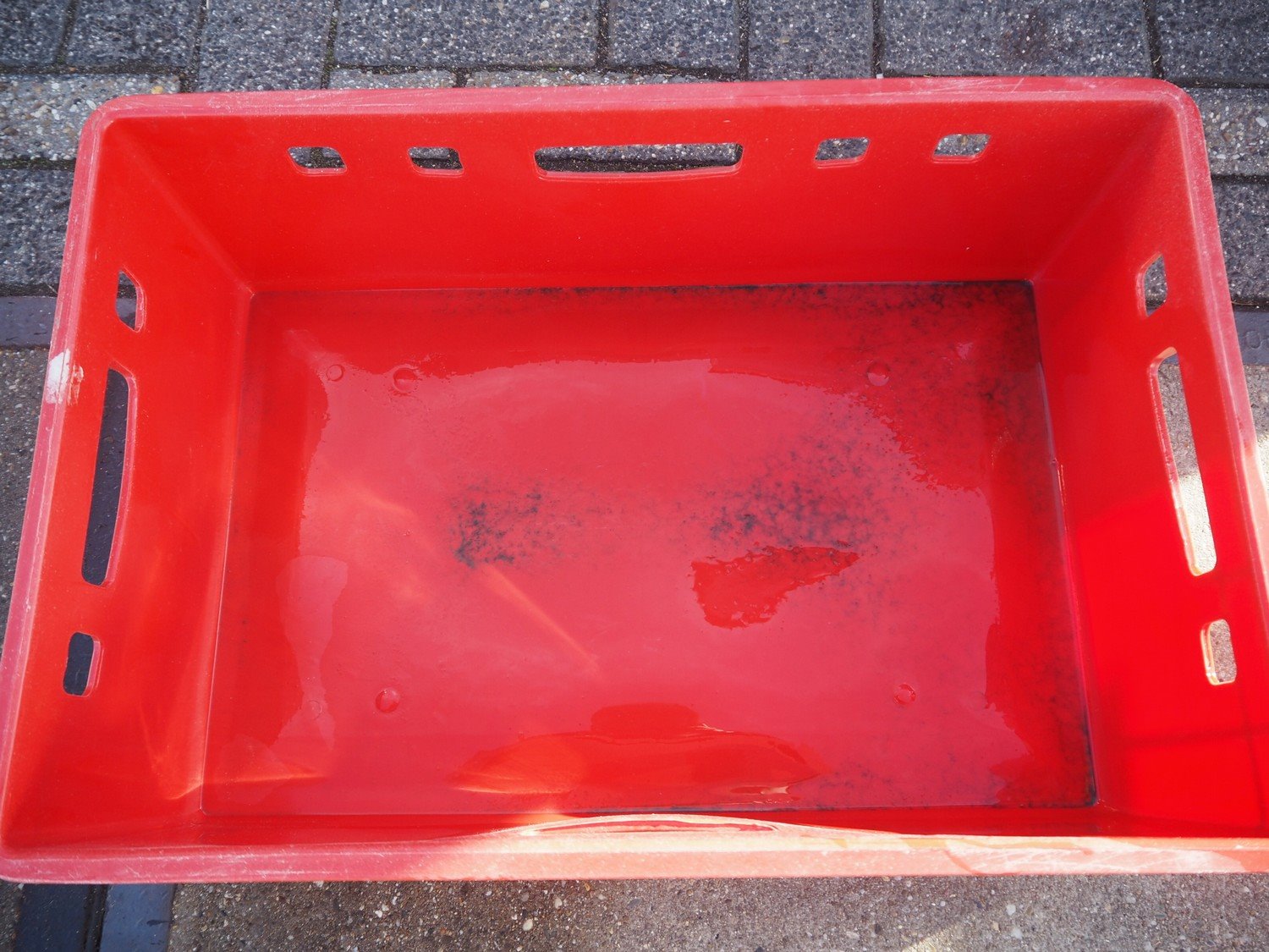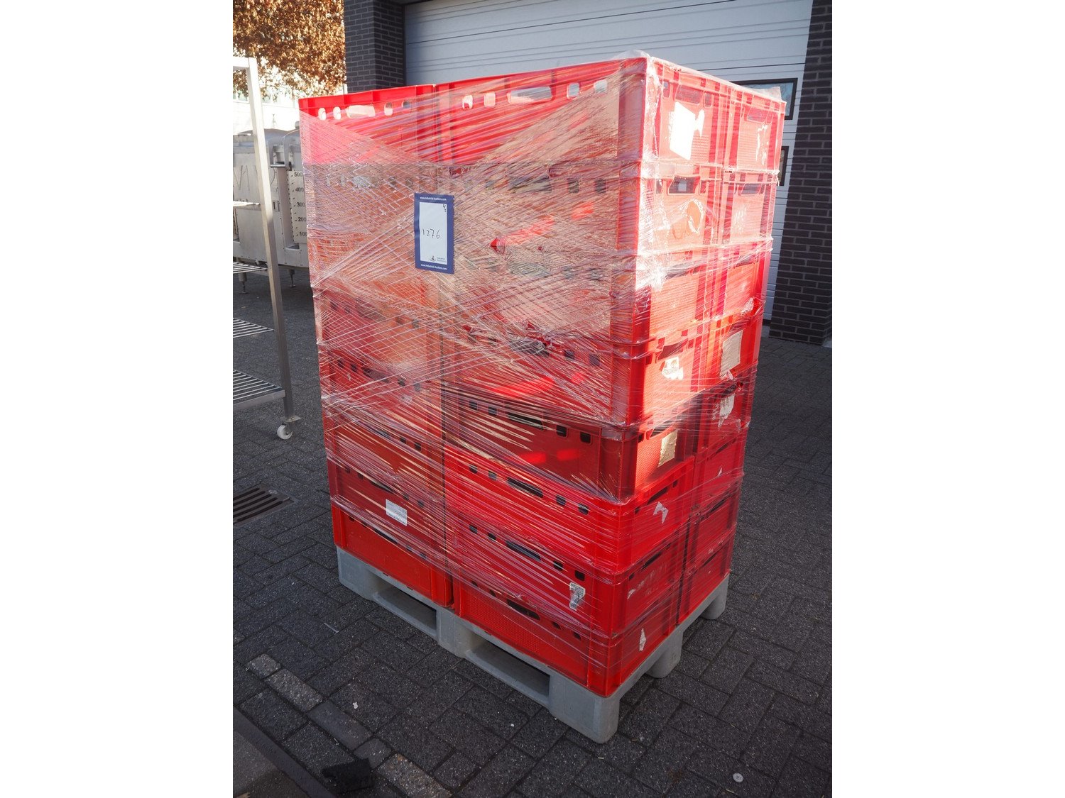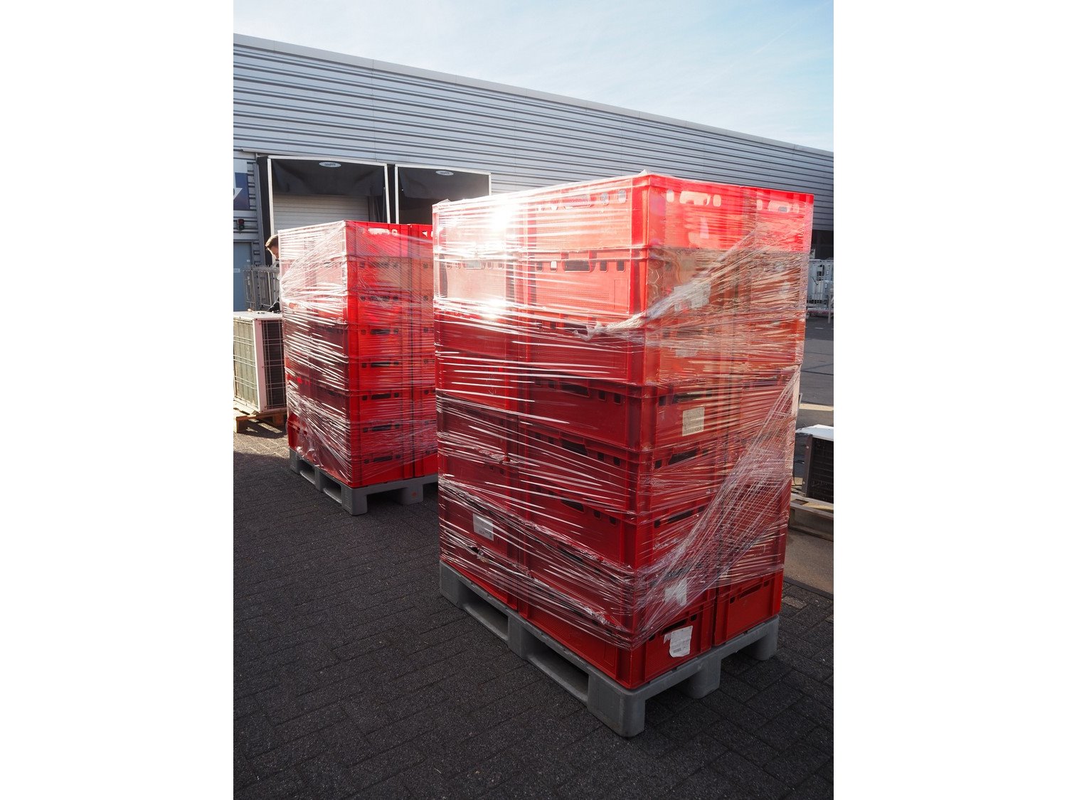 2 plastic EURO H1 pallets with 64 plastic E-2 crates, dimensions each crate: 600 mm x 400 mm x 180 mm, total dimensions pallet: 1200 mm x 800 mm x 1670 mm.