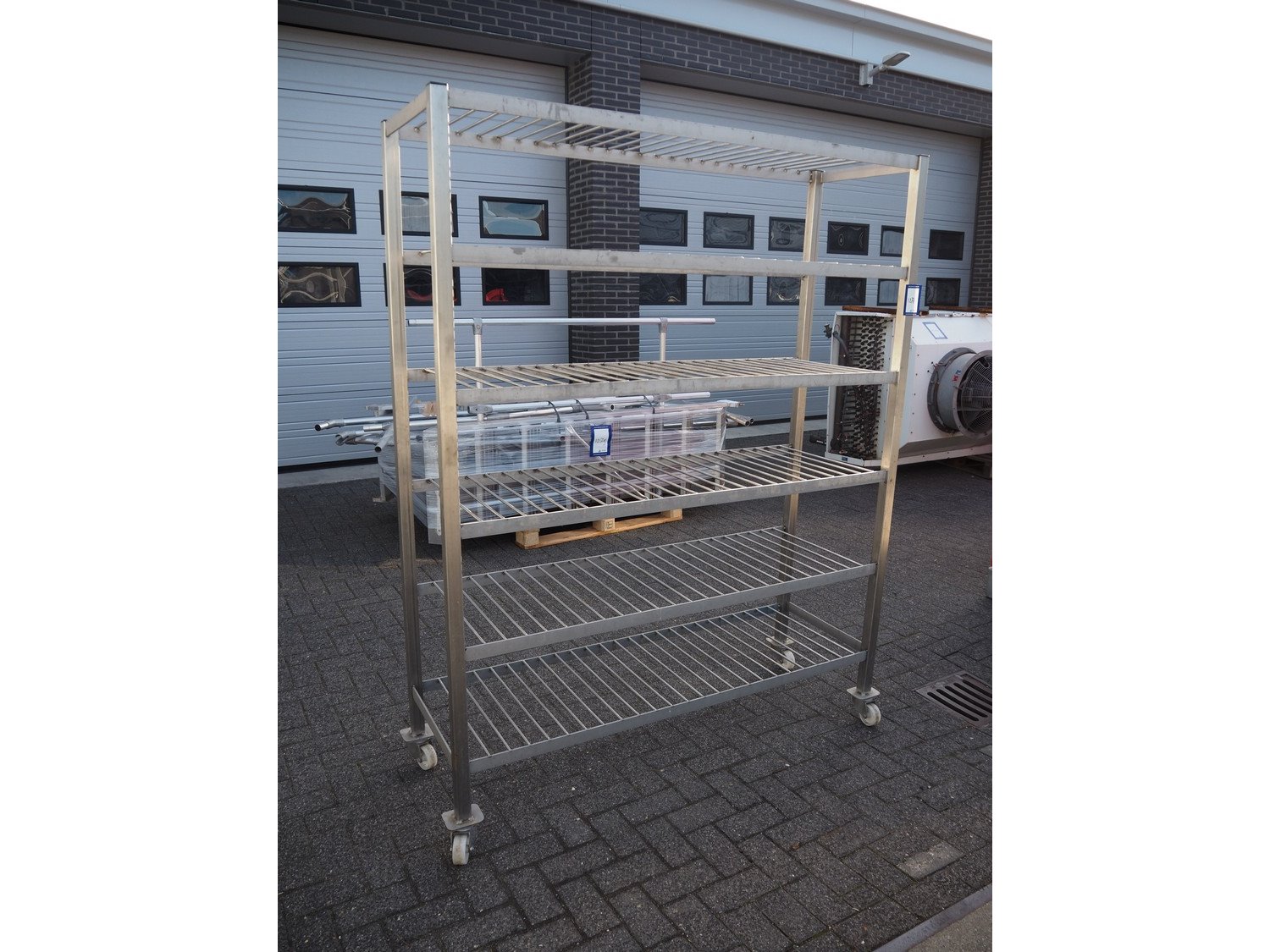 Mobile s/s rack, dimensions: 1600 mm x 530 mm x 2000 mm.