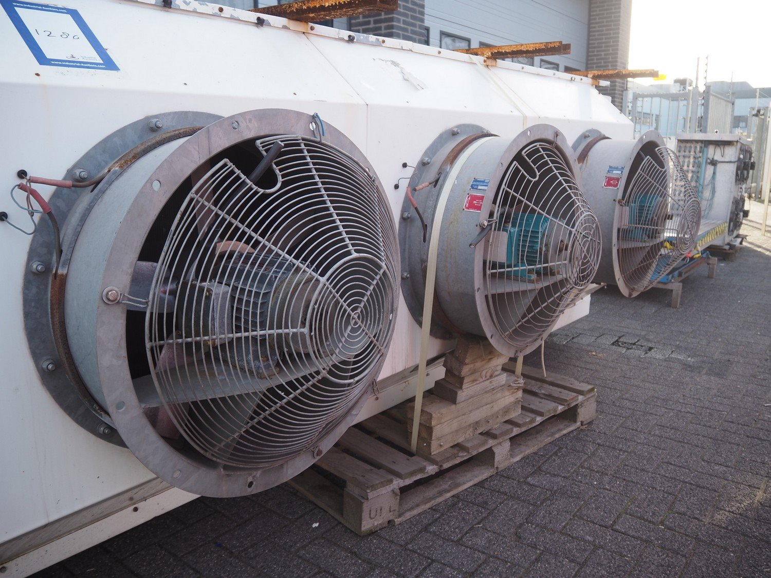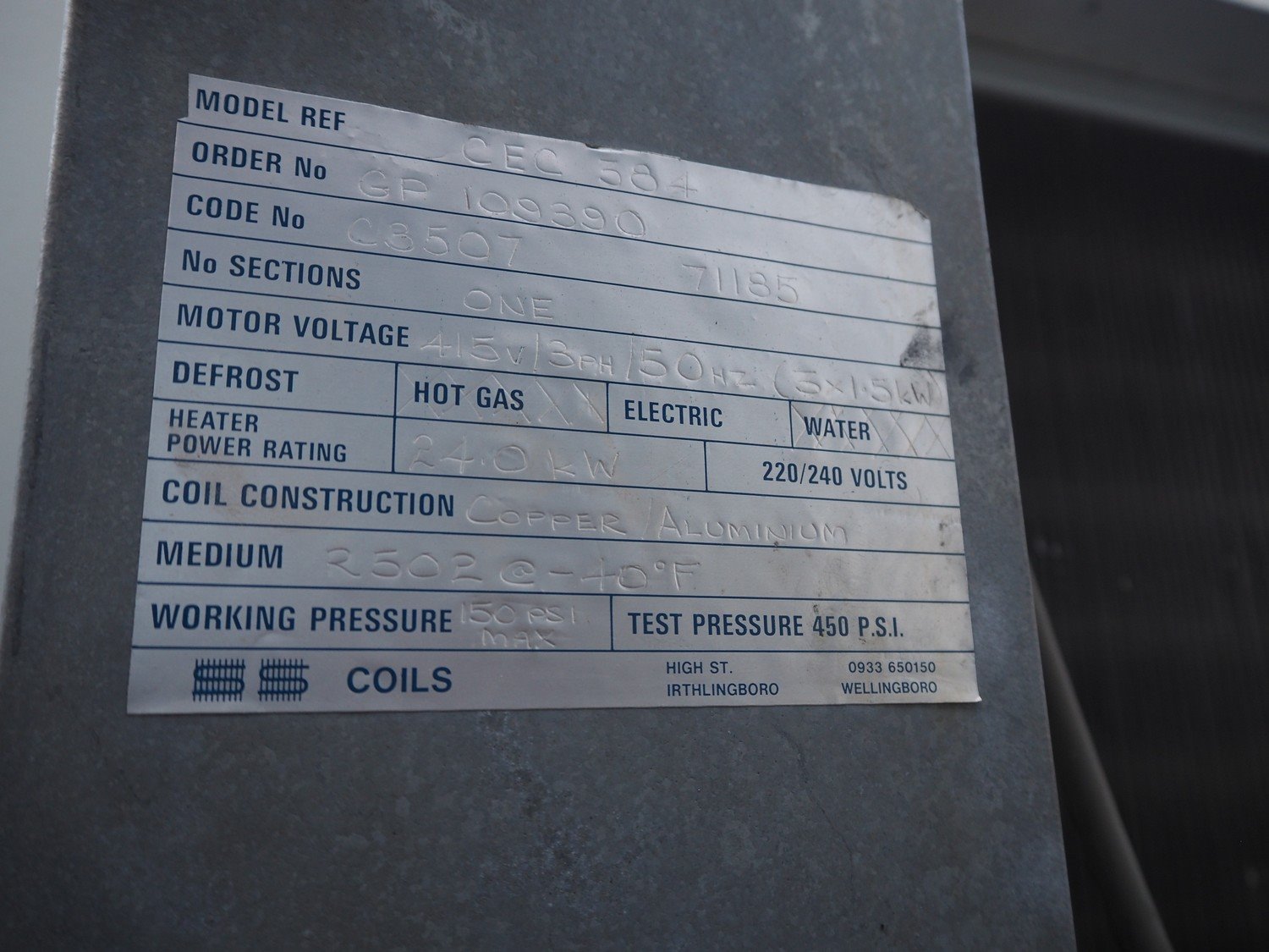 HC Coils evaporator, model: CEC 384, number: C3507 71185, 415 V, 3 Ph, 50 Hz, 24 kW, maximum work pressure: 150 P.S.I., 3 fans, dimensions: 3550 mm x 1370 mm x 1300 mm.