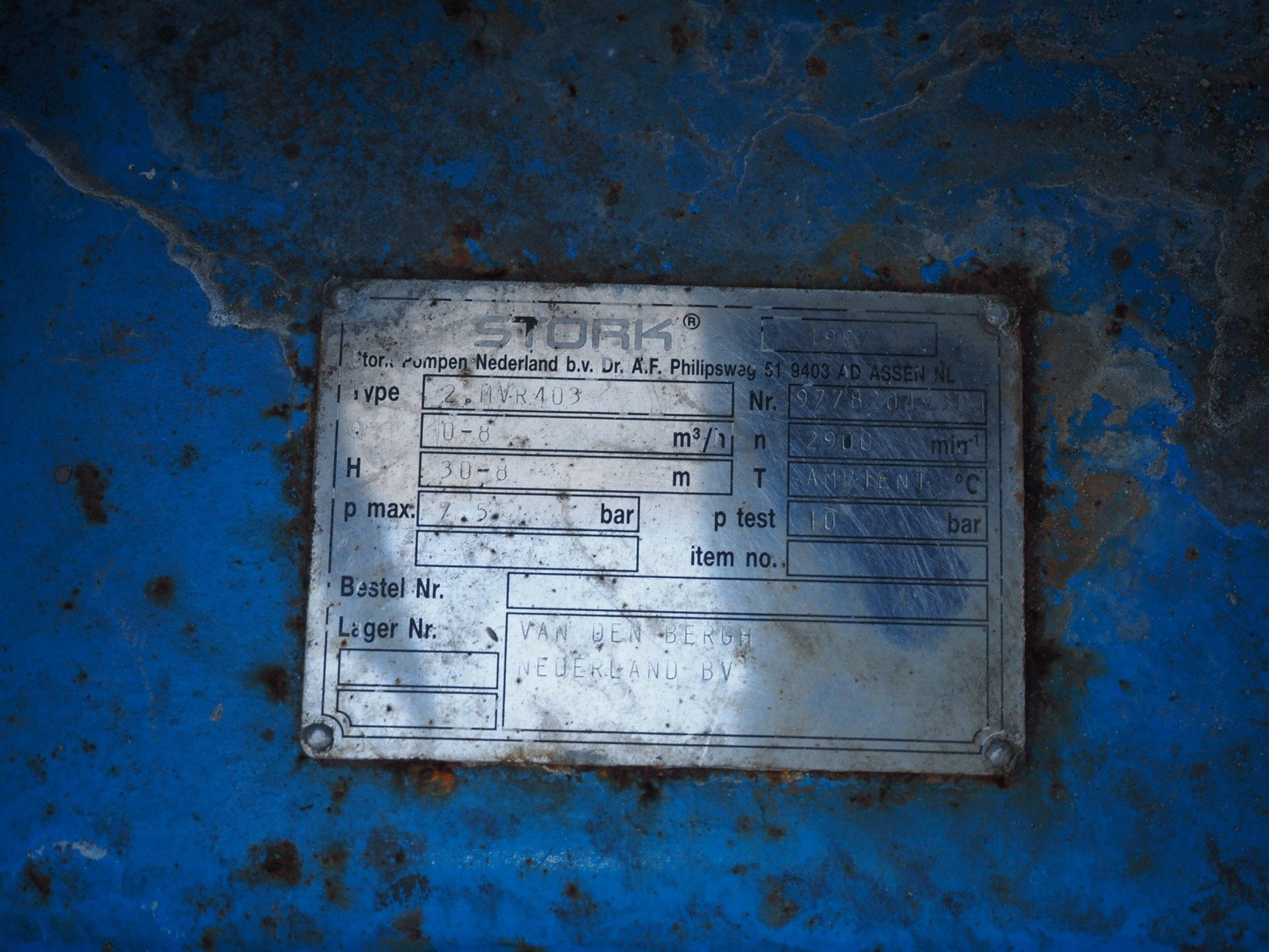 Stork pump installation, type: (2x) 2.MVR 403, capacity: 8 m³ per hour, dimensions: 1150 mm x 700 mm x 1270 mm.