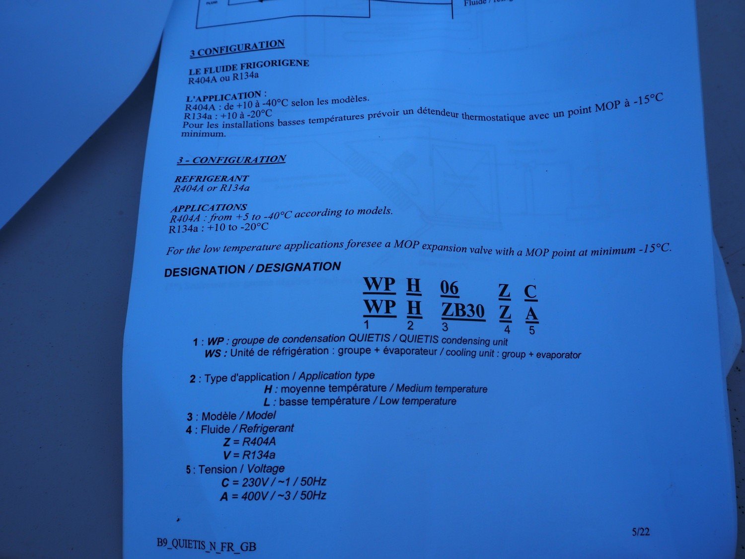 Carrier outside unit for airconditioning, refrigerant: R404a, dimensions: 1150 mm x 1000 mm x 850 mm.