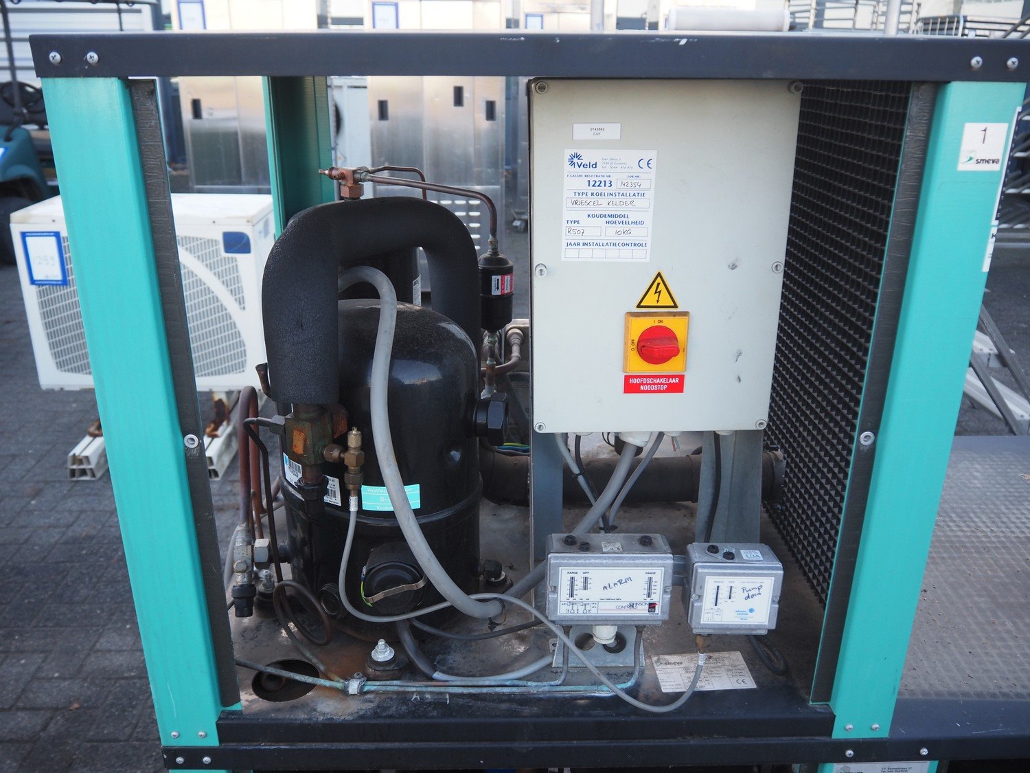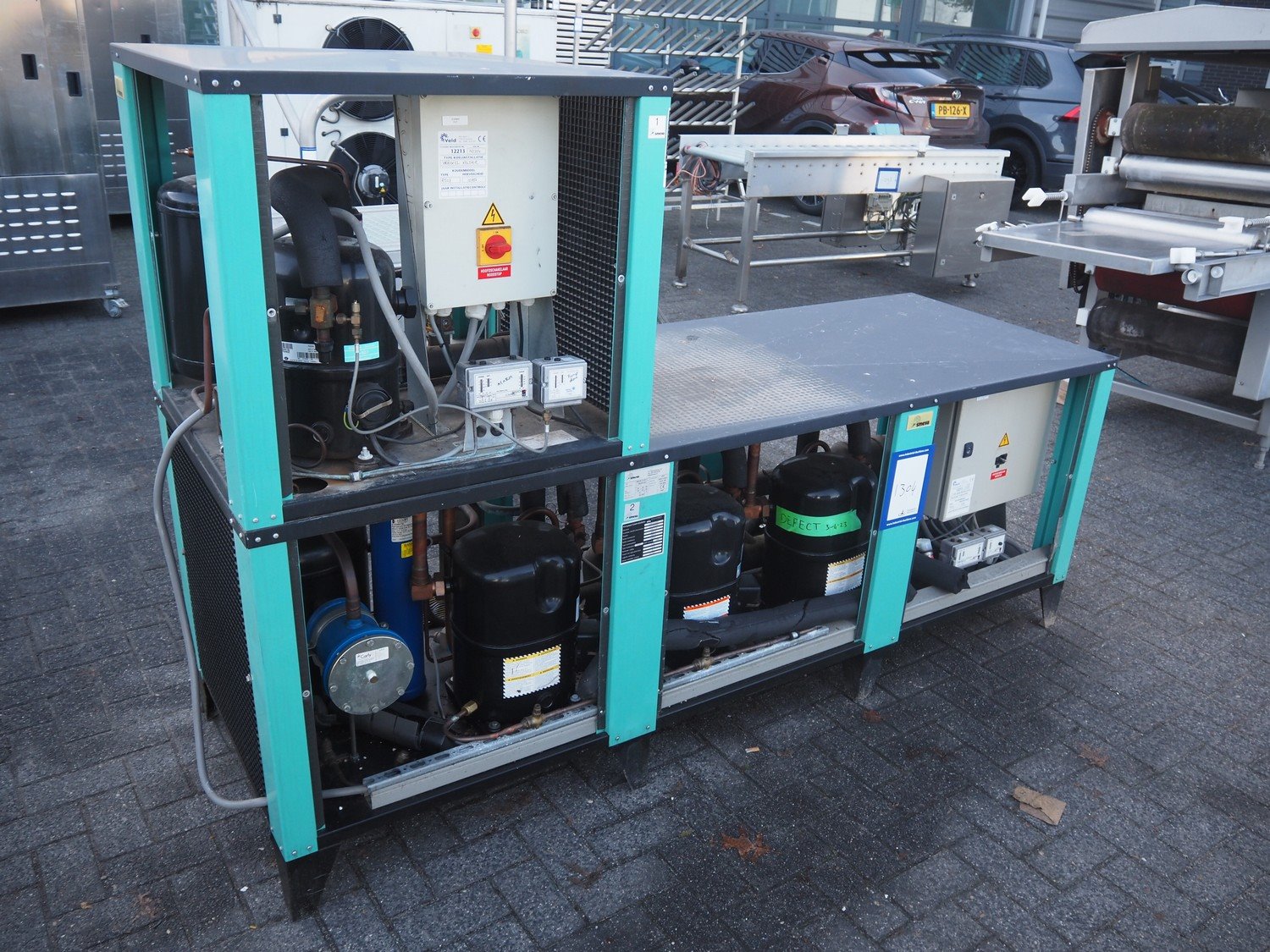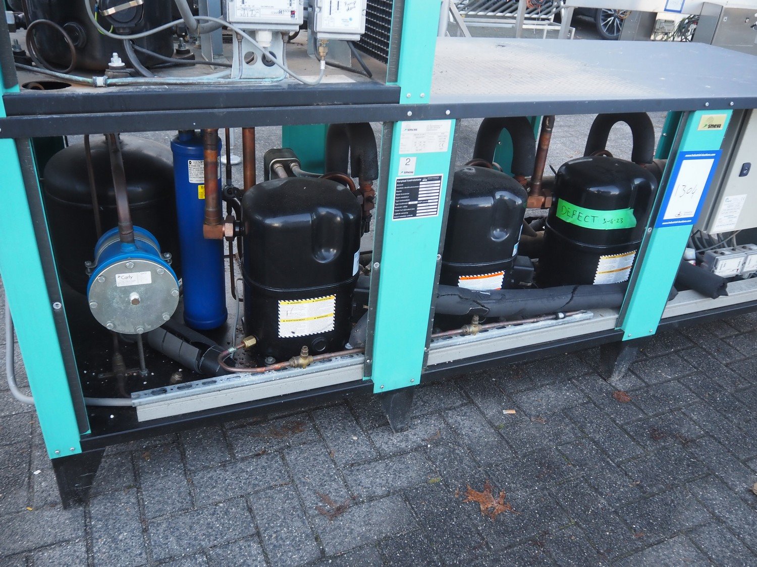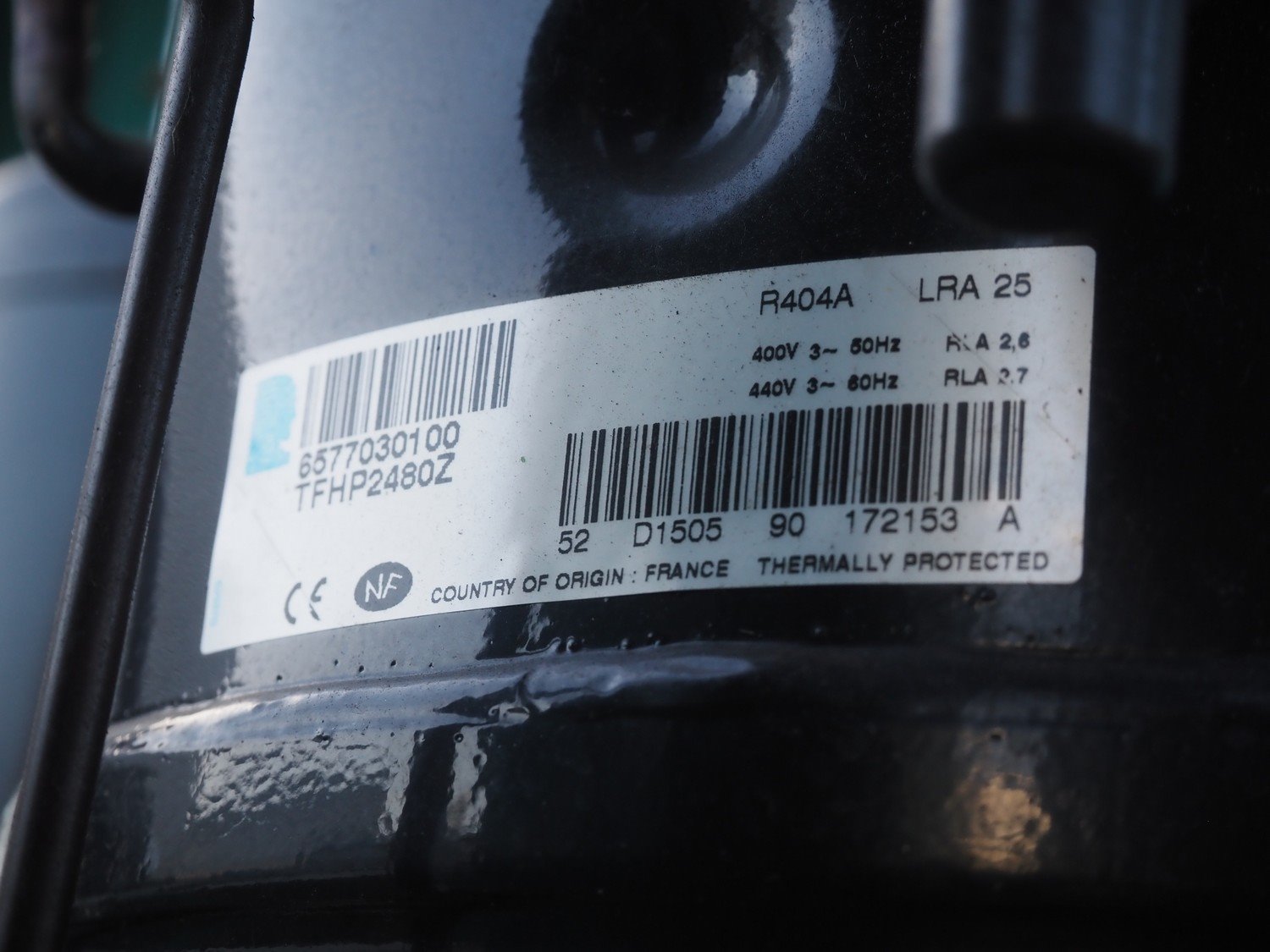 Cabinet with 4 Tecumseh cooling compressors, model: TFHP2480Z, TAGP4561X and (2x) TAGP4561Z, refrigerant: R507, 30 and 10 kg, dimensions: 2300 mm x 750 mm x 1550 mm. 1 compressor defect.