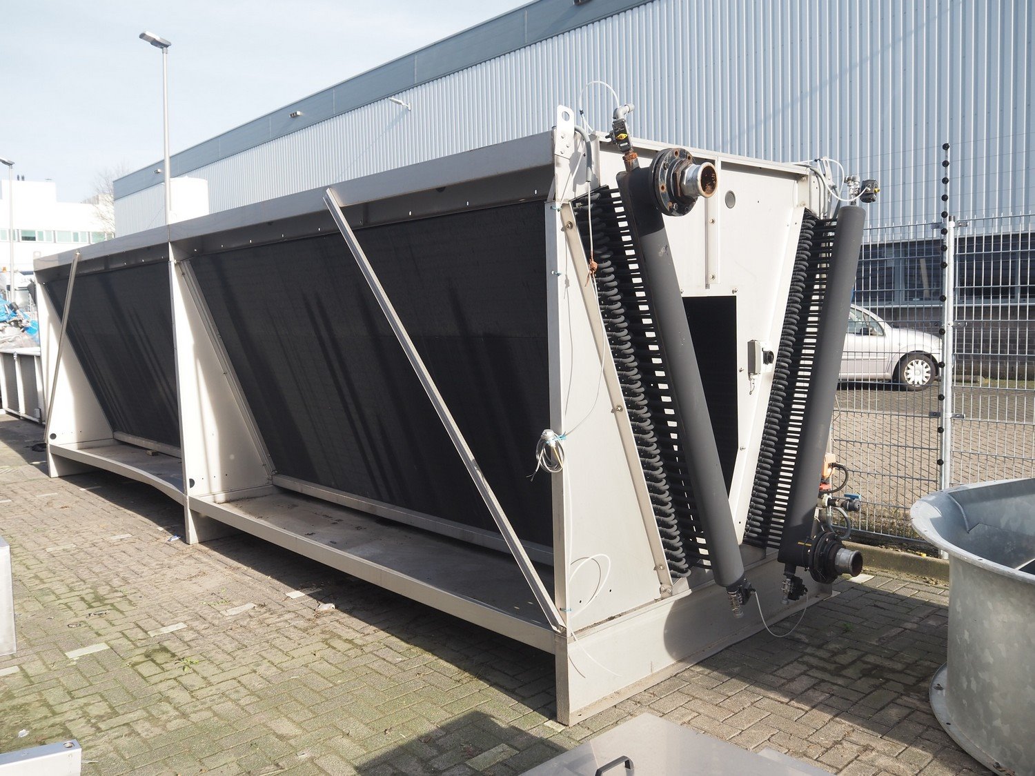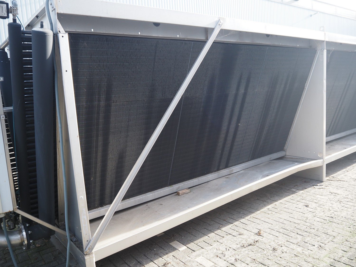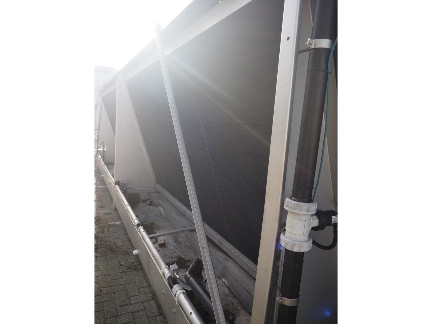 Chiller, dimensions: 9750 mm x 2200 mm x 2500 mm. Including 3 fans, dimensions: (3x) Ø 2000 mm x 1150 mm.