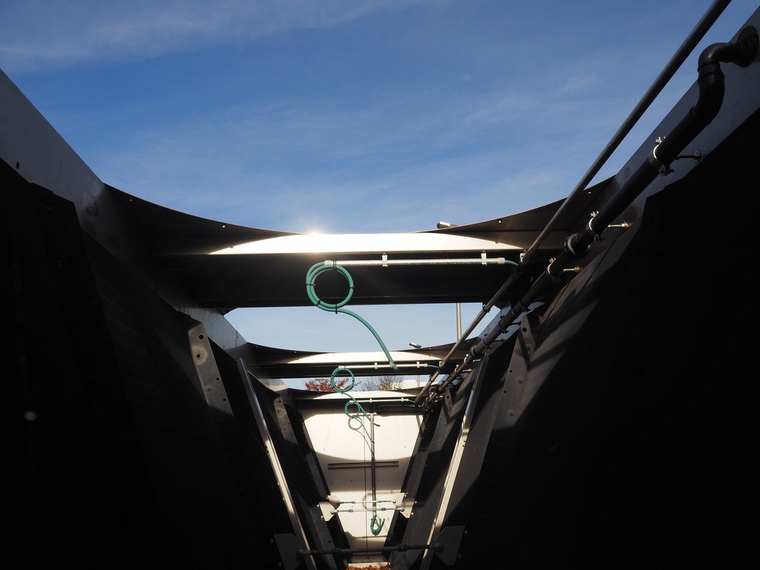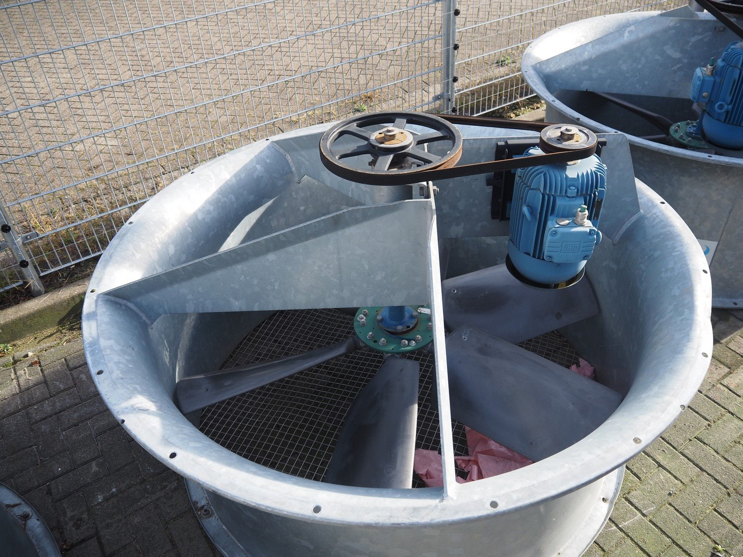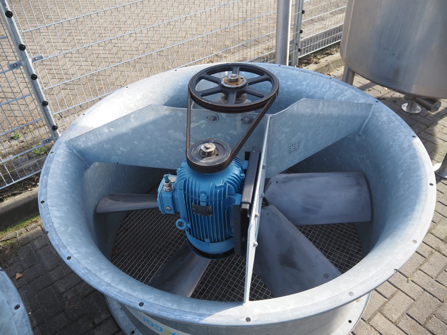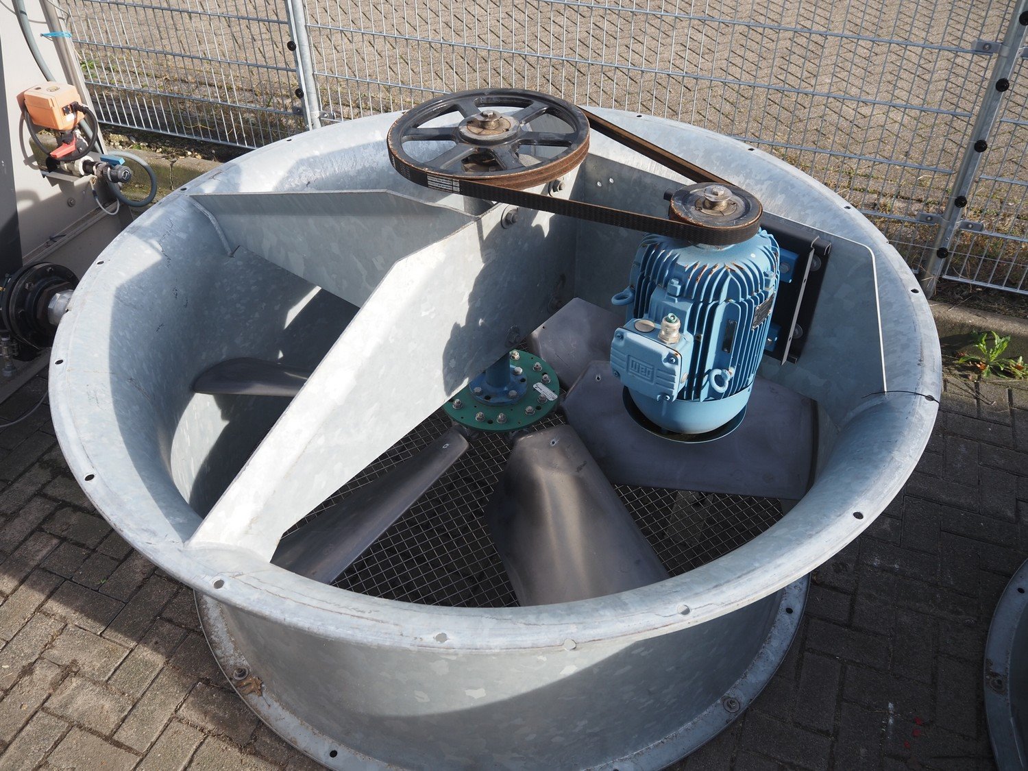 Chiller, dimensions: 9750 mm x 2200 mm x 2500 mm. Including 3 fans, dimensions: (3x) Ø 2000 mm x 1150 mm.