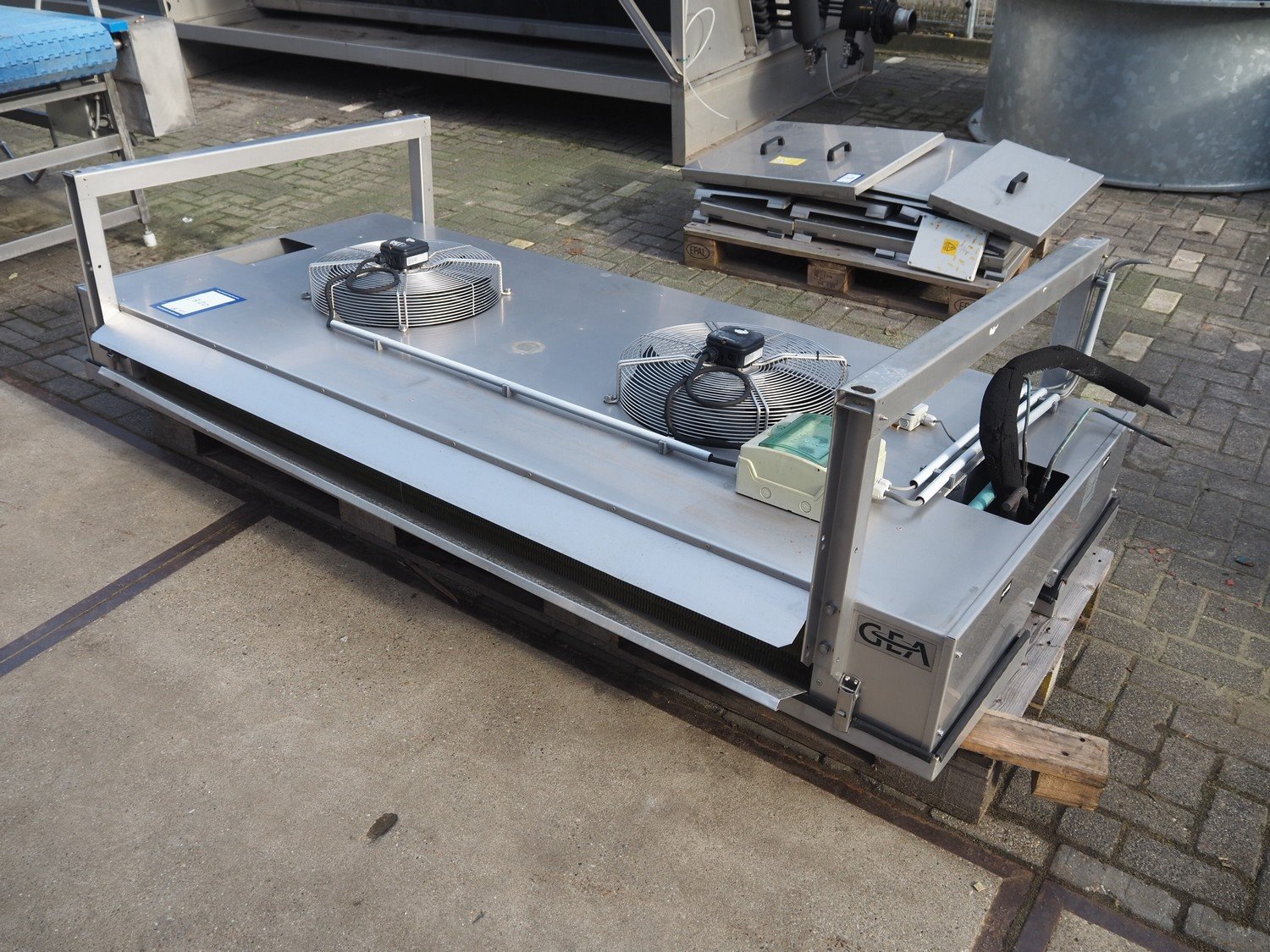 GEA Goedhart B.V. evaporator, type: PACi 42457, manufacturing number: PJV142786.VK1402148, 2 fans, dimensions: 2500 mm x 1200 mm x 600 mm.