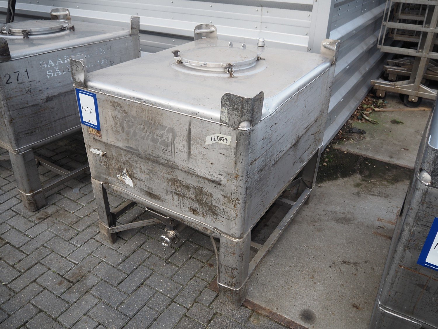 Finncont s/s tank, volume: 800 liter, dimensions: 1200 mm x 1000 mm x 1150 mm.