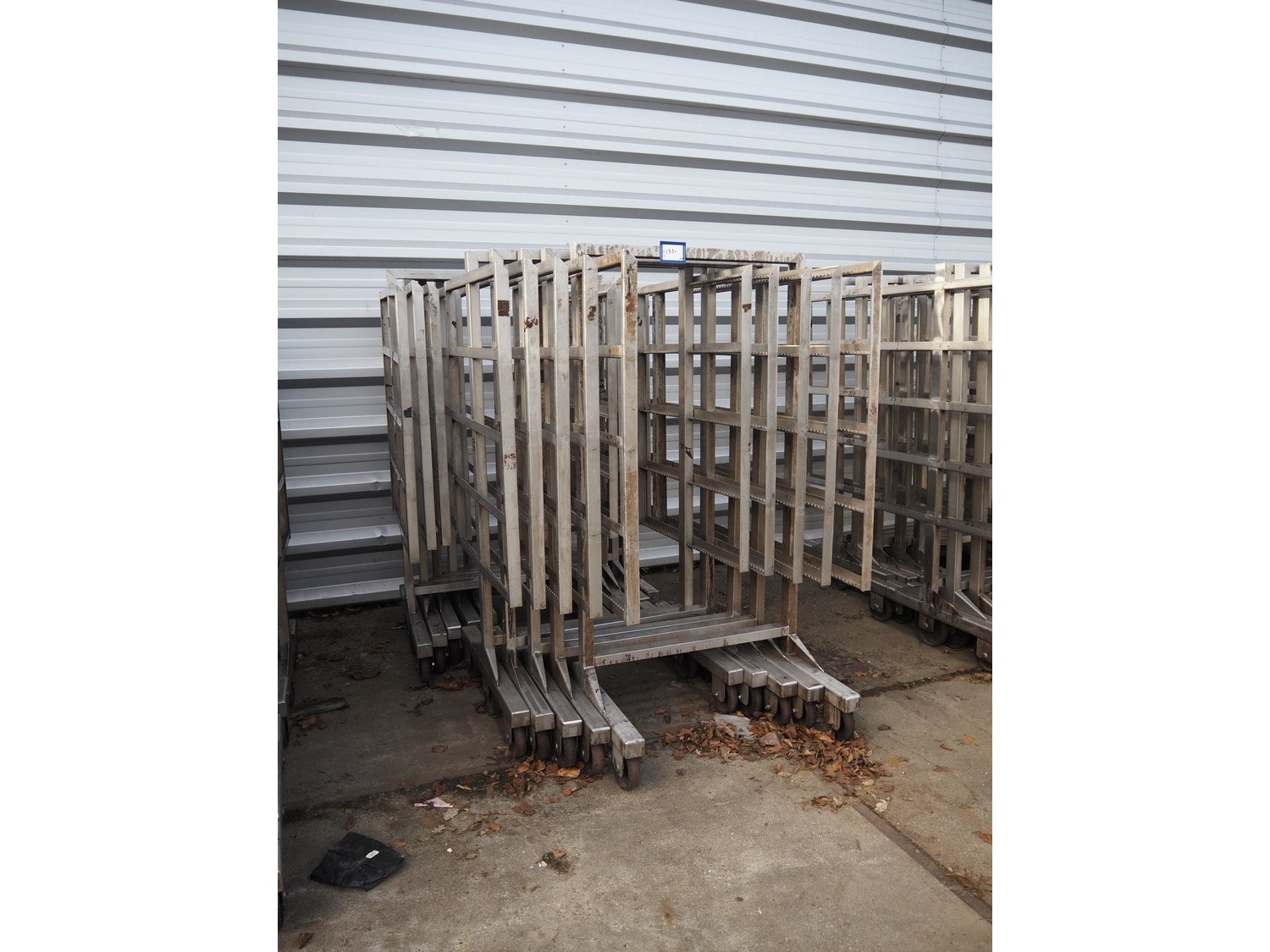 10 s/s smoke trolleys, 5 floors each, dimensions each floor: 960 mm x 900 mm, total dimensions: (10x) 960 mm x 910 mm x 1800 mm.