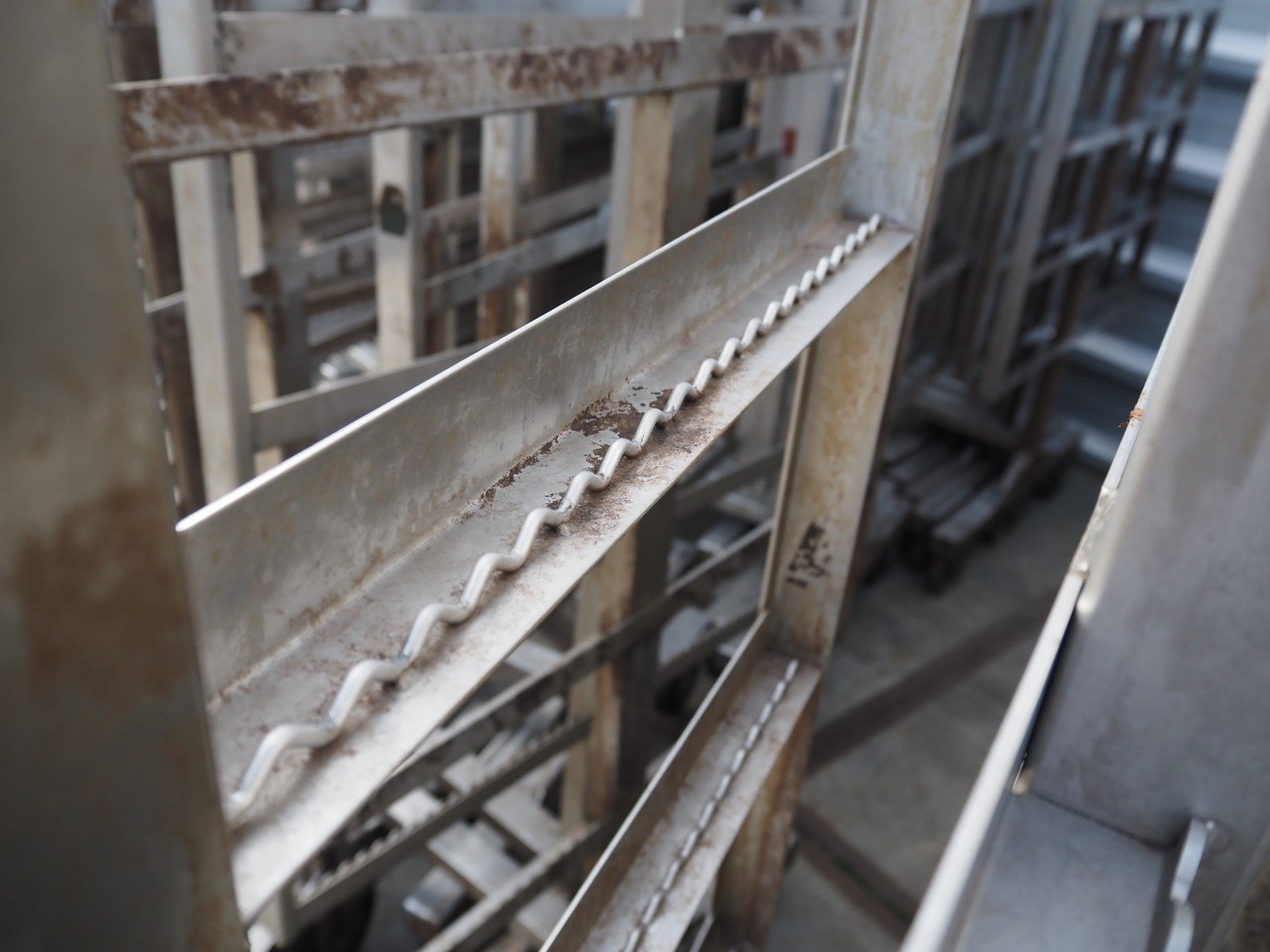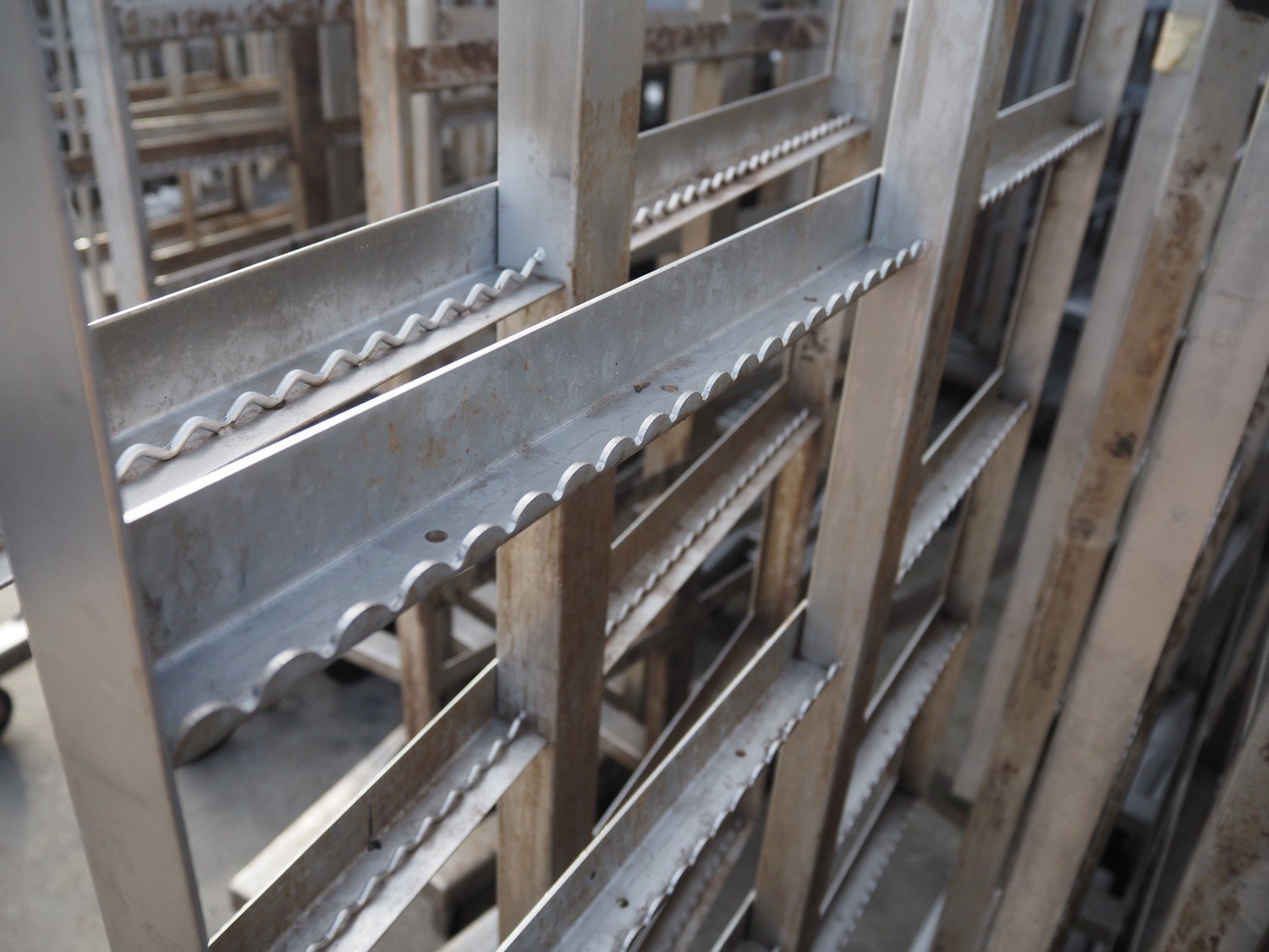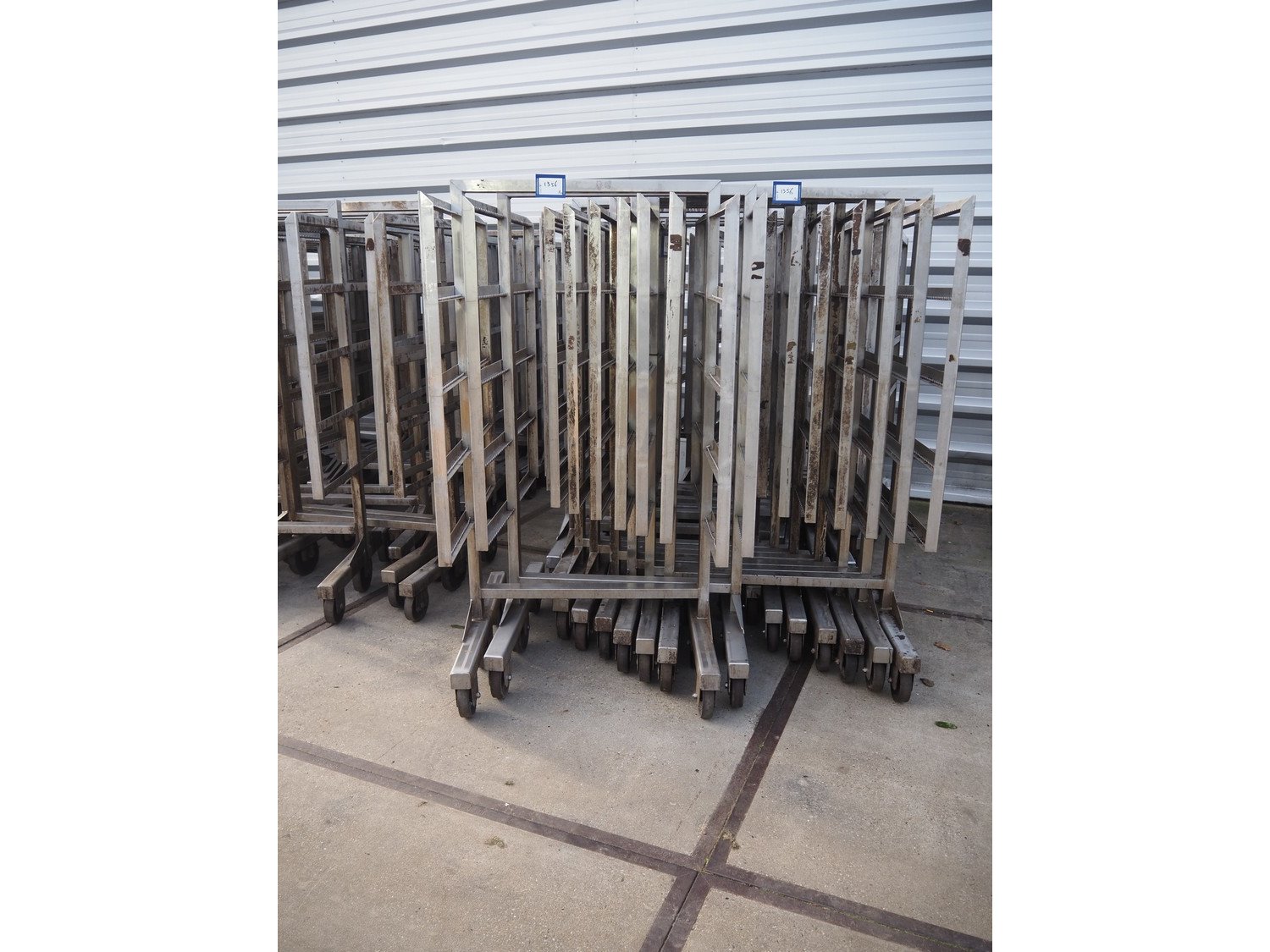 18 s/s smoke trolleys, 5 floors each, dimensions each floor: 960 mm x 900 mm, total dimensions: (18x) 960 mm x 910 mm x 1800 mm.