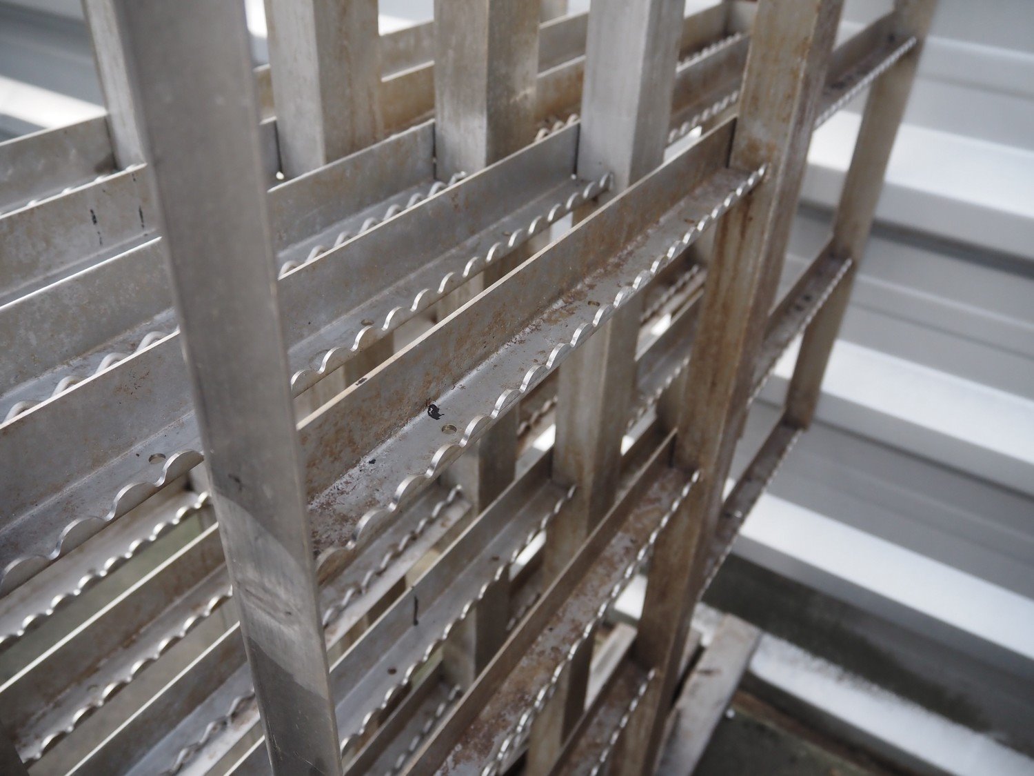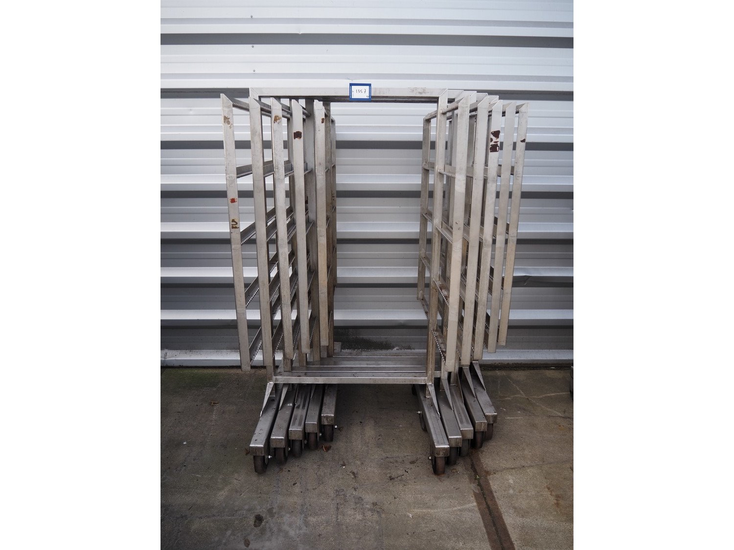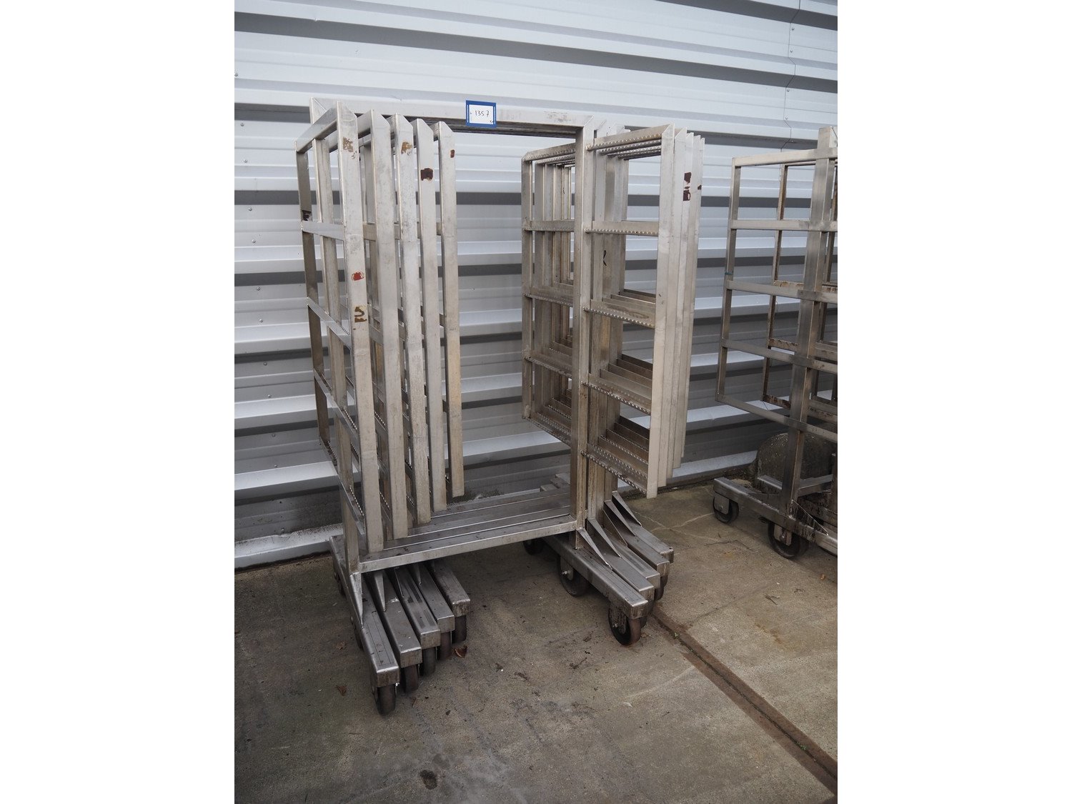 5 s/s smoke trolleys, 5 floors each, dimensions each floor: 960 mm x 900 mm, total dimensions: (5x) 960 mm x 910 mm x 1800 mm.