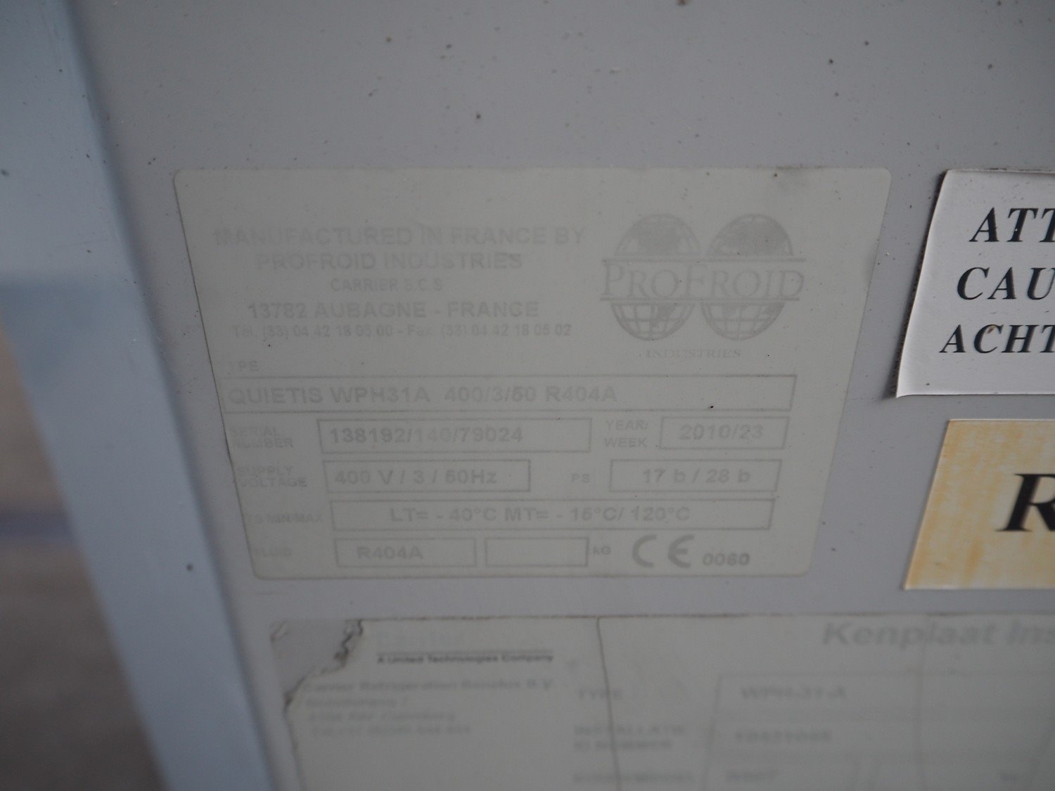 Profroid condensing unit, type: Quietis WPH31A, serial number: 138192/140/79024, year of construction: 2010, 400 V, 3 Ph, 50 Hz, refrigerant: R404a, dimensions: 1200 mm x 400 mm x 750 mm.