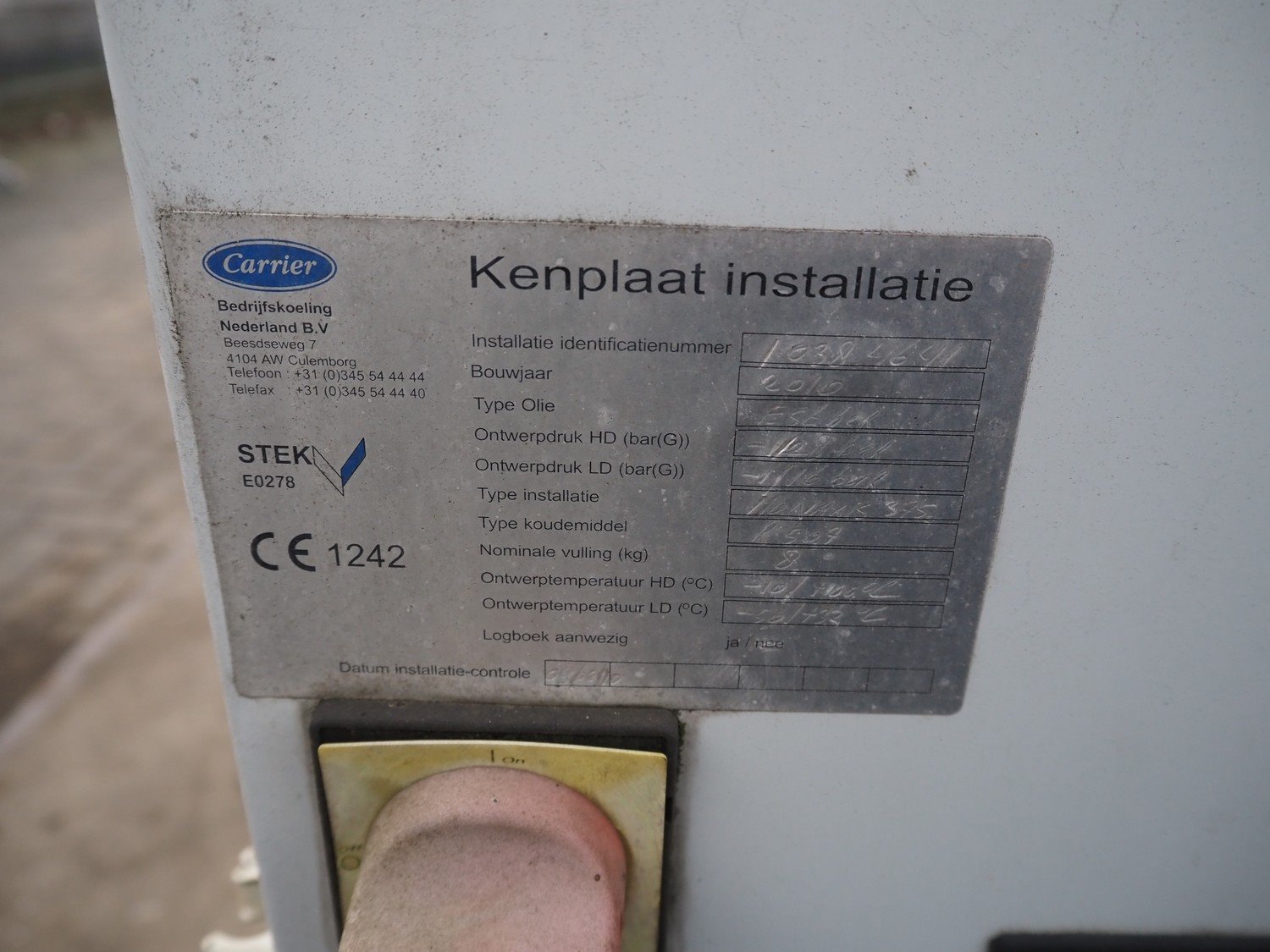 Carrier condensor, refrigerant: R507, dimensions: 1200 mm x 550 mm x 1300 mm.