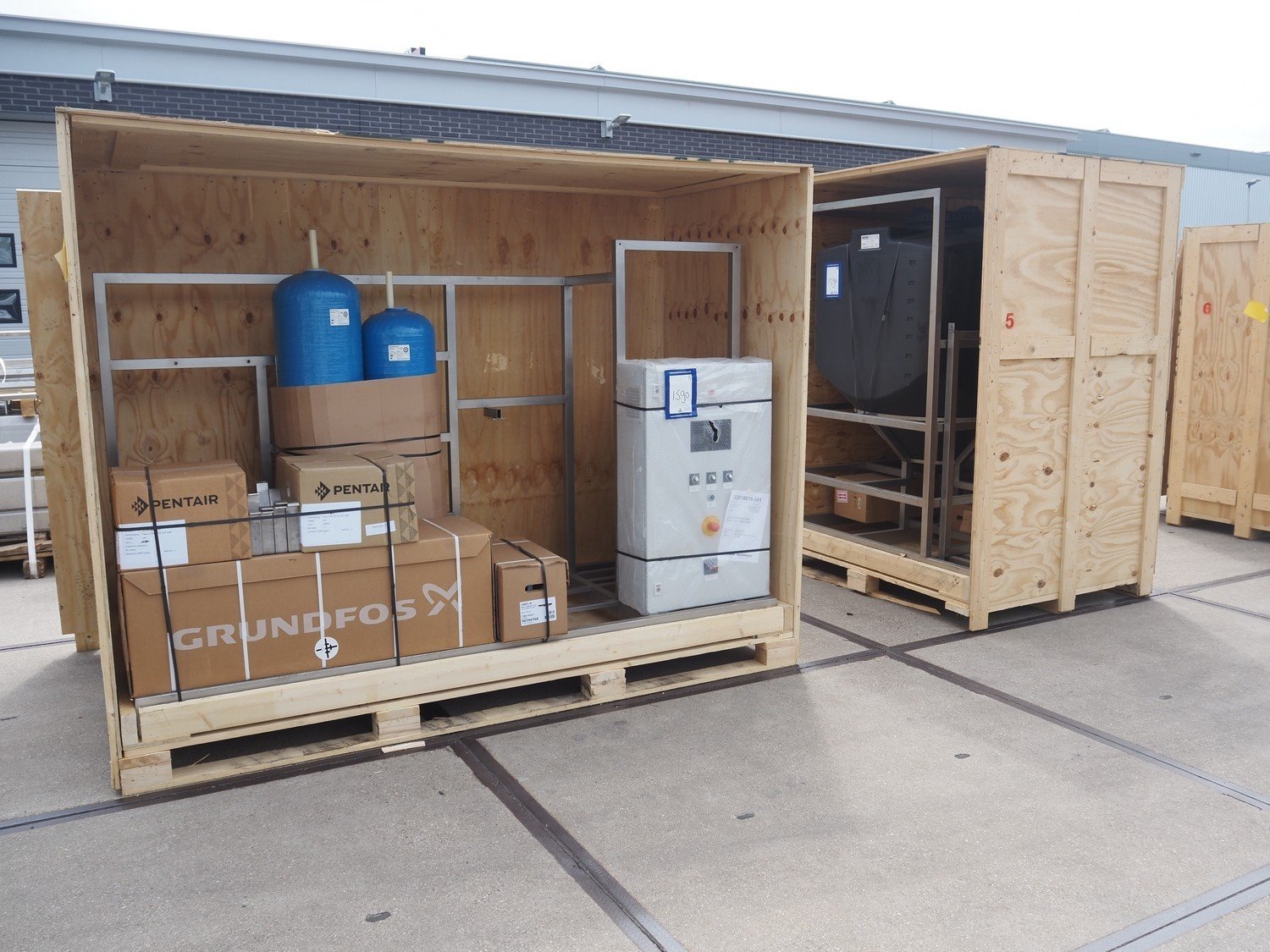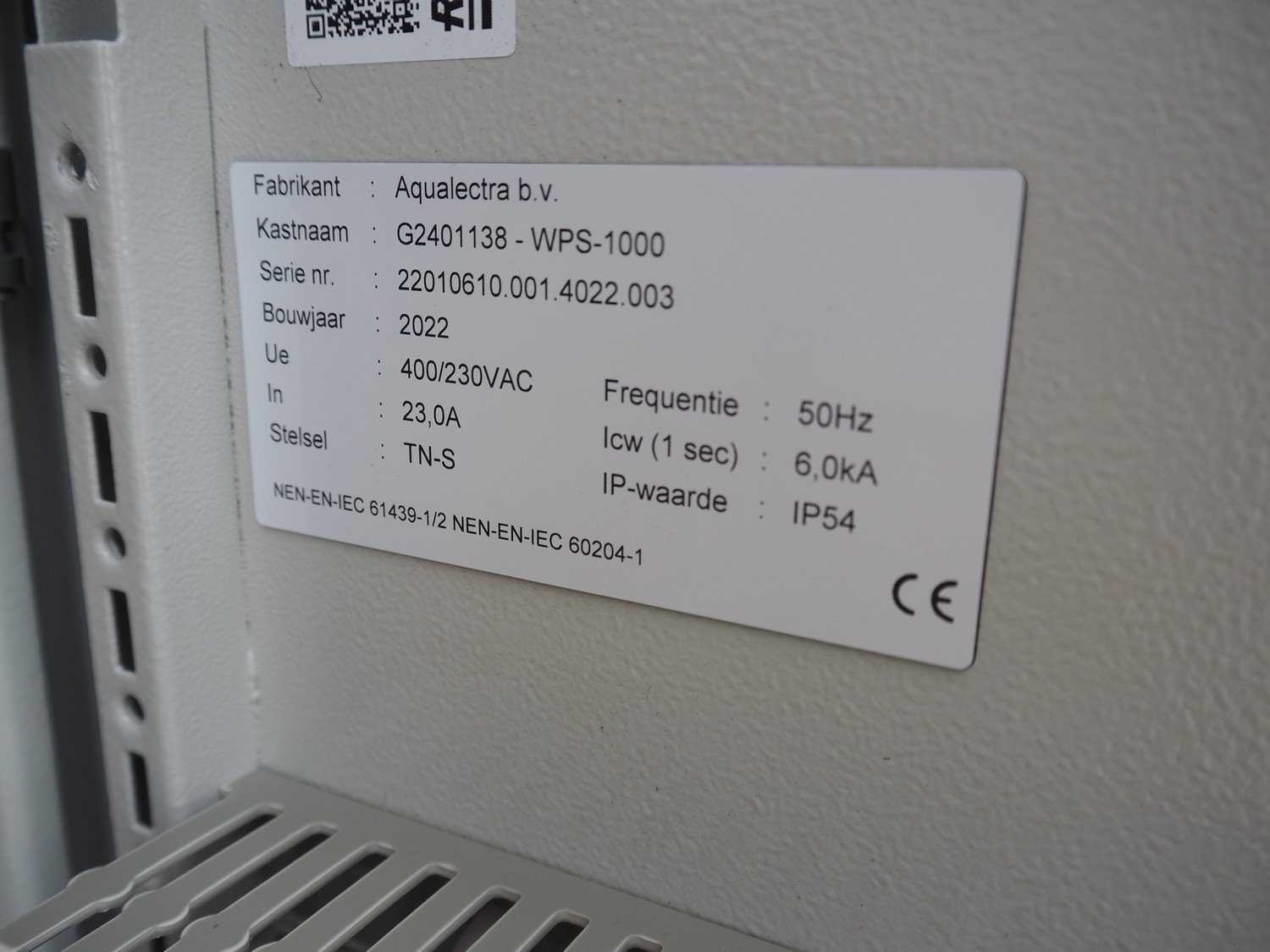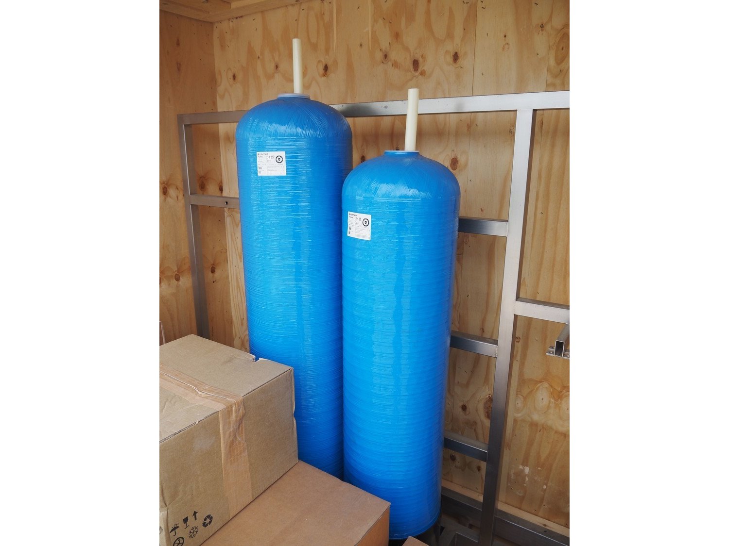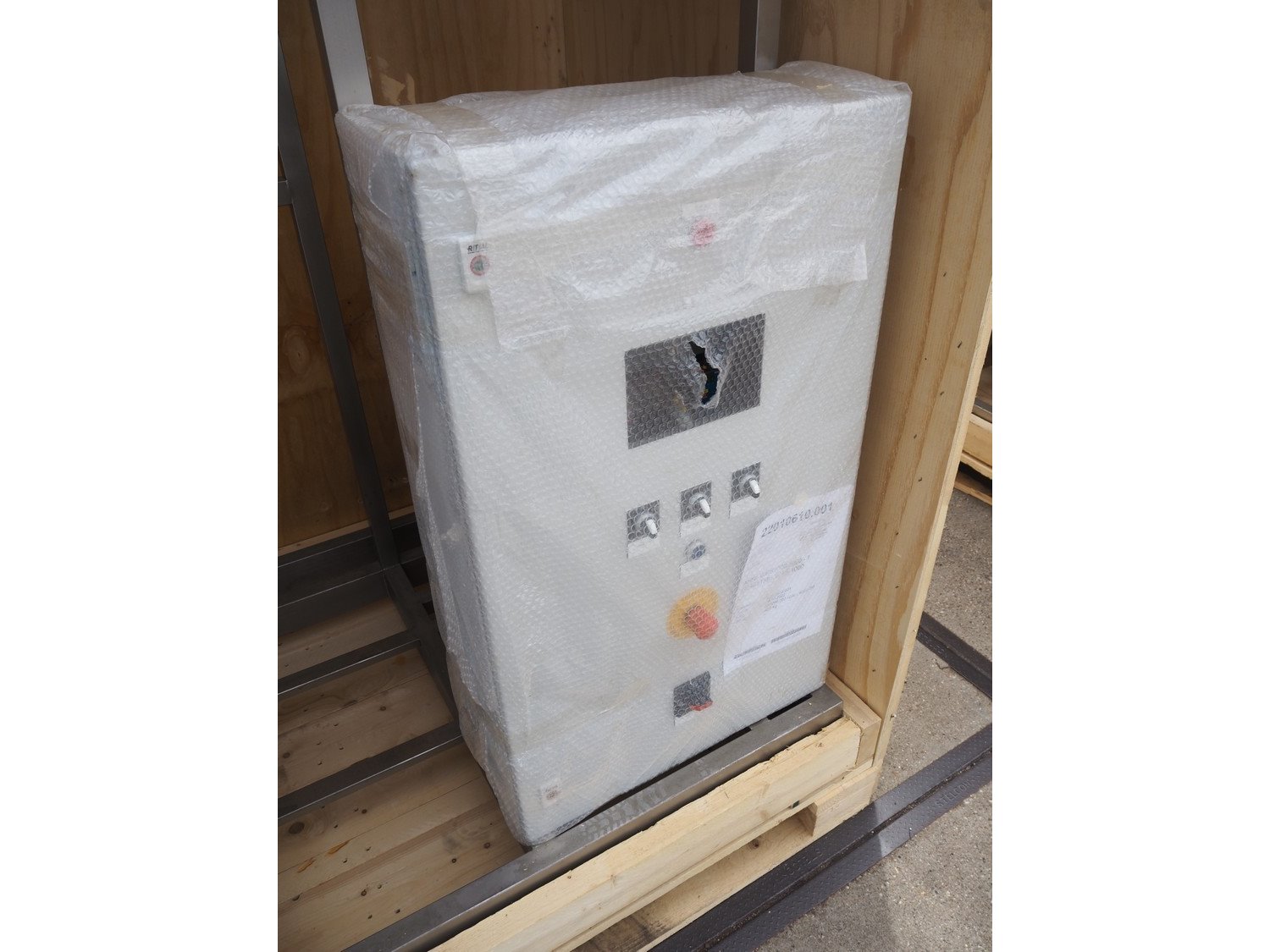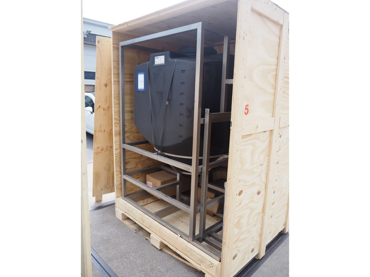Grundfos/Pentair Osmosis water system on s/s frame with plastic buffer tank on s/s frame, year of construction: 2021, 400/230 V, 50 Hz, 23 A, 6 kA, dimensions C.I.P. installation: 2600 mm x 1100 mm x 1650 mm and dimensions buffer tank: 1500 mm x 1200 mm x 1950 mm.