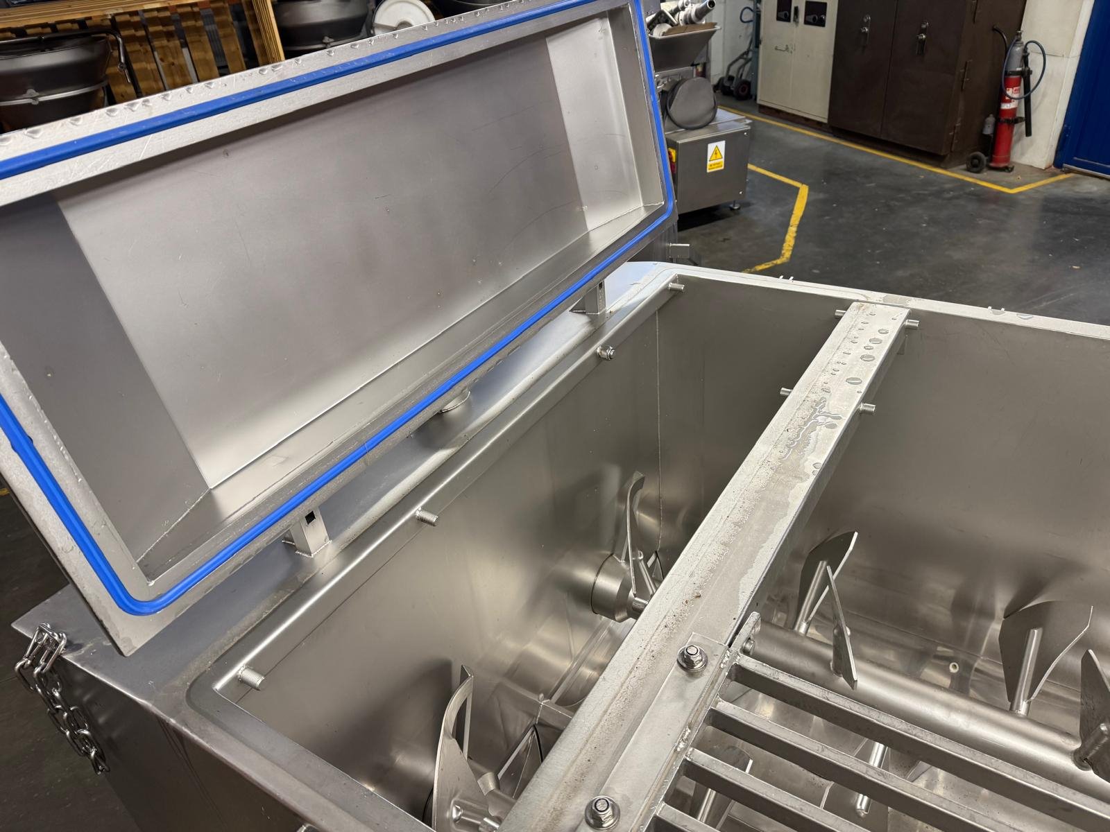 Alco Food Machines GmbH double paddle mixer with cooling injection, model: AMP 1600, 15 kW, dimensions: 2800 mm x 1600 mm x 2100 mm.