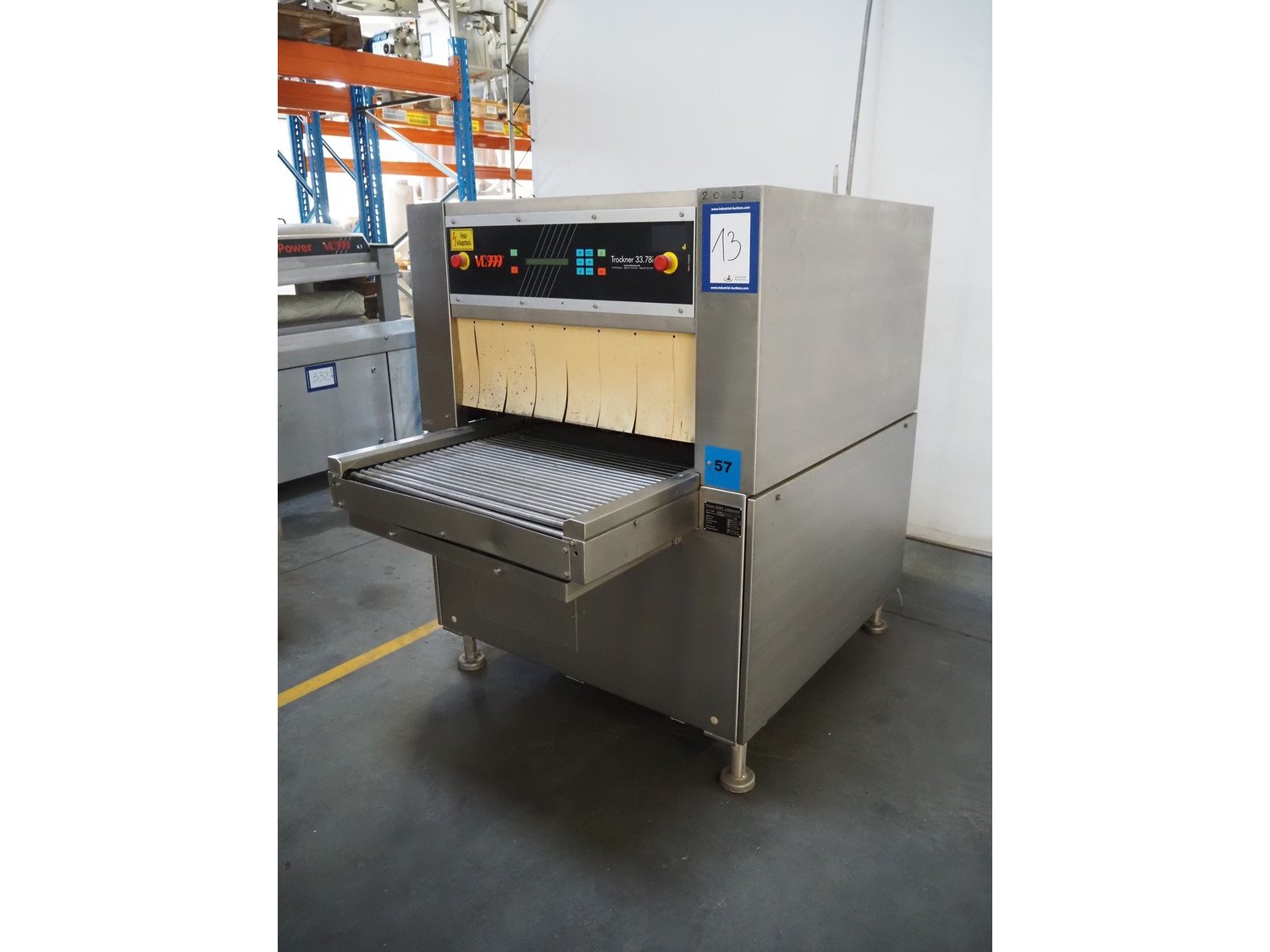 Inauen Maschinen AG drying tunnel, type: VC999/33.78 i, machine number: 9404073, 400 V, 3 Ph, 50 Hz, 20 A, 12 kW, pressure: 6 bar, s/s rollers, roller width: 780 mm, clearance: 780 mm x 350 mm, s/s mesh belt, belt width: 780 mm, total dimensions: 1720 mm x 1200 mm x 1680 mm.
