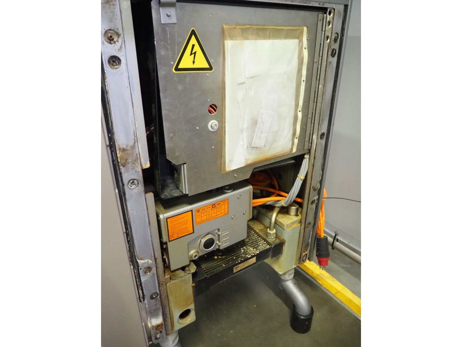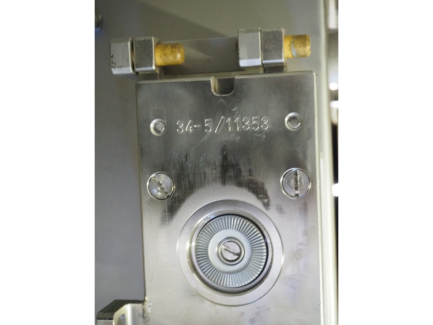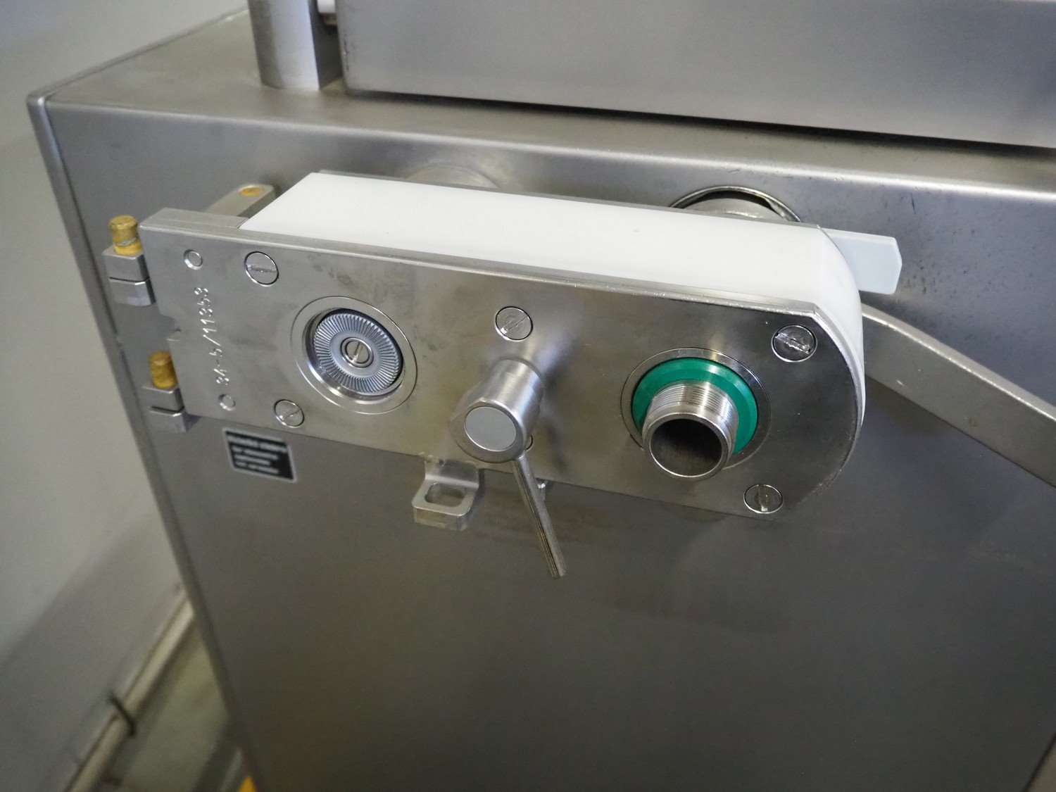 Handtmann vacuum filling machine with linking attachment, type: VF100, number: 13950, year of construction: 2001, 400 V, 50 Hz, 12.6 A, 5 kW, type linker: 34-5, number linker: 11353, dimensions: 1000 mm x 900 mm x 1900 mm.