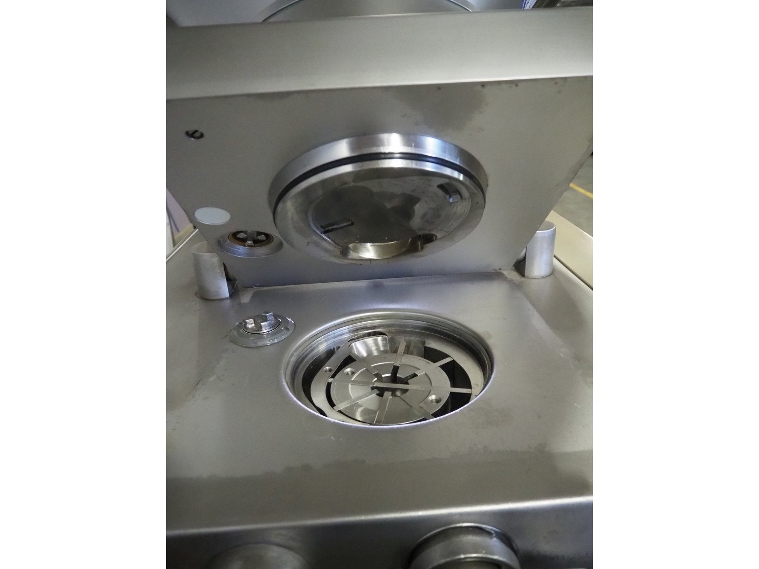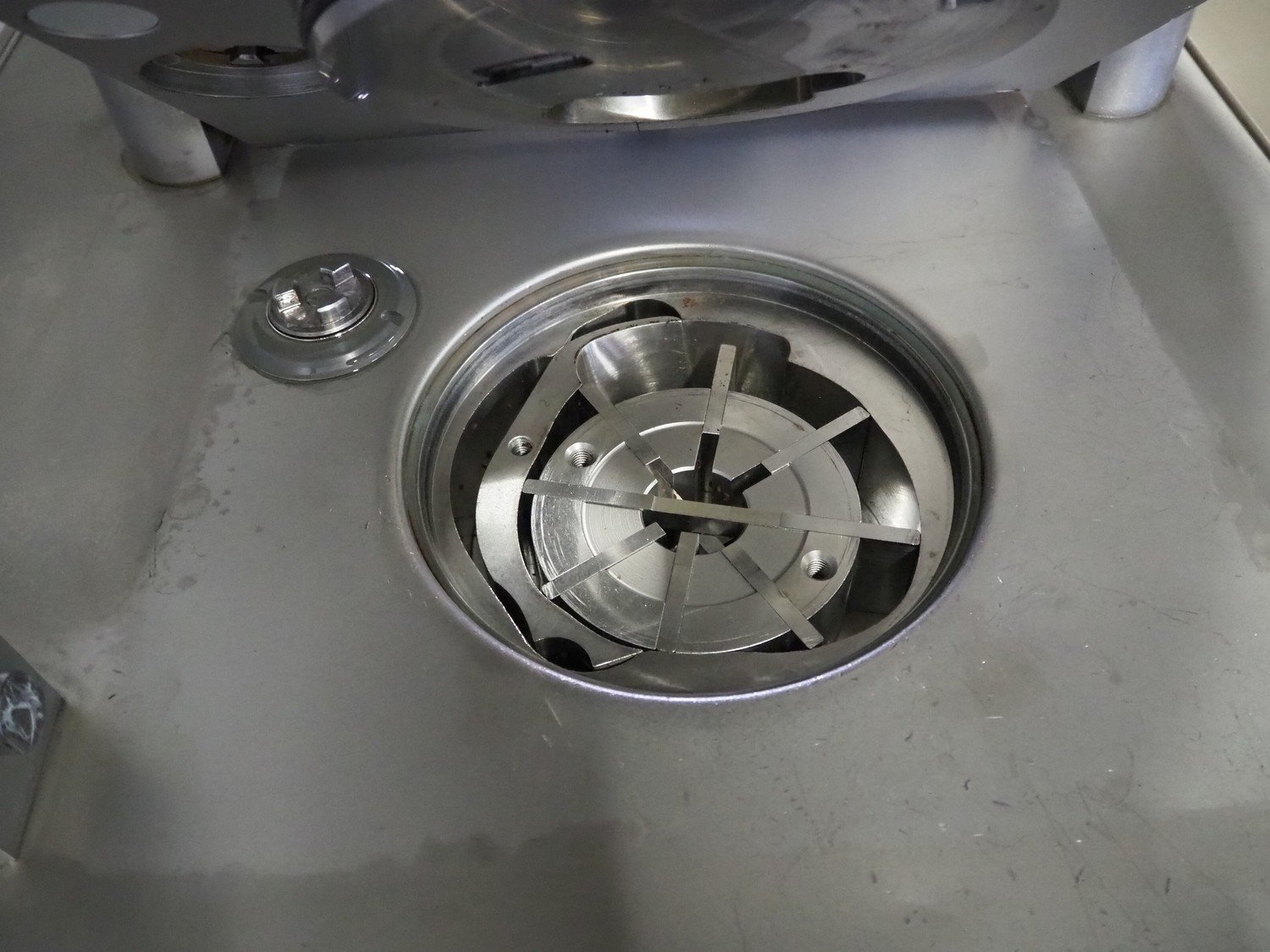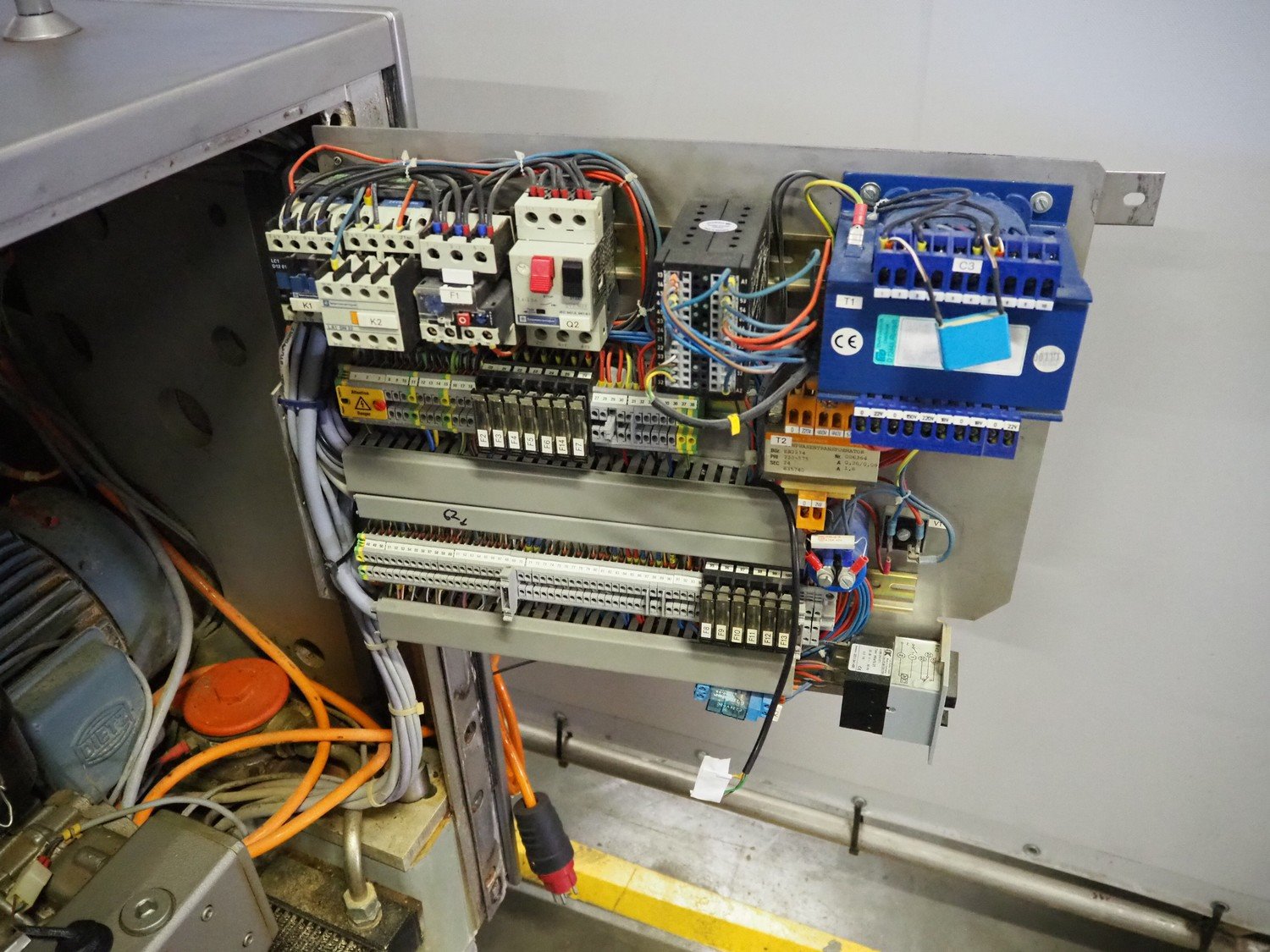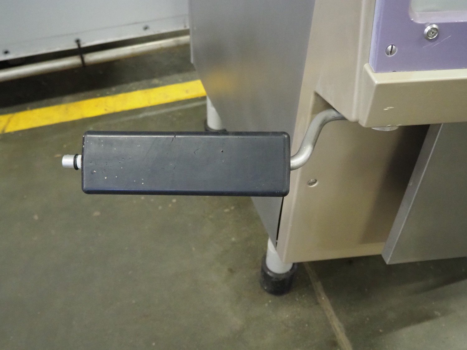 Handtmann vacuum filling machine with linking attachment, type: VF100, number: 13950, year of construction: 2001, 400 V, 50 Hz, 12.6 A, 5 kW, type linker: 34-5, number linker: 11353, dimensions: 1000 mm x 900 mm x 1900 mm.