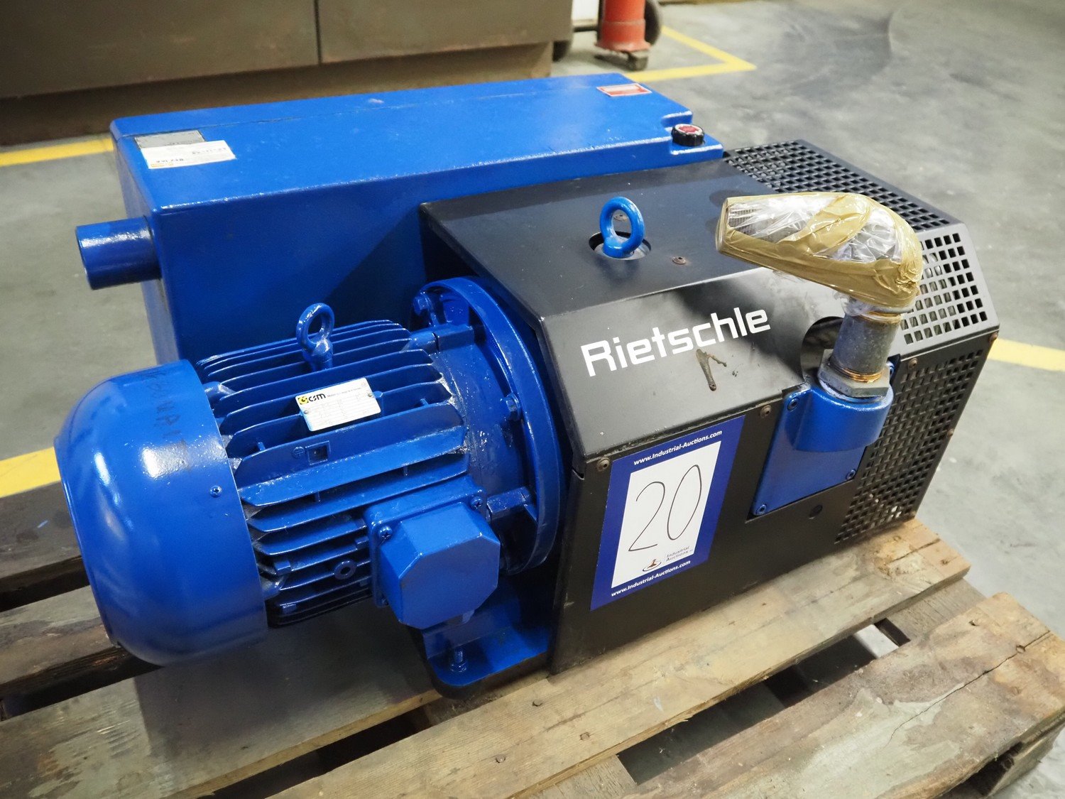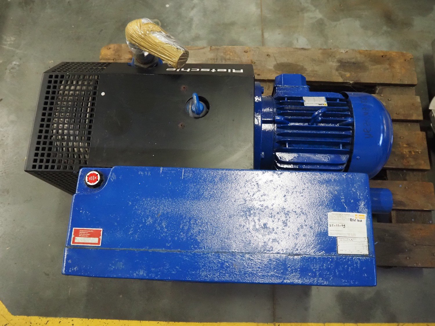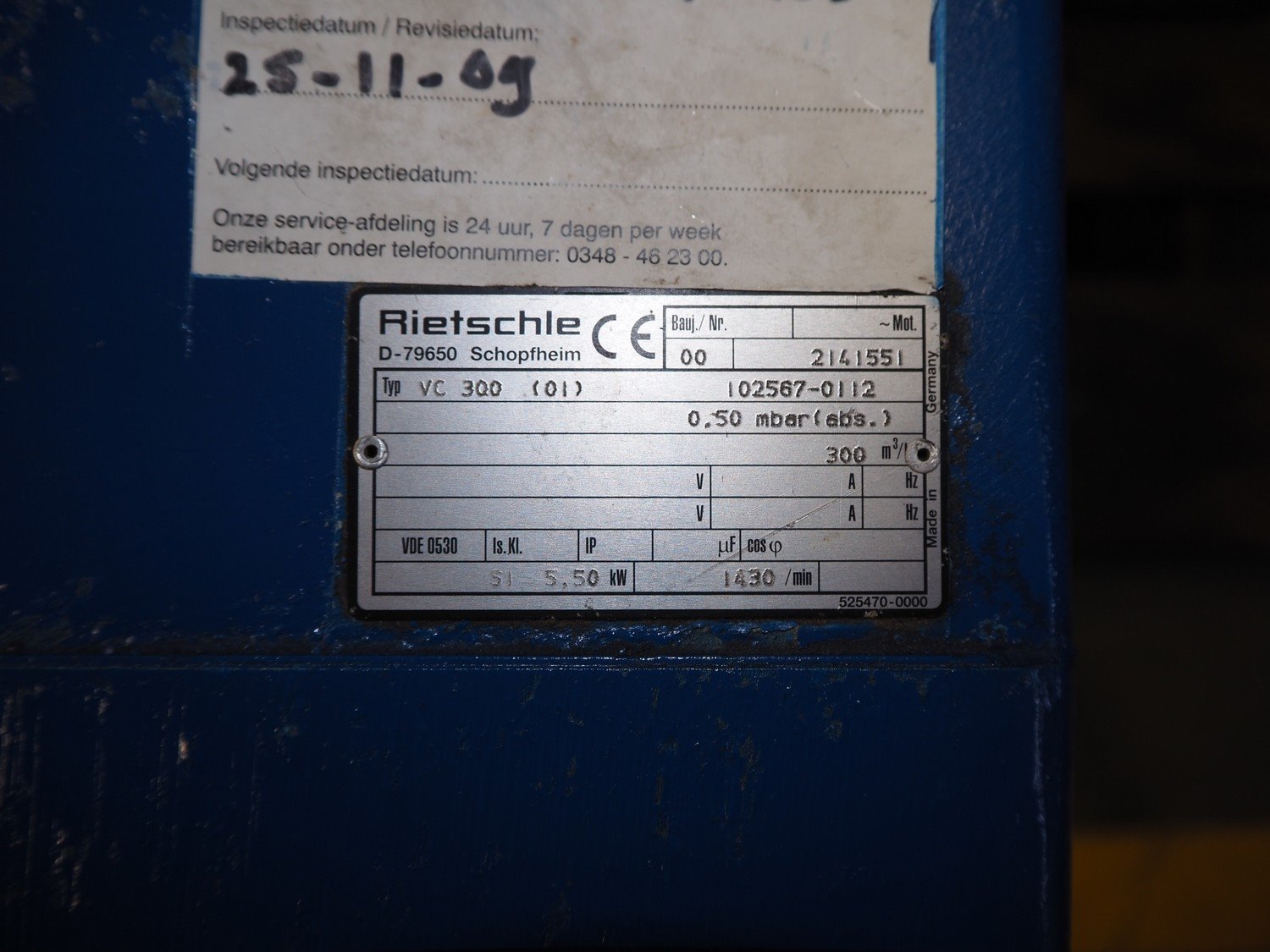Rietschle vacuum pump, type: VC 300 (01), number: 2141551, year of construction: 2000, capacity: 300 m³ per hour, dimensions: 910 mm x 700 mm x 420 mm.