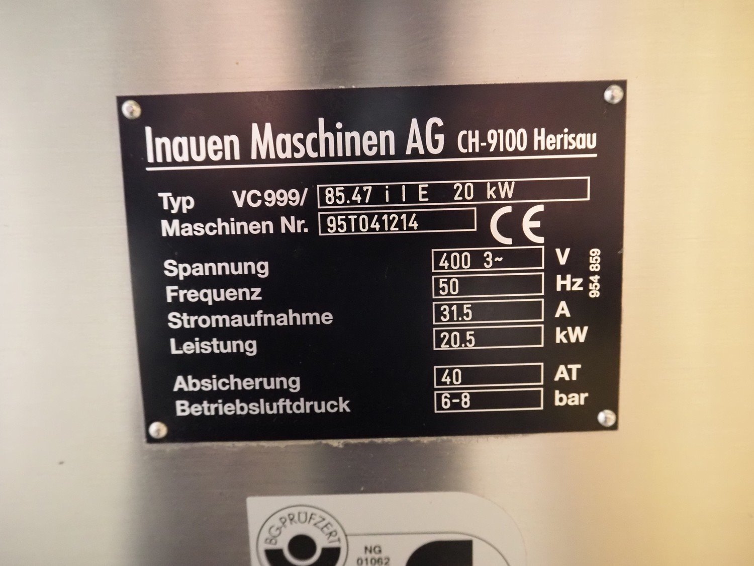 Inauen Maschinen AG shrink tunnel, type: VC999/ 85.47 i l E 20 kW, machine number: 95T041214, 400 V, 3 Ph, 50 Hz, 31.5 A, 20.5 kW, clearance: 480 mm x 270 mm, inside dimensions: (2x) Ø 200 mm, total dimensions: 1350 mm x 1000 mm x 1400 mm.