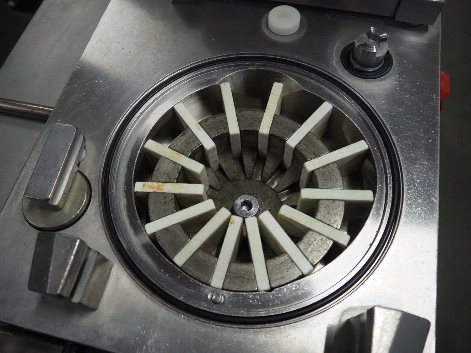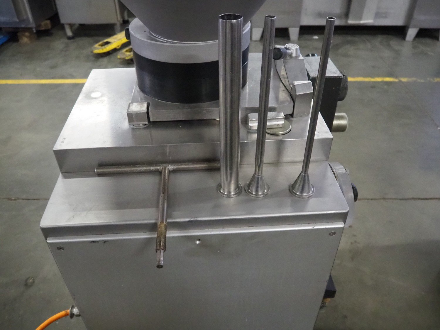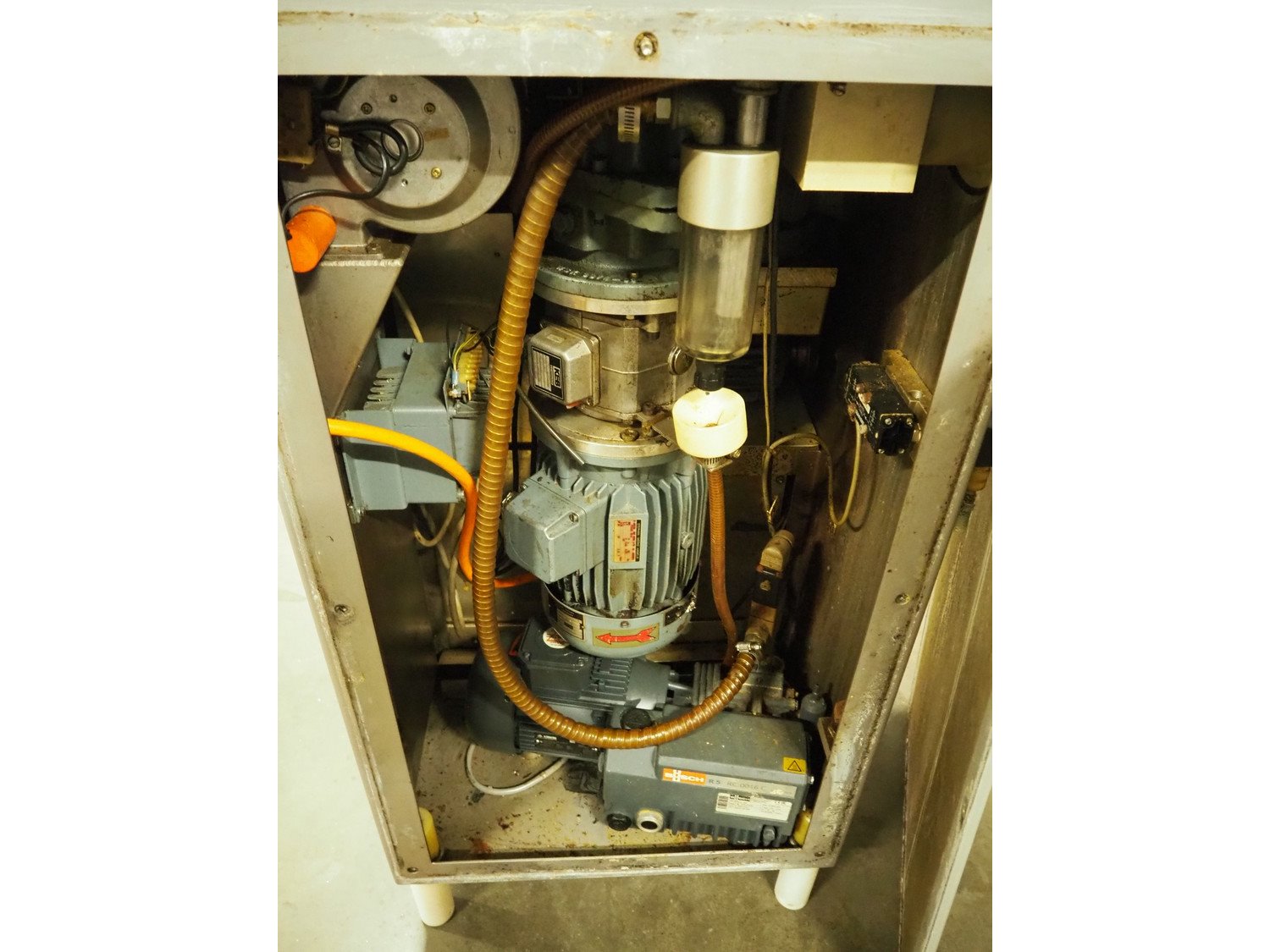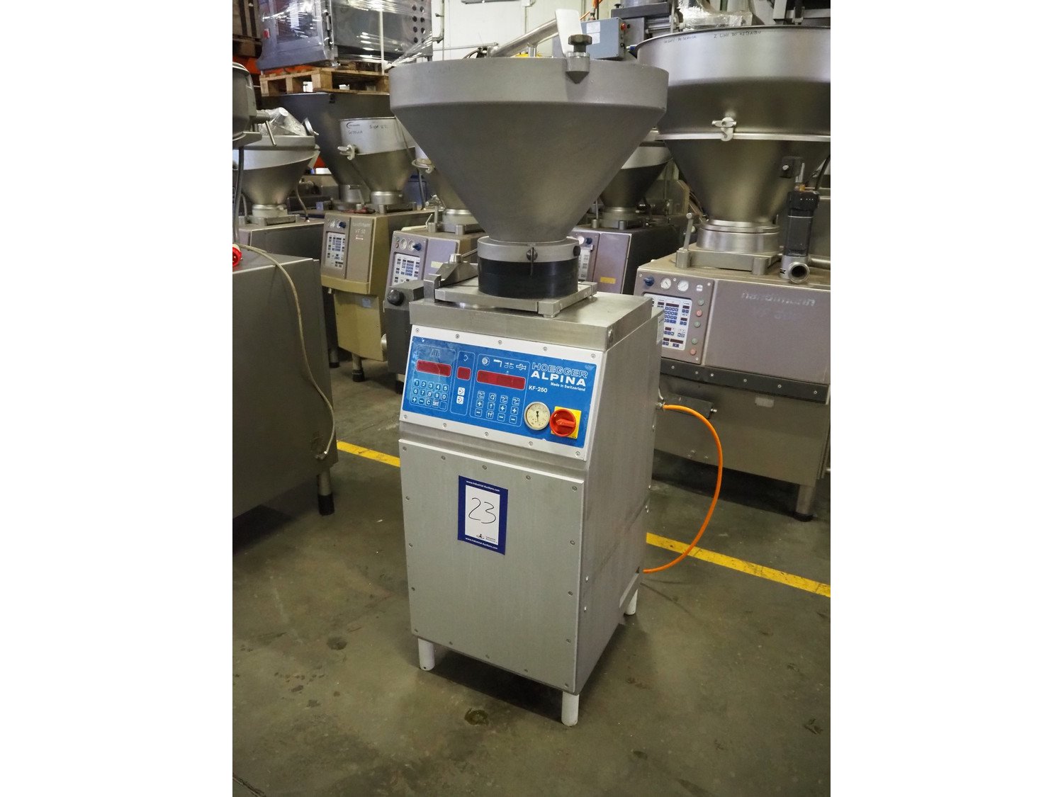 Hoegger Alpina vacuum filling machine, type: KF-250, machine number: 829011, 380 V, 4 kW, Busch vacuum pump, type: RC 0016 C 303, dimensions: 700 mm x 650 mm x 1800 mm.