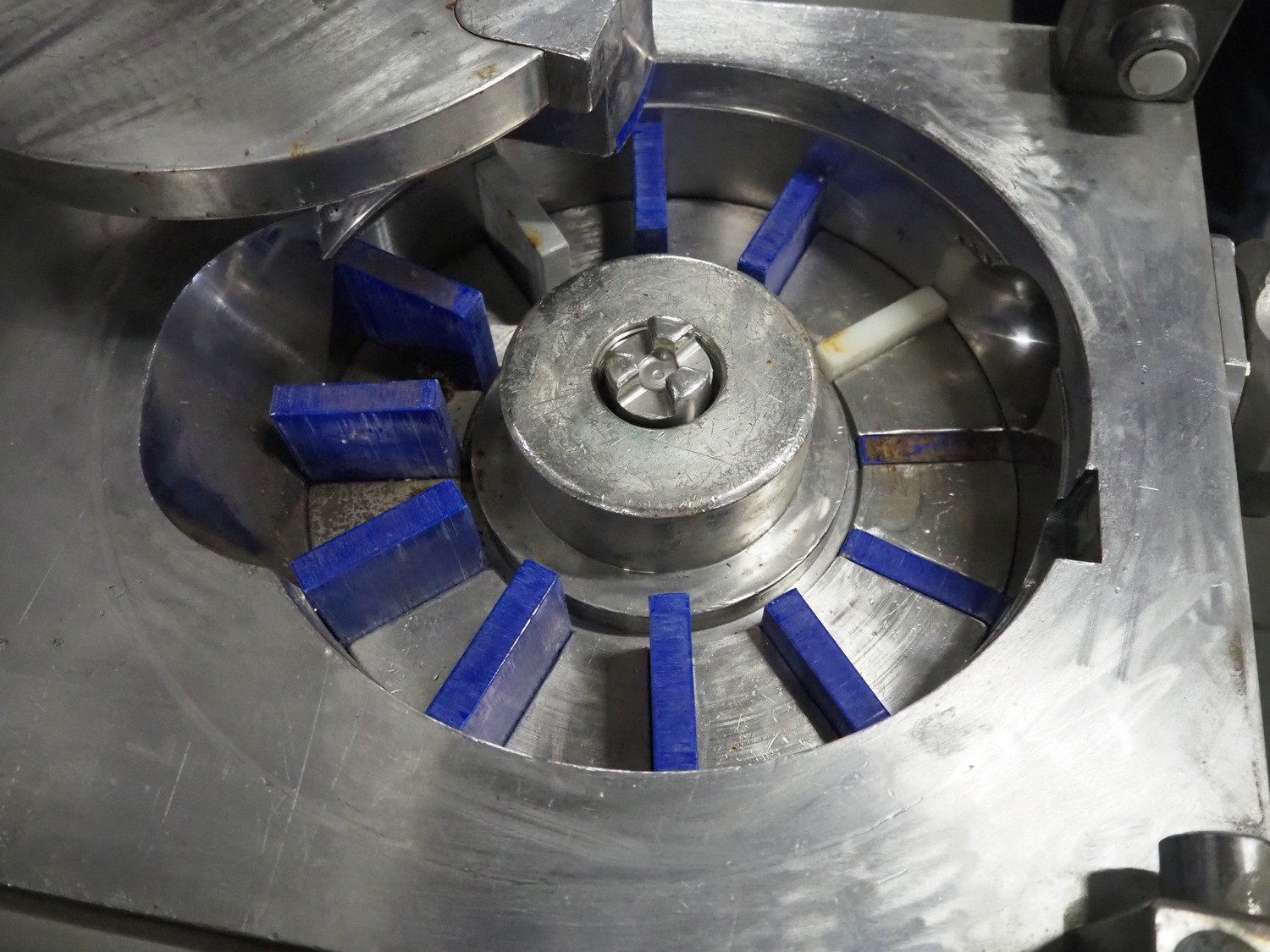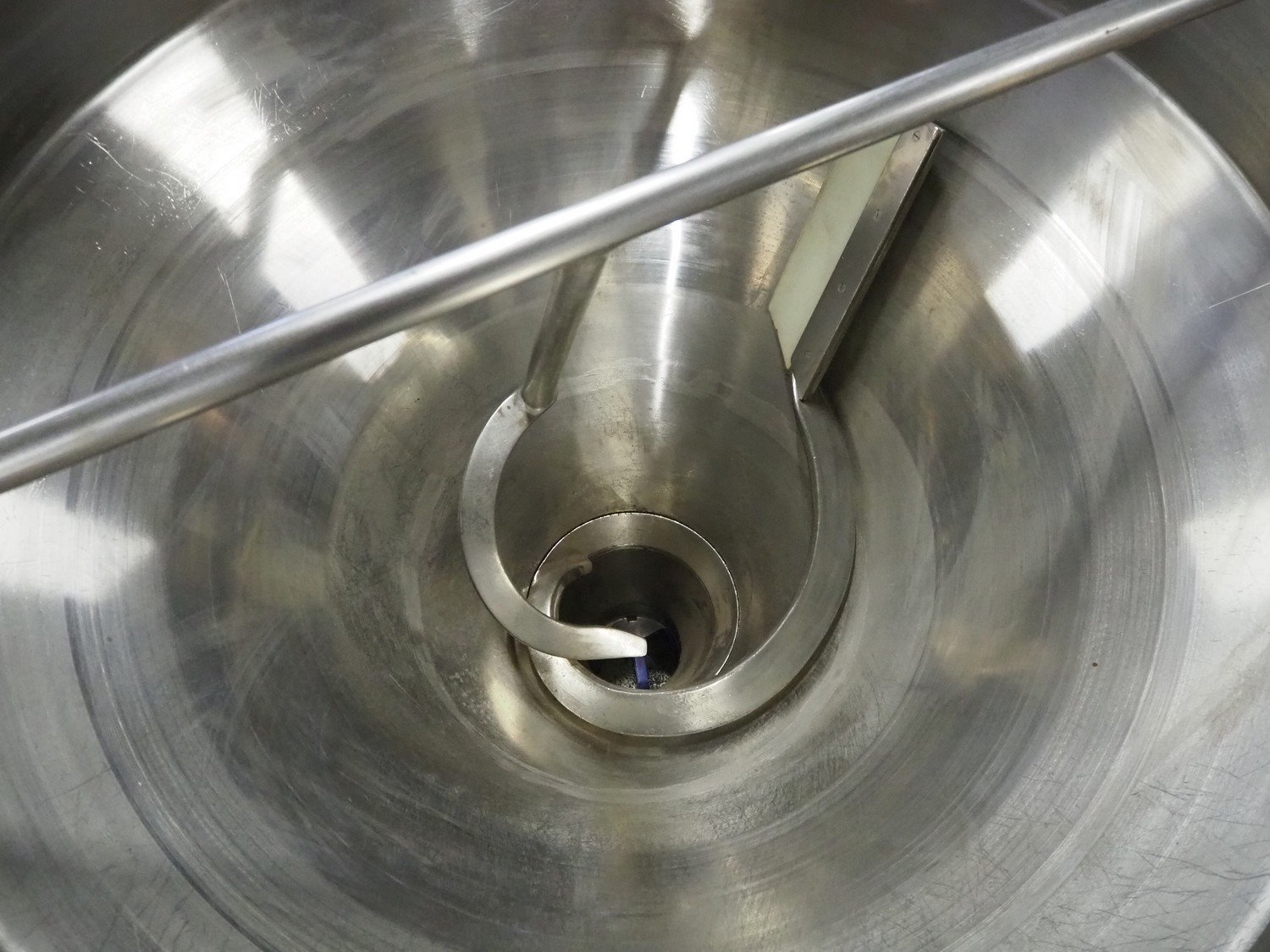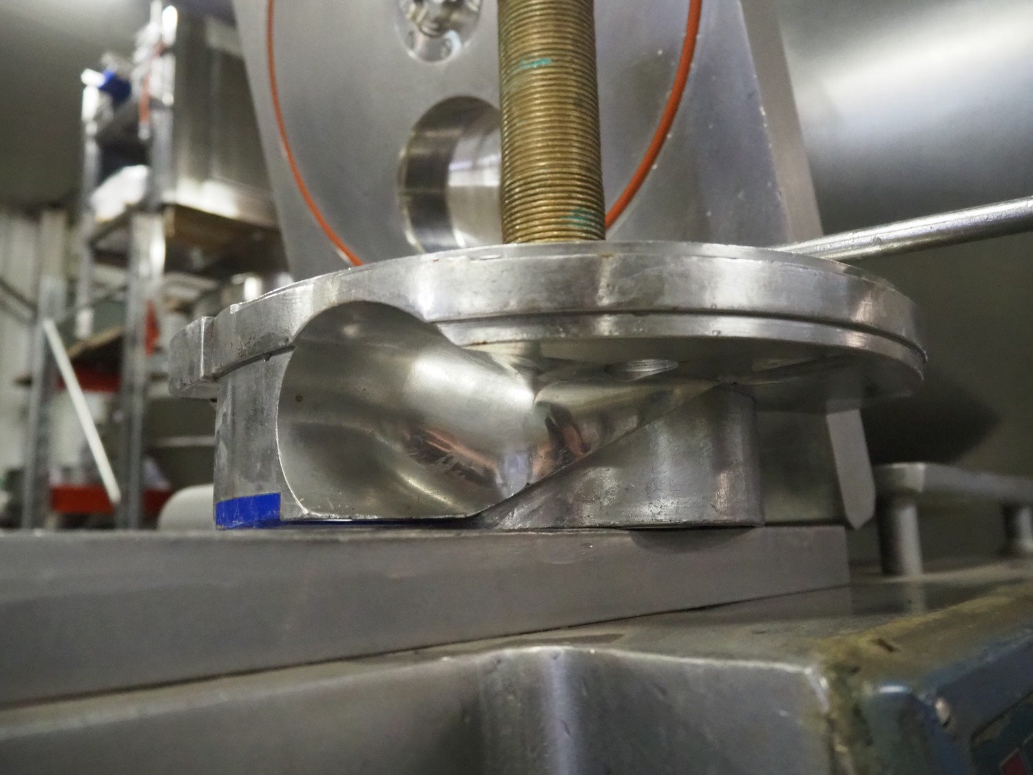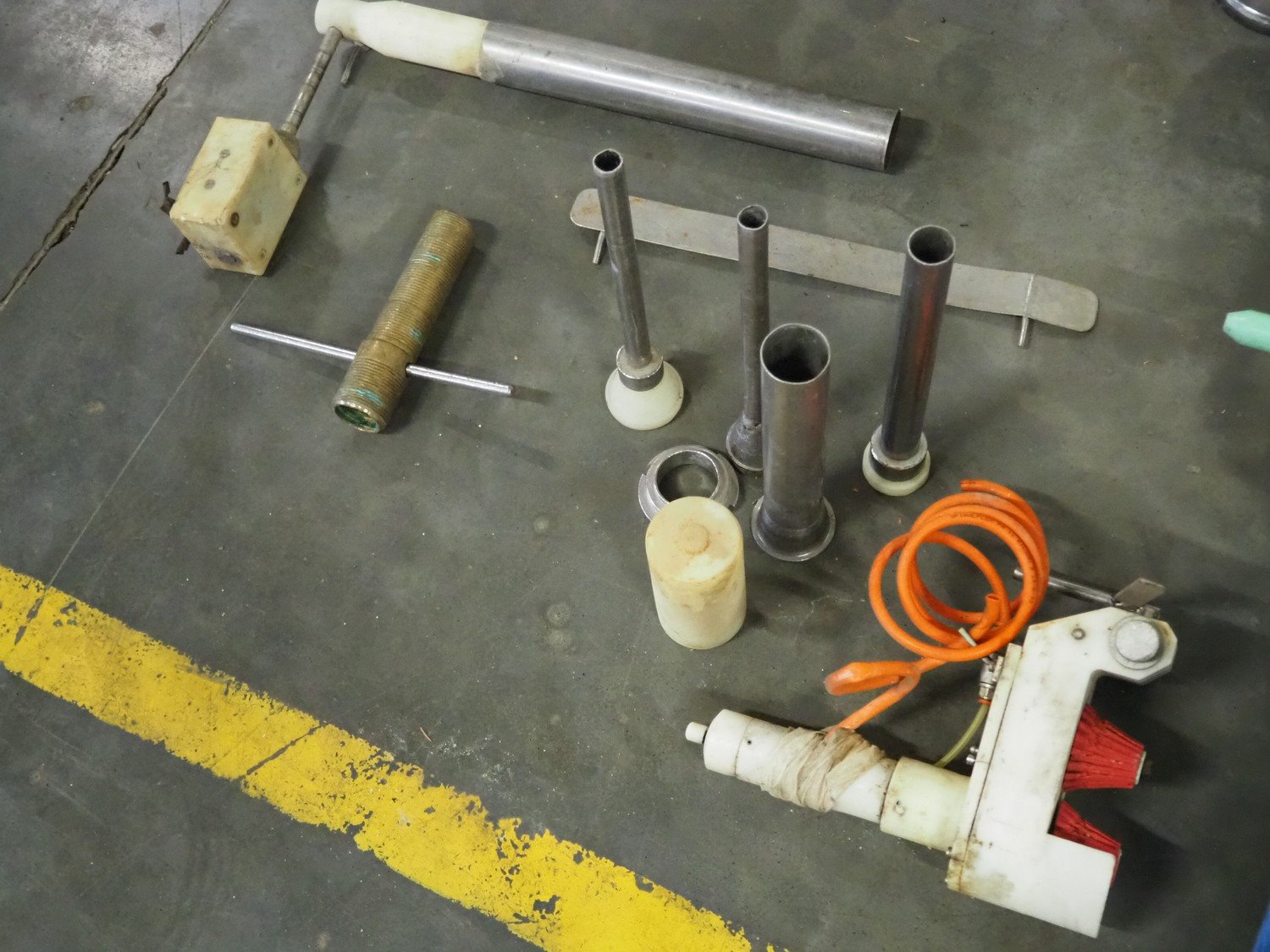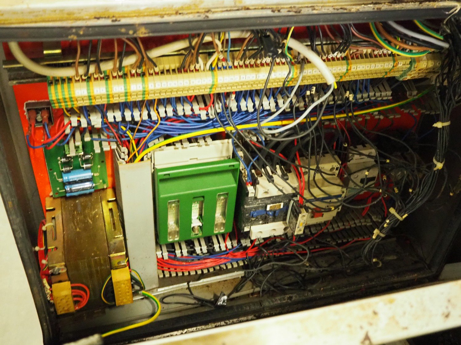 Risco vacuum filling machine with lifter for 200 liter meat bins, type: RS 5001, serial number: C194005, year of construction: 1995, 380 V, 3 Ph, 50 Hz, 35 A, 12 kW, dimensions: 2200 mm x 1100 mm x 2300 mm. With case spooling device among others.