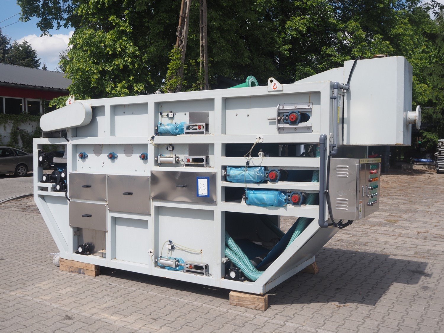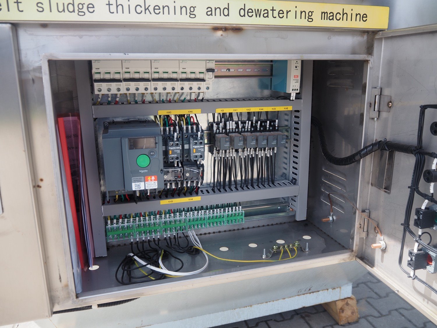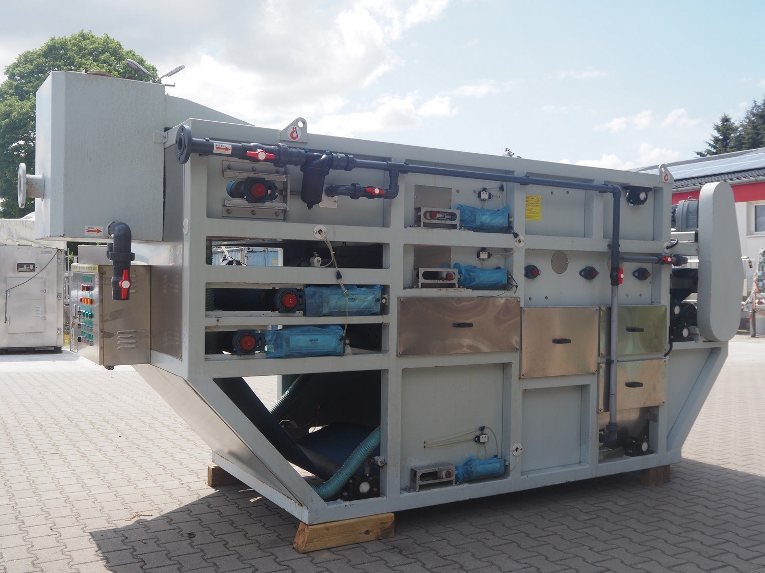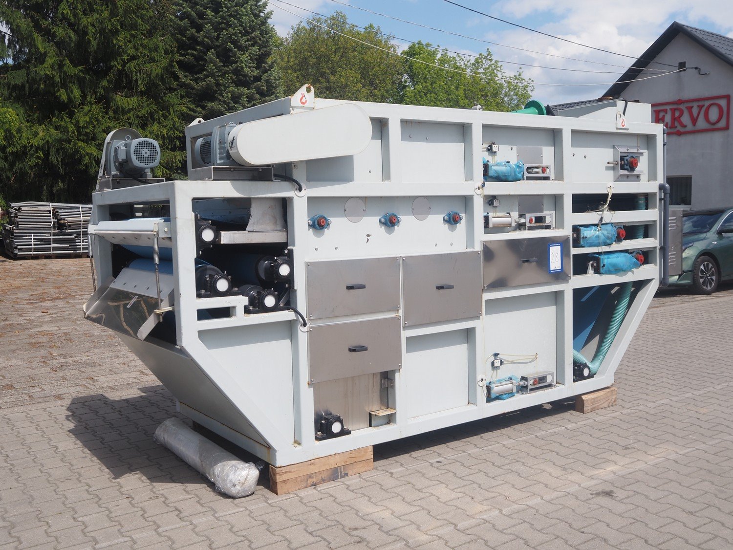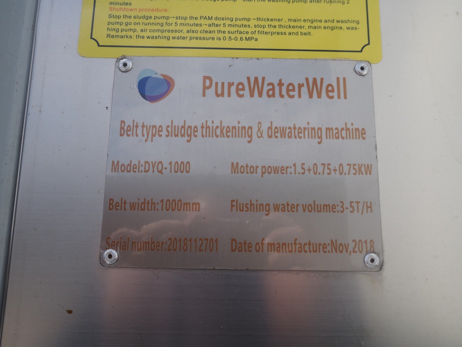 PureWaterWell belt type sludge thickening & dewatering machine, model: DYQ-1000, serial number: 2018112701, year of construction: November 2018, 1.5+0.75+0.75, capacity: 3-5 ton per hour, plastic mesh belts, belt width: 1000 mm, total dimensions: 4600 mm x 1600 mm x 2250 mm.