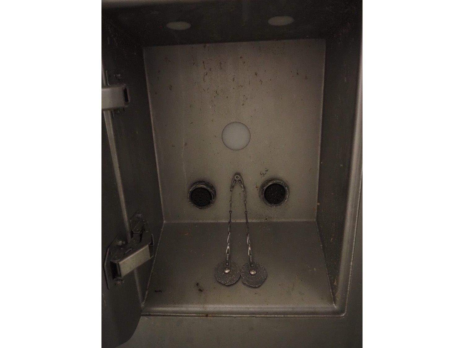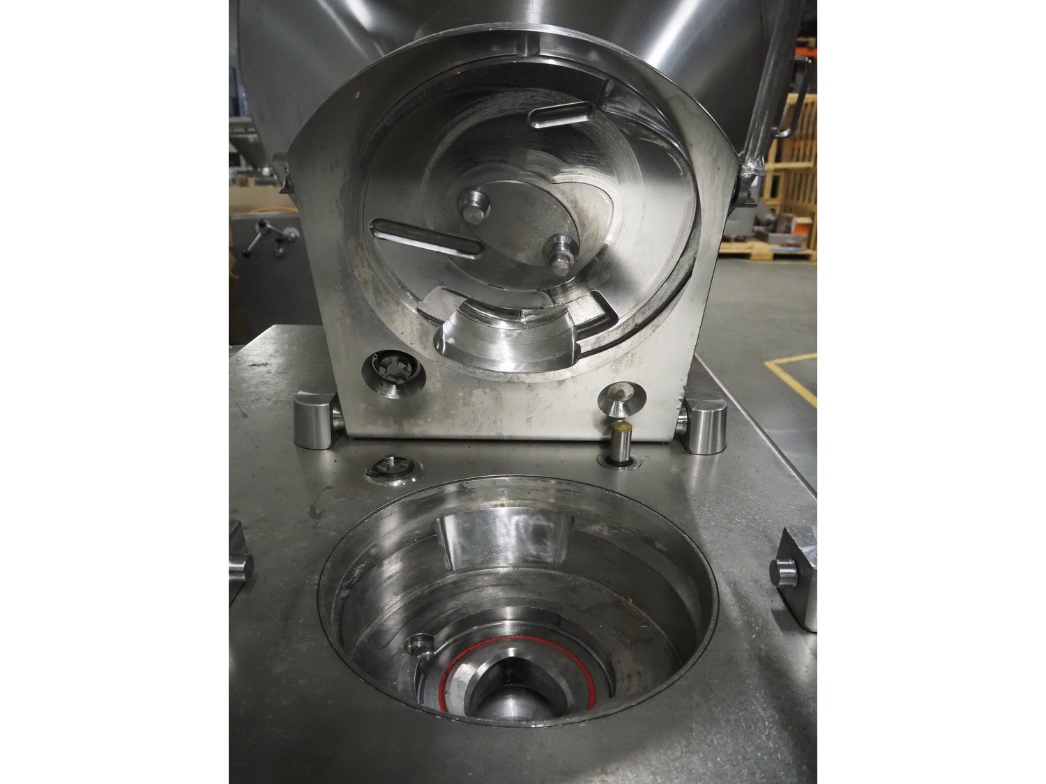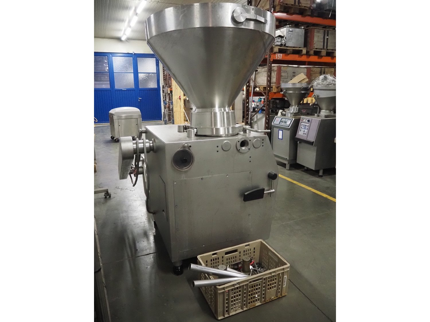 Rex Technologie vacuum filling machine with lifter for 200 liter meat bins, type: RVF 911, machine number: 9110090529, 400 V, 3 Ph, 50 Hz, 44 A, 22 kW, dimensions: 2100 mm x 1400 mm x 2070 mm. Including crate with parts and 2 rotors with 8 and 16 vanes.