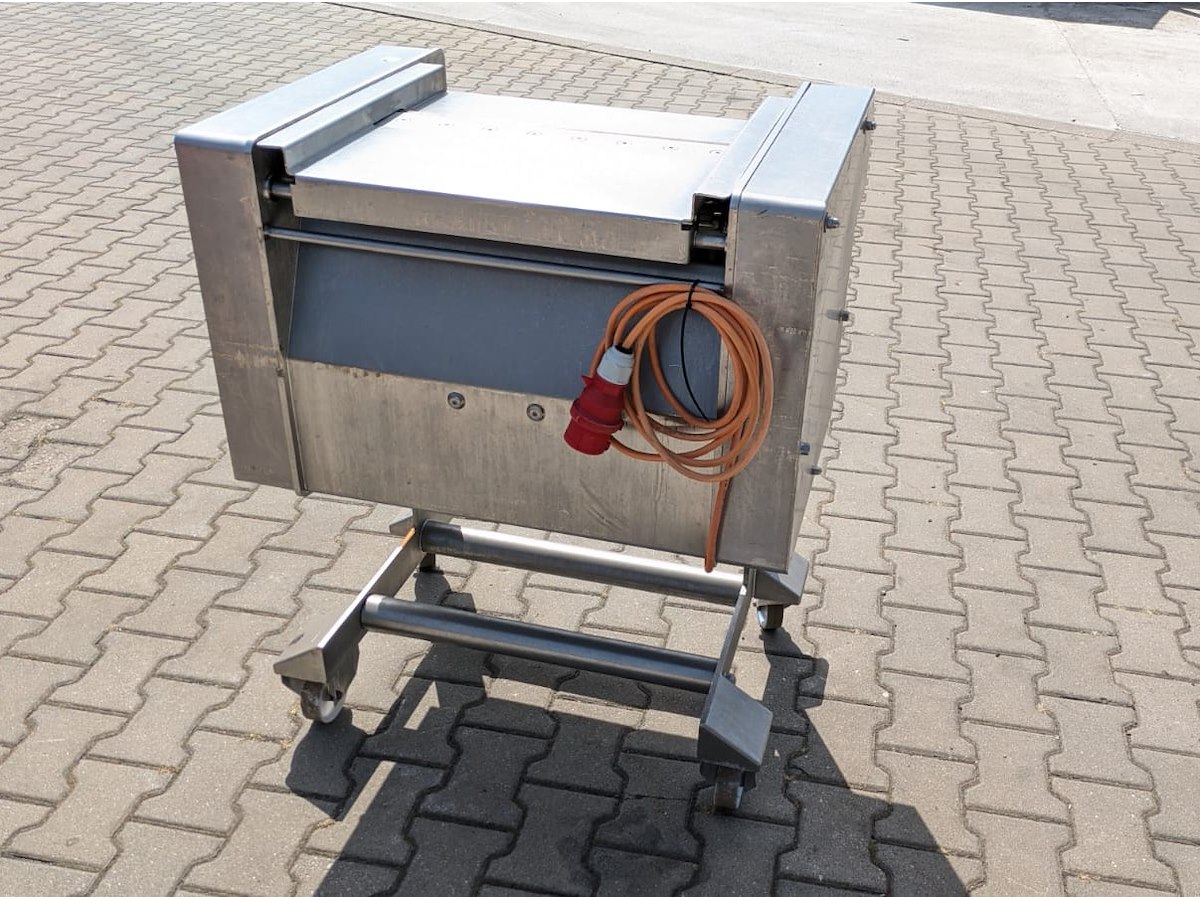 Weber mobile membrane skinning machine, type: AVI 520, number: 543, year of construction: 2002, 400V, 50Hz, 0.37 kW, weight: 220 kg, knife length: 520 mm, total dimensions: 900 mm x 620 mm x 1000 mm.