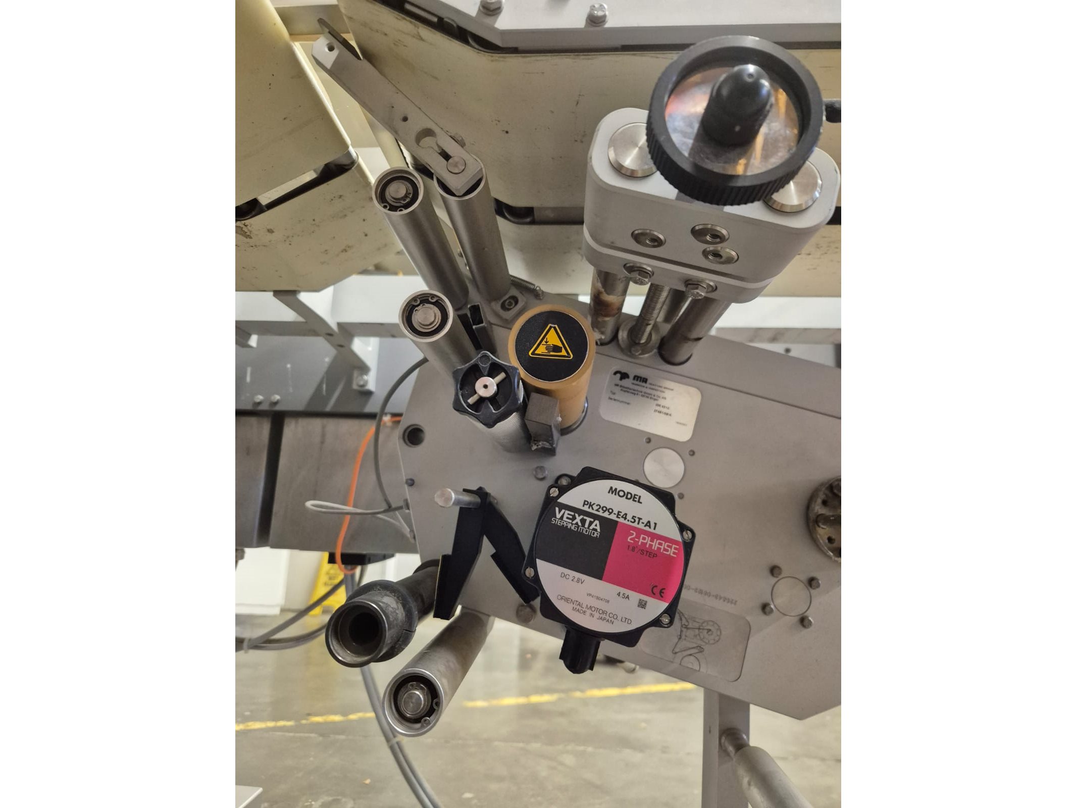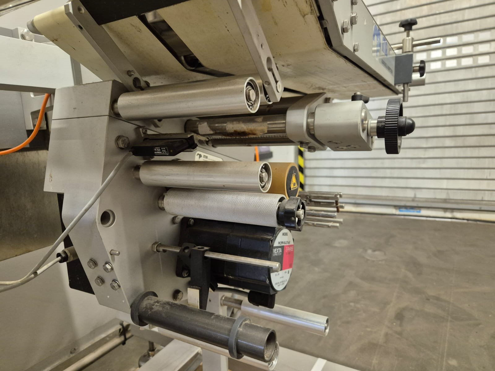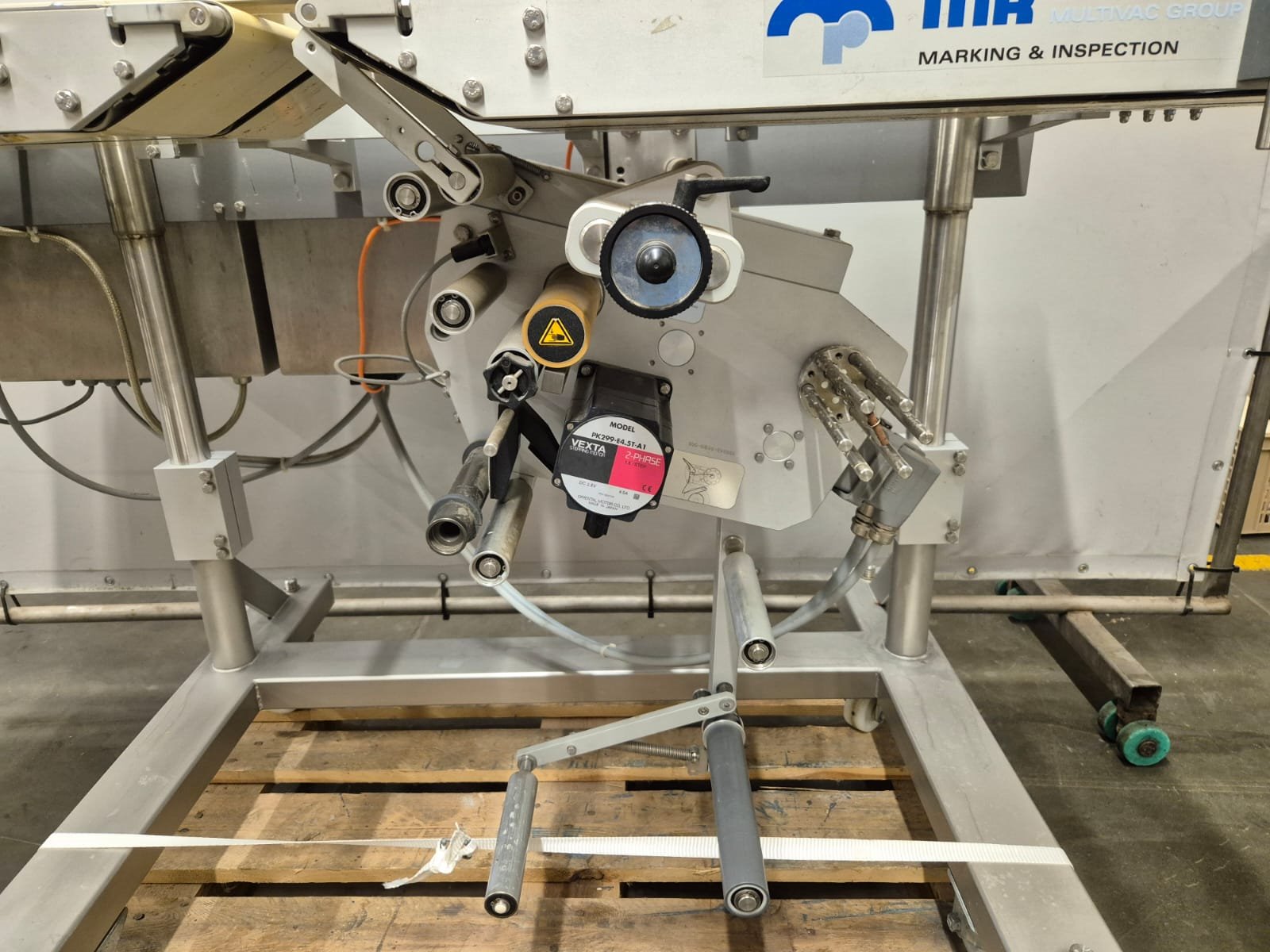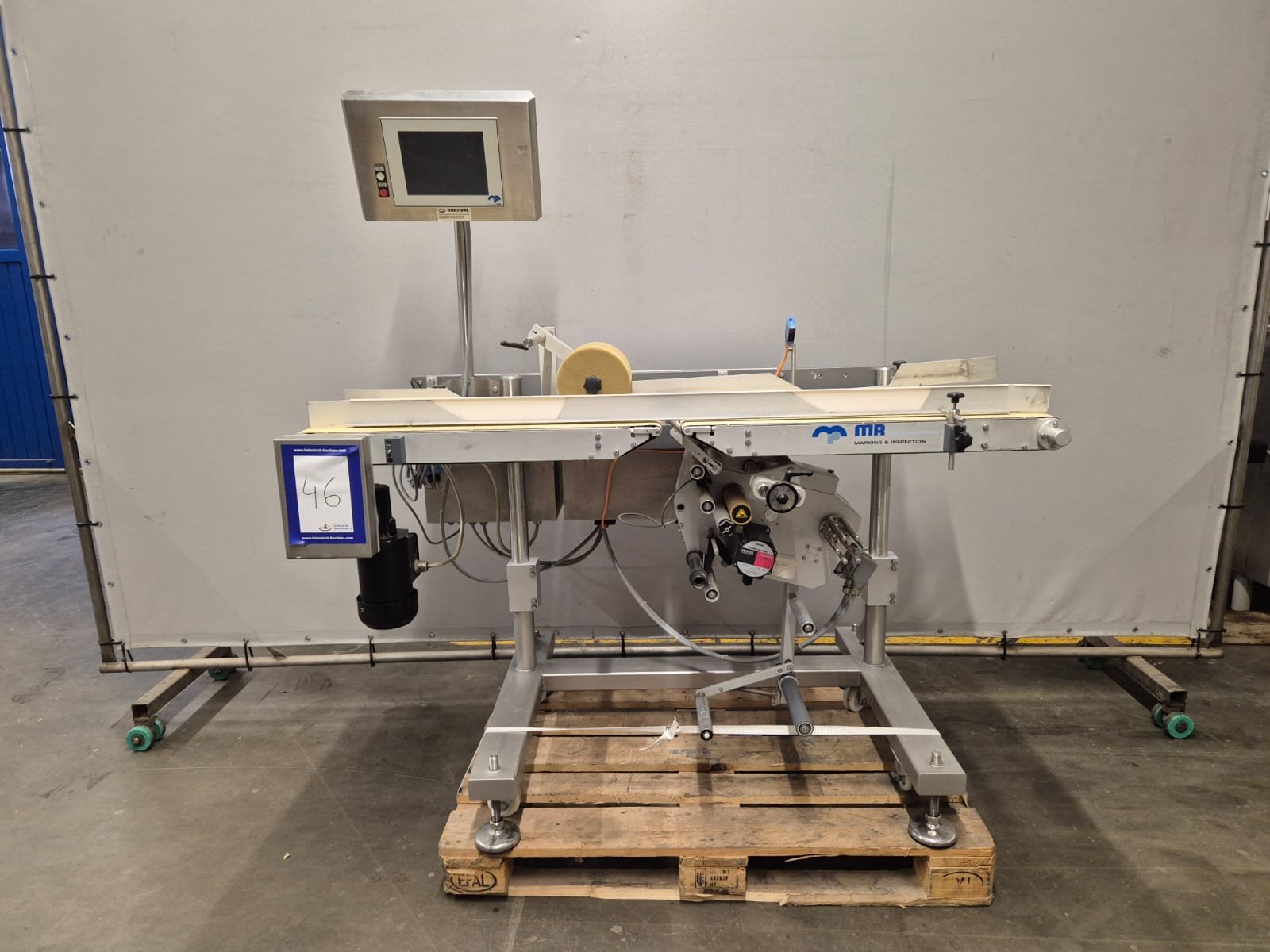 MR Etikettiertechnik GmbH & Co. KG labeller, type: MR333, number: 27481/08, model: MR333 TQ1529BS6312BD, year of construction: 2008, 230V, 50Hz, 2500 VA, dimensions: 1500 mm x 850 mm x 1750 mm.