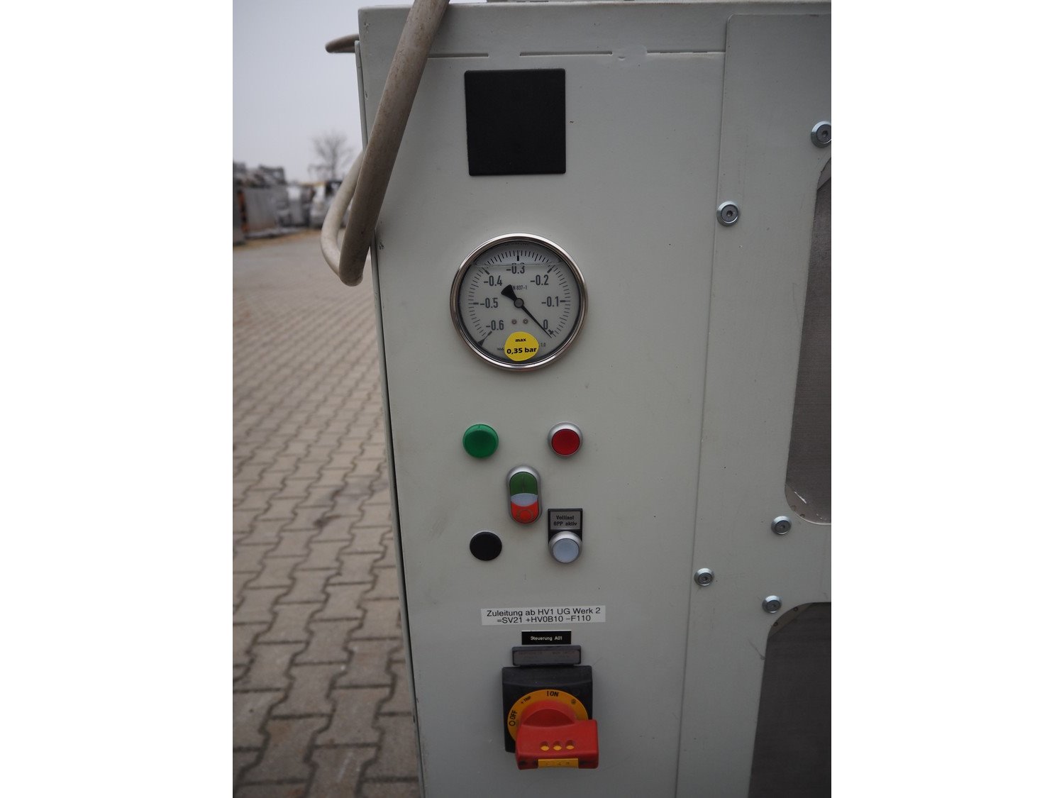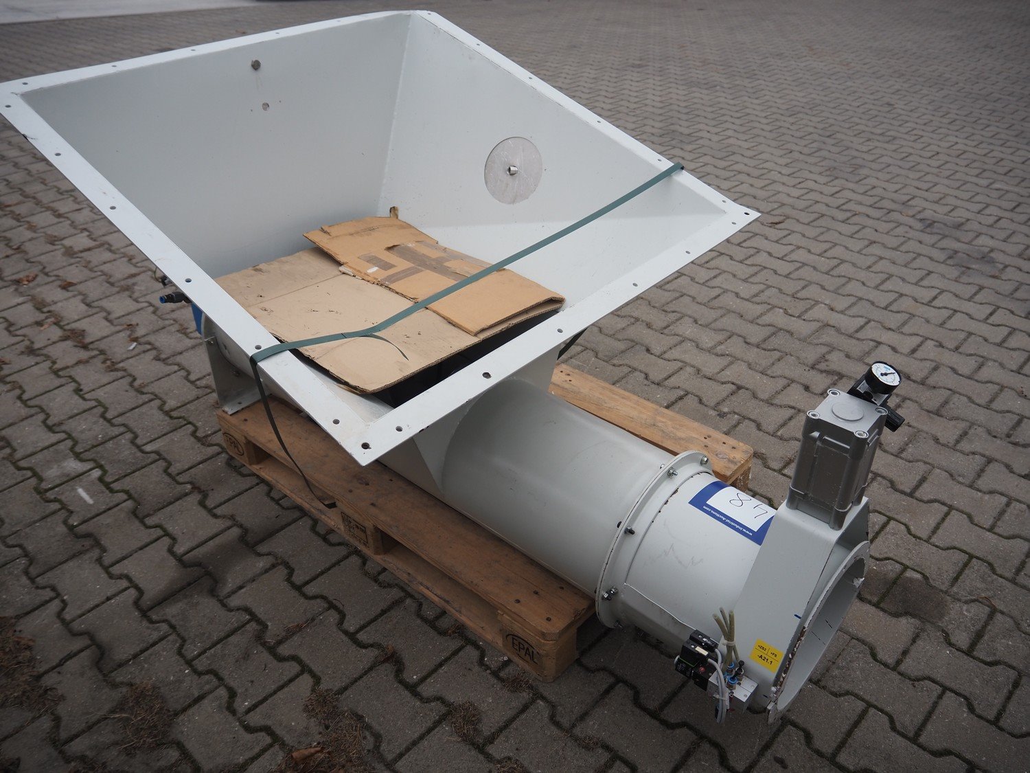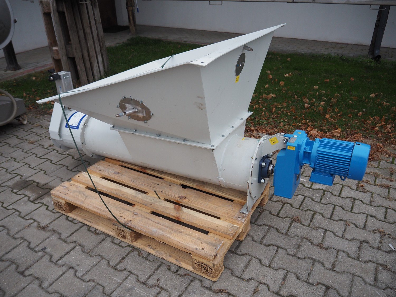 Steinemann roots blower, type: 6/13-ESS, number: 13122, year of construction: 2010, dimensions: 2380 mm x 1260 mm x 1750 mm. With infeed screw on pallet, dimensions: 2200 mm x 800 mm x 1100 mm.