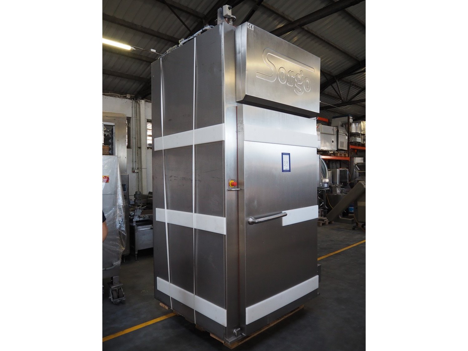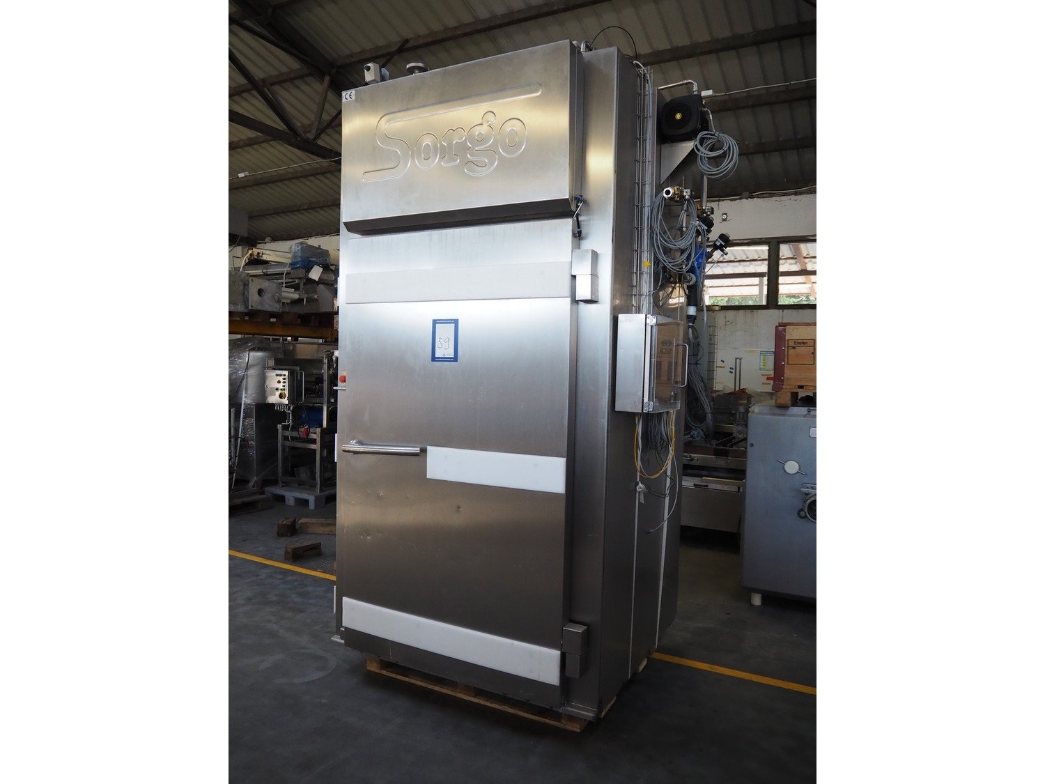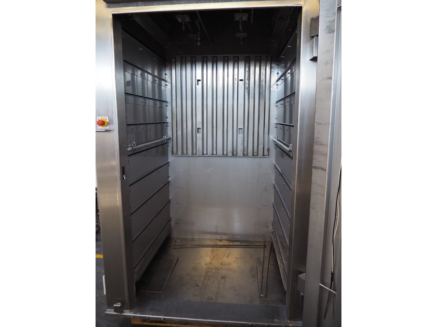 Sorgo cooking chamber with cleaning system, inside dimensions: 1300 mm x 1200 mm x 2200 mm, total dimensions: 1700 mm x 1300 mm x 3300 mm.