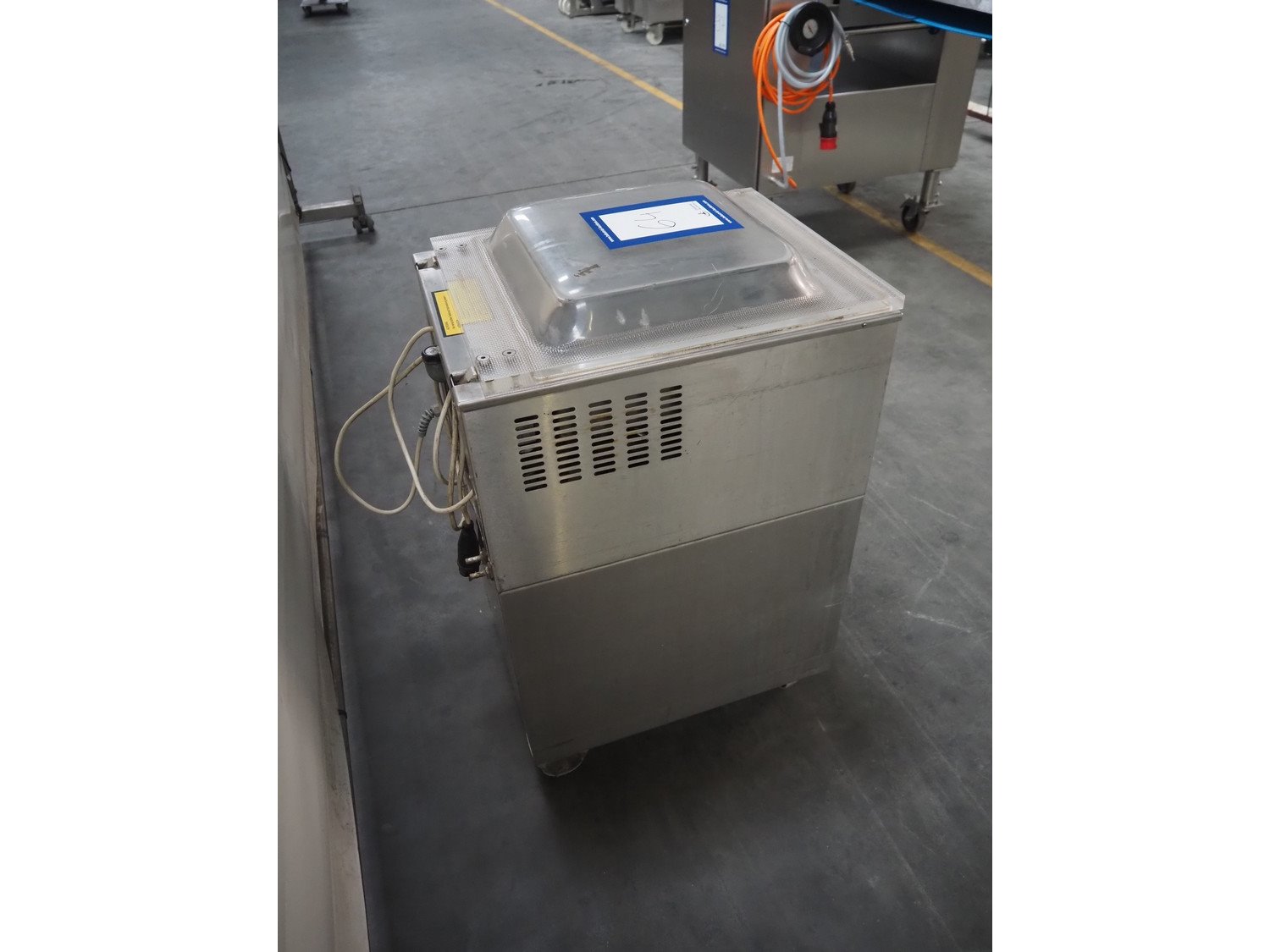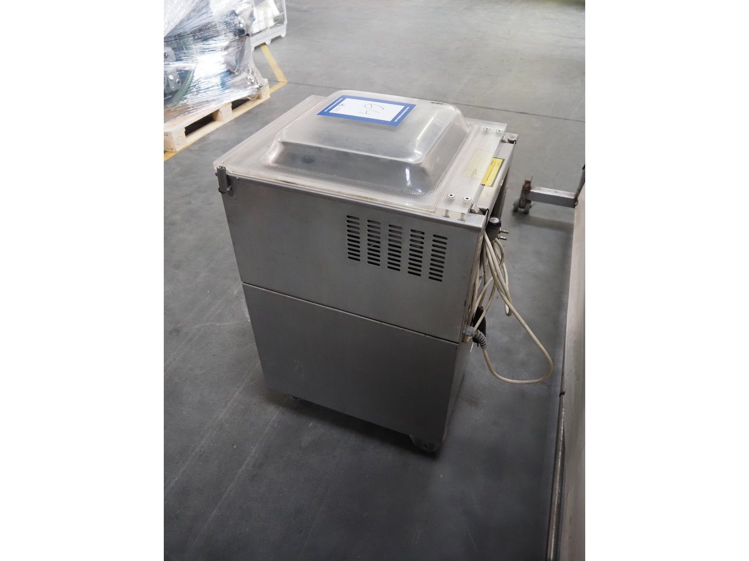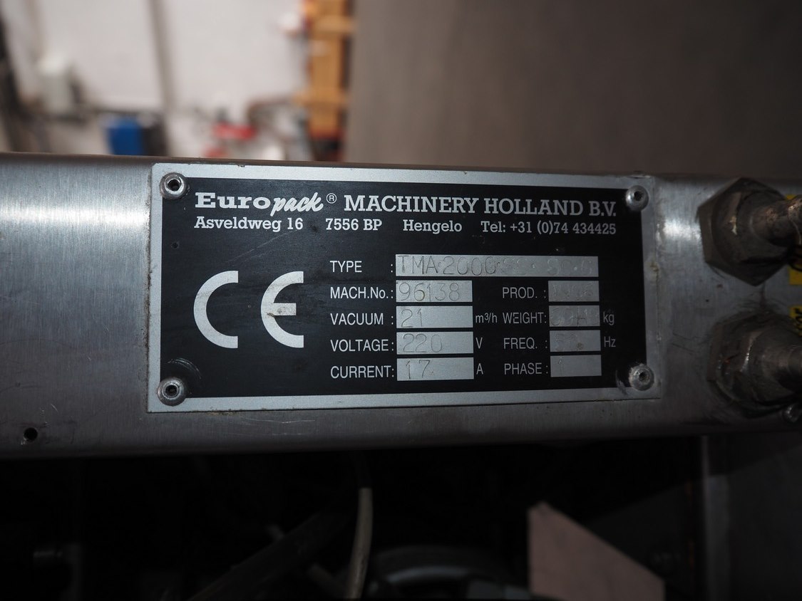 Europack mobile vacuum machine, type: TMA2000.SS.SC.6, machine number: 96138, year of construction: 1998, 220 V, 1 Ph, 50 Hz, 17 A, Busch vacuum pump, seal length: 410 mm, chamber: 455 mm x 425 mm, total dimensions: 480 mm x 600 mm x 980 mm.