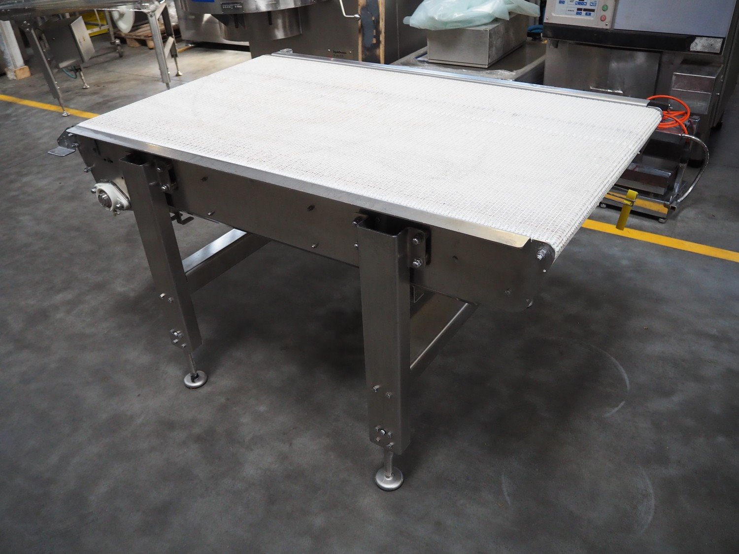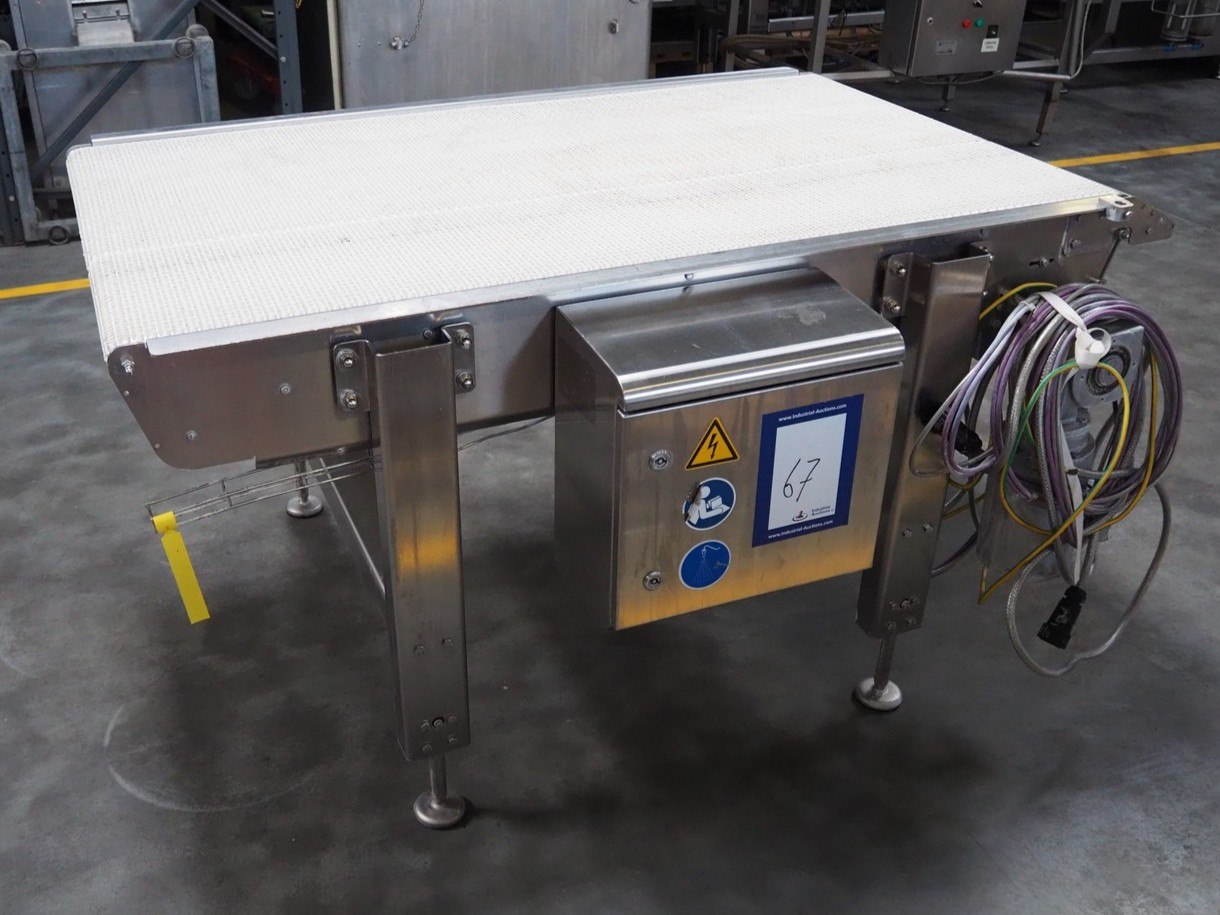 Transport belt, plastic mesh belt, belt width: 850 mm, total dimensions: 1550 mm x 1140 mm x 850 mm.