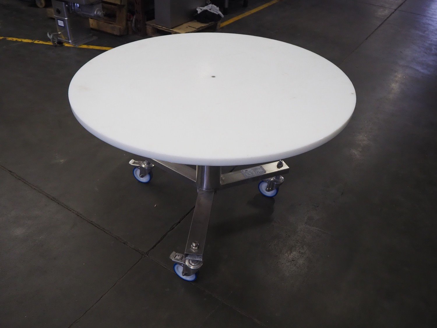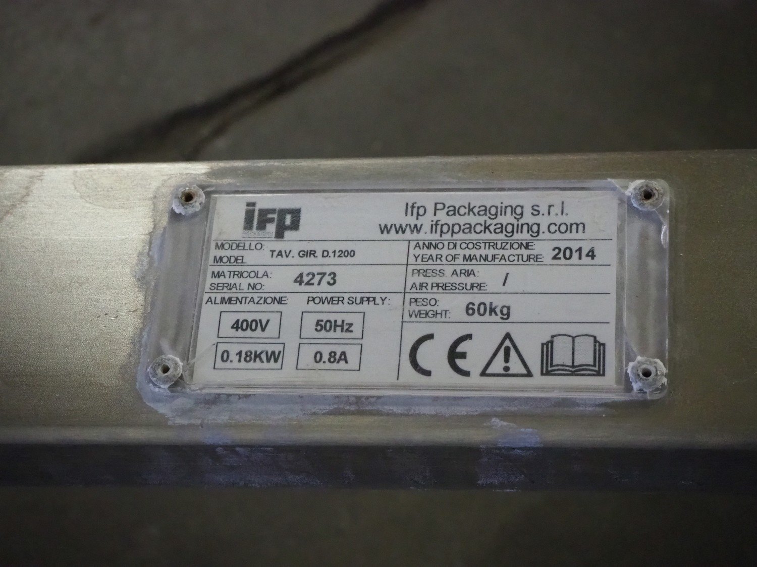 IFP packaging mobile turning table, type: TAV. GIR. D.1200, serial number: 4273, year of construction: 2014, 400 V, 50 Hz, 0.8 A, 0.18 kW, maximum 60 kg, dimensions: Ø 1200 mm x 880 mm.