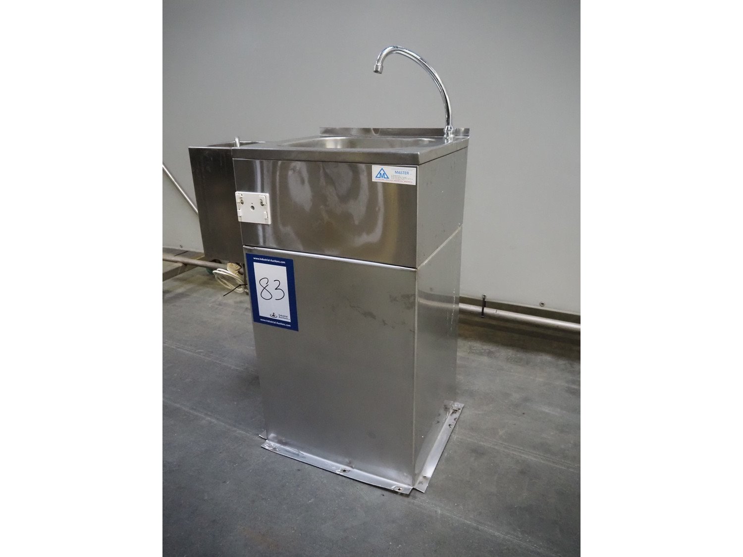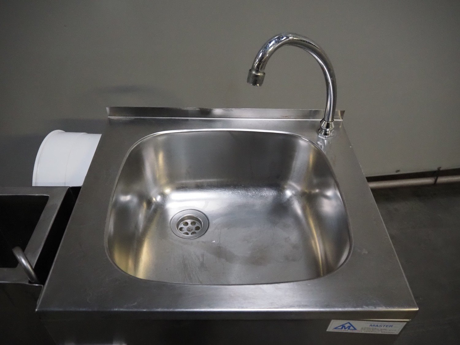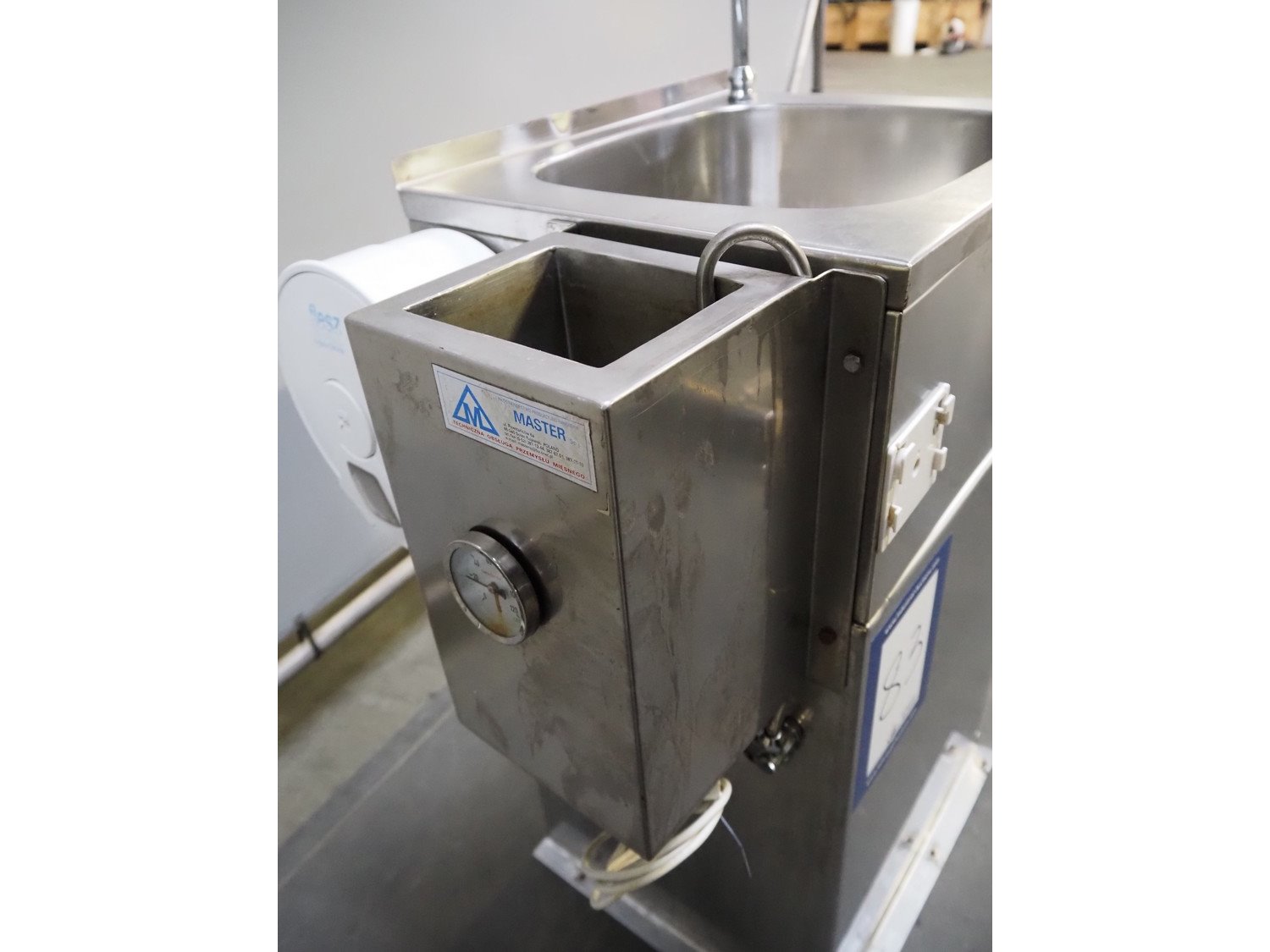 Master Sp. j. s/s sink with knife sterilizer, knee control, dimensions: 650 mm x 420 mm x 1130 mm.