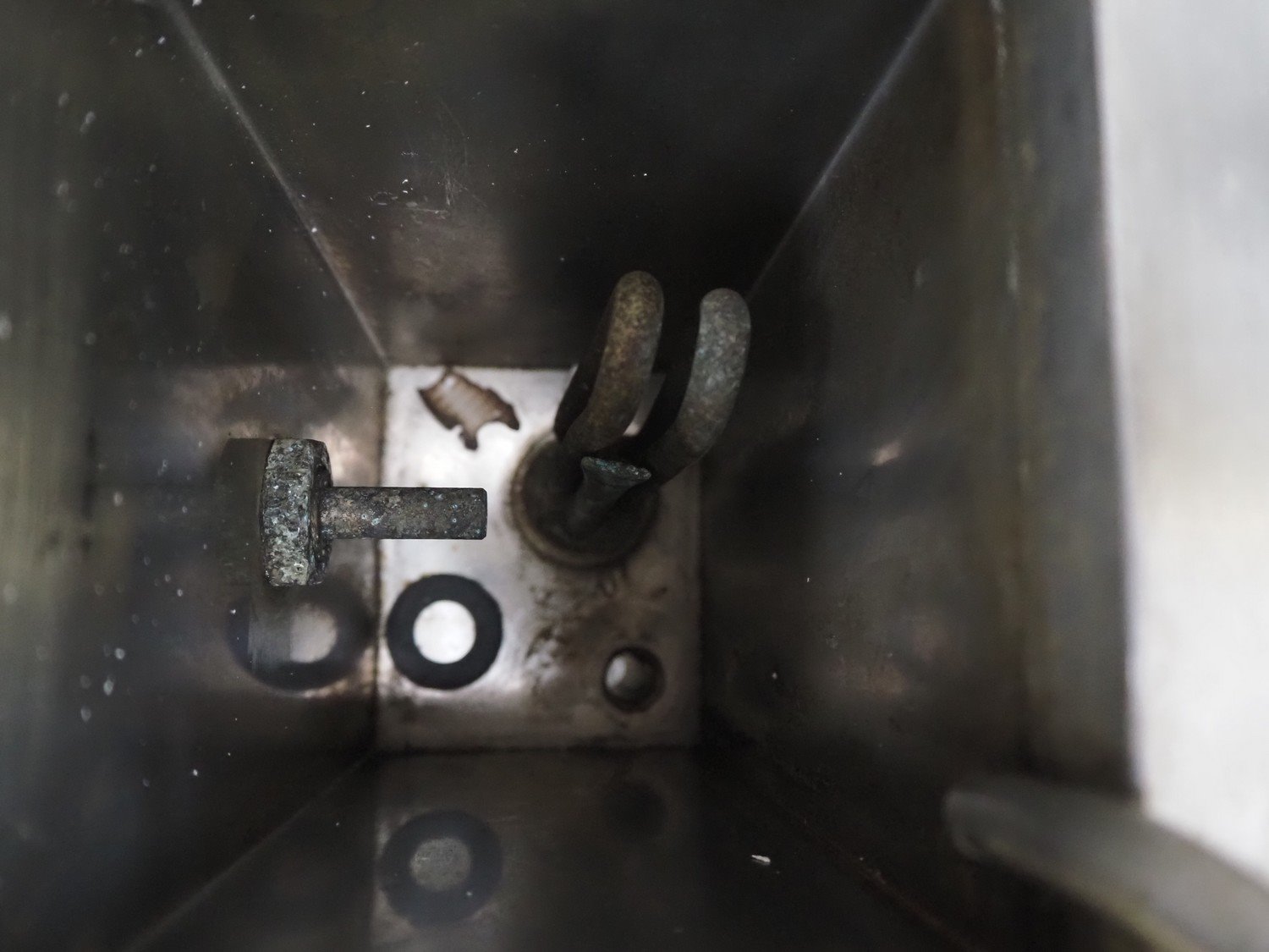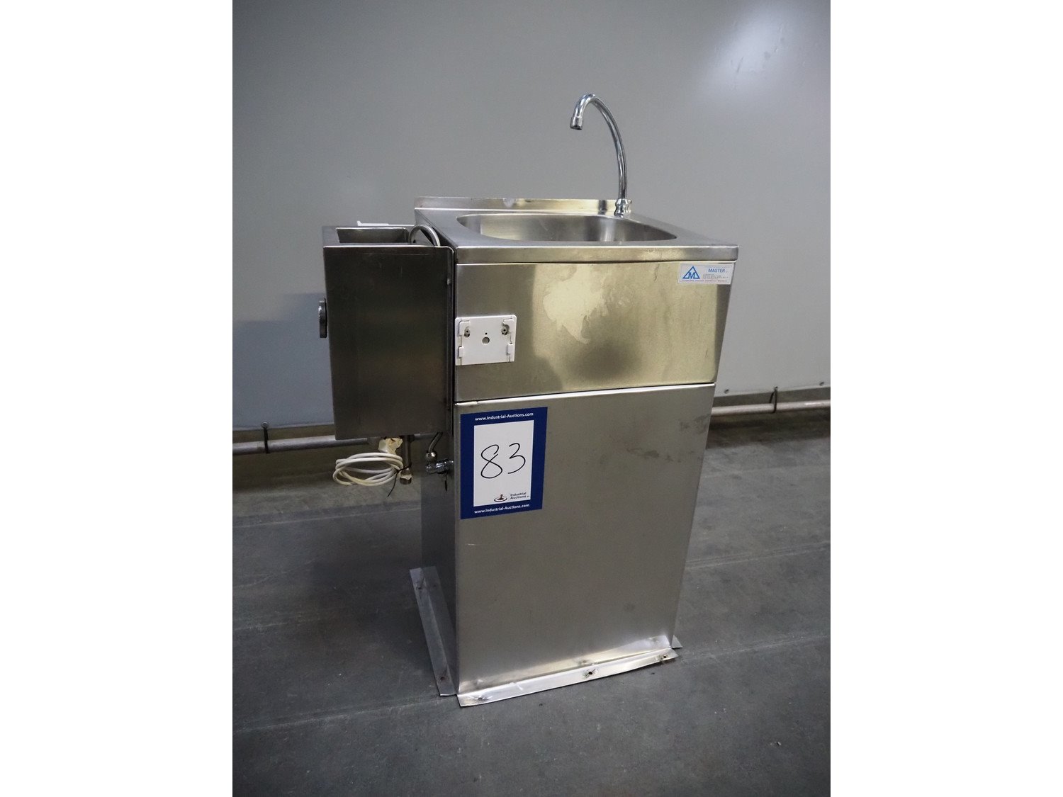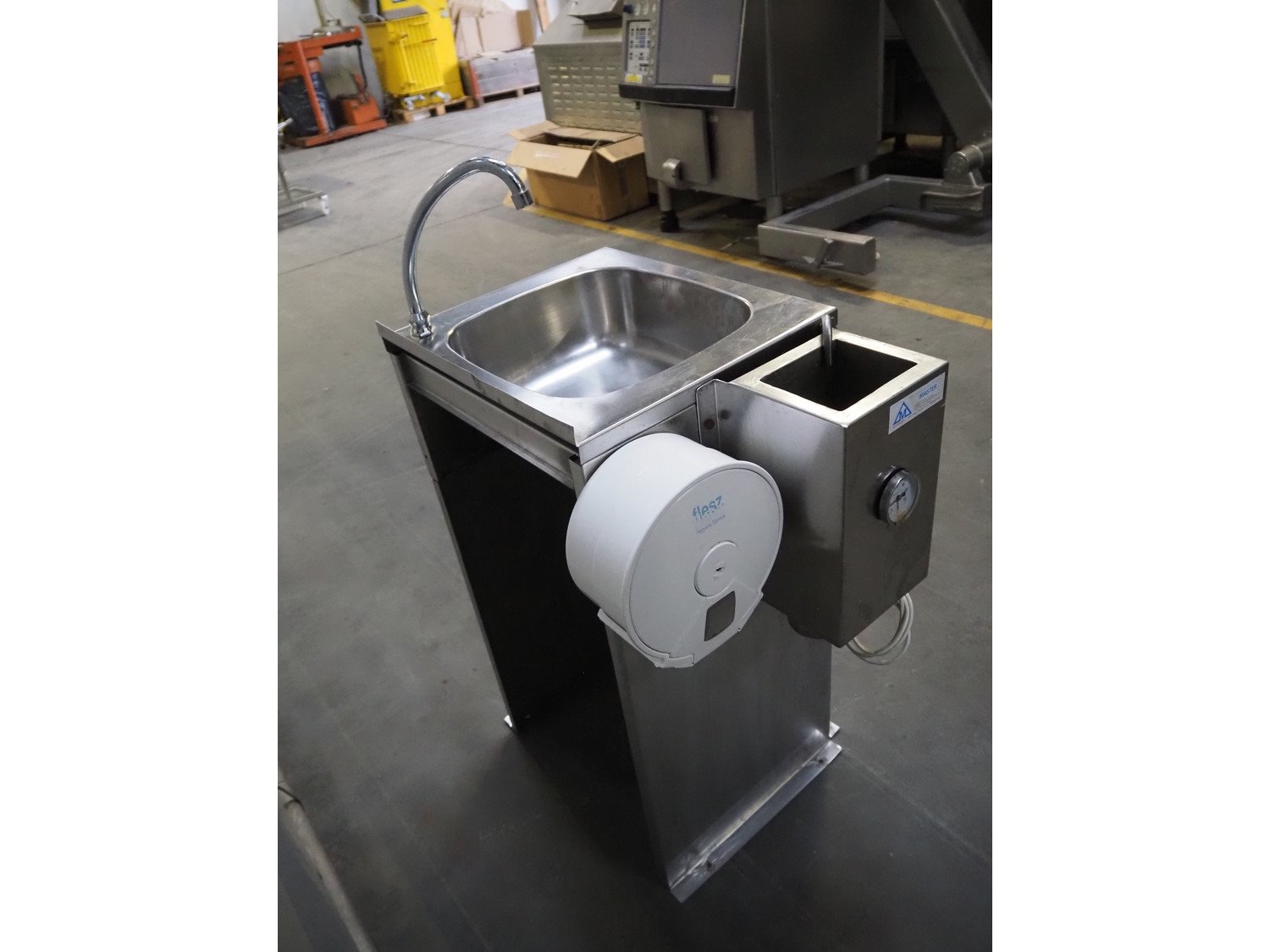 Master Sp. j. s/s sink with knife sterilizer, knee control, dimensions: 650 mm x 420 mm x 1130 mm.